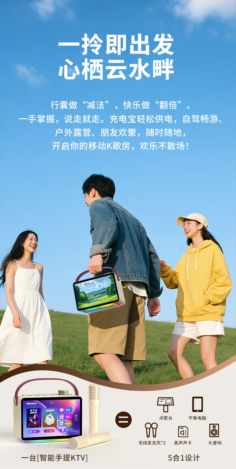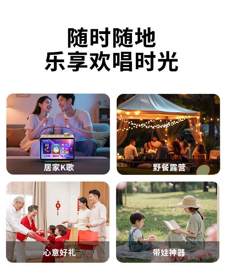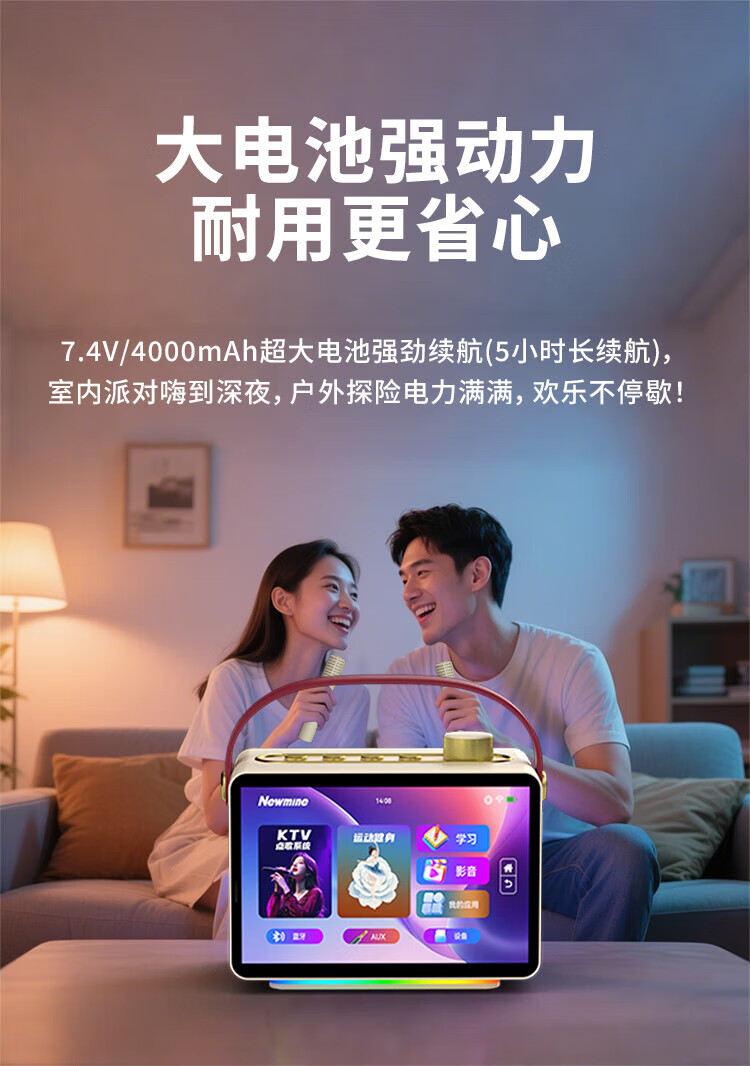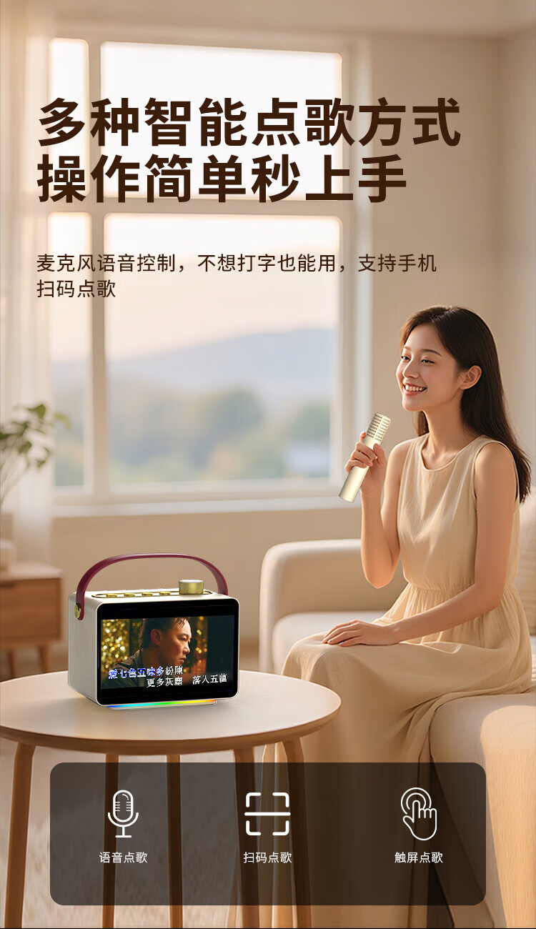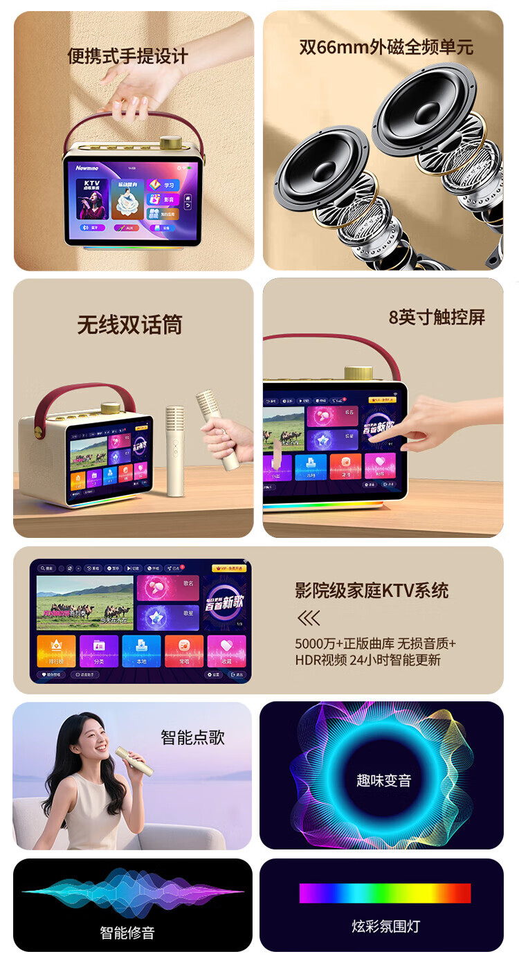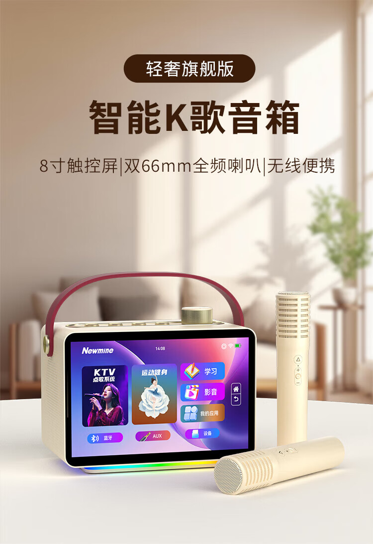 Newman smart karaoke speaker microphone all-in-one for home use portable KTV karaoke machine Bluetooth audio singing children's karaoke smart karaoke machine for gifts 8-inch touch screen丨Genuine karaoke system丨KK19 cool black