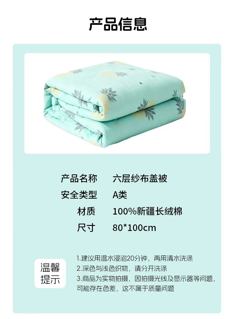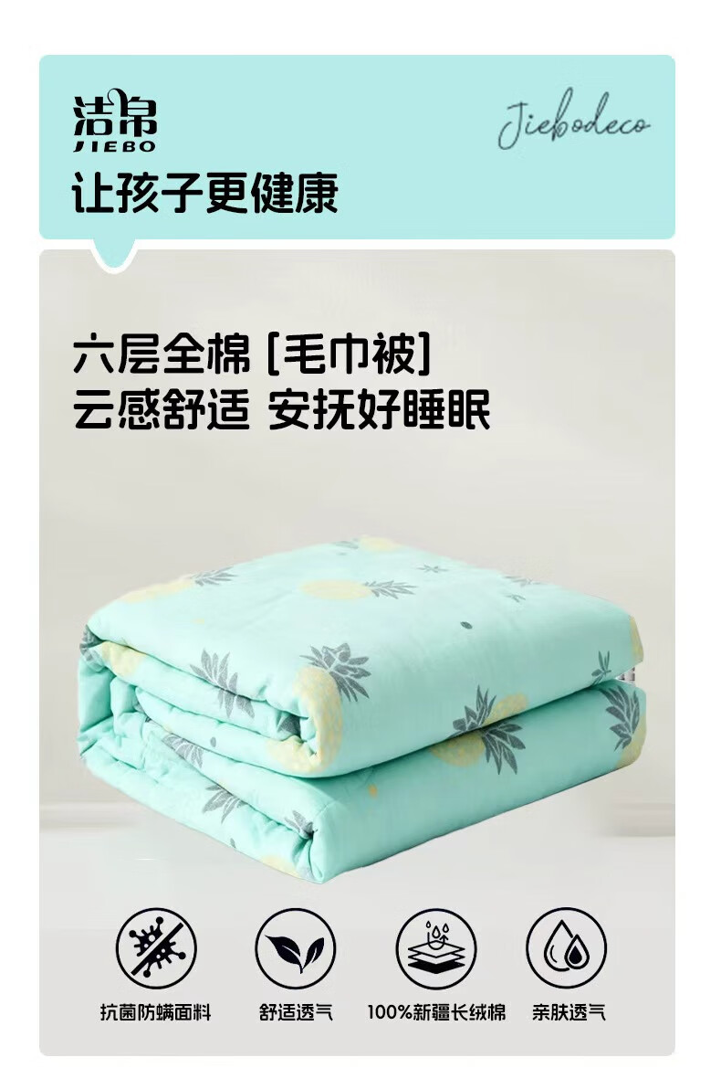 JIEBO maternal and infant grade A category 100% pure Xinjiang cotton six-layer gauze towel quilt gauze blanket baby baby blanket 80*100cm pure cotton six-layer gauze+pink+80*100cm