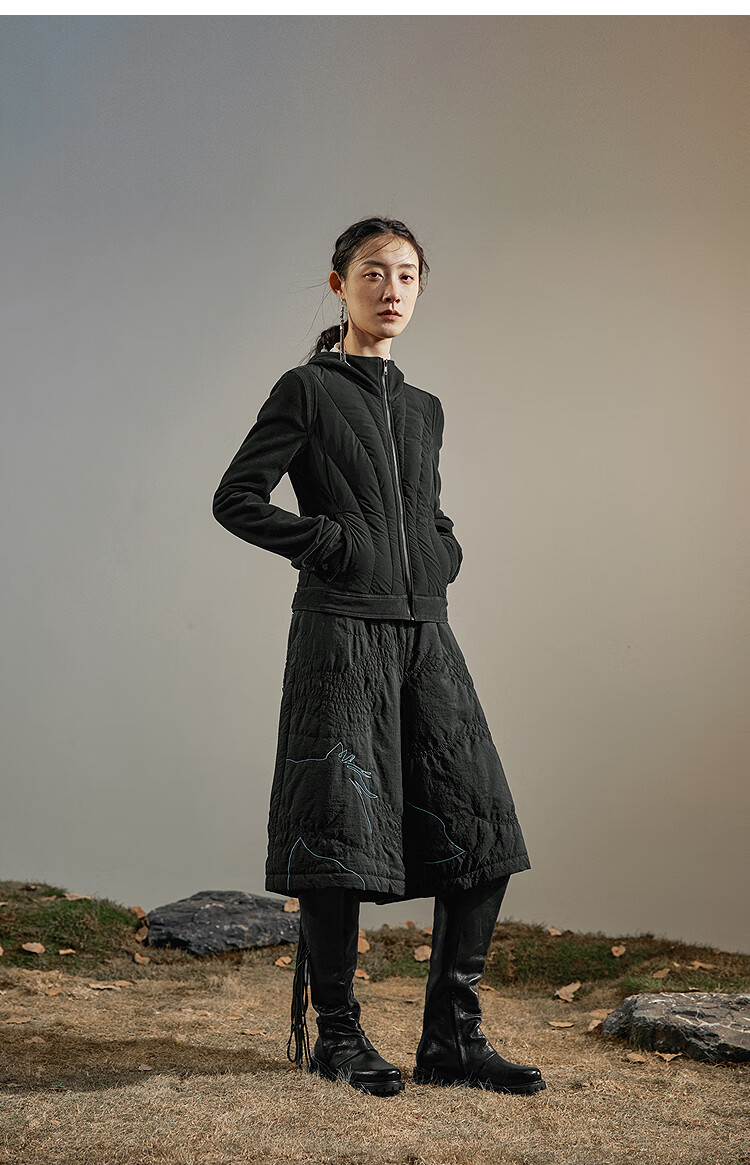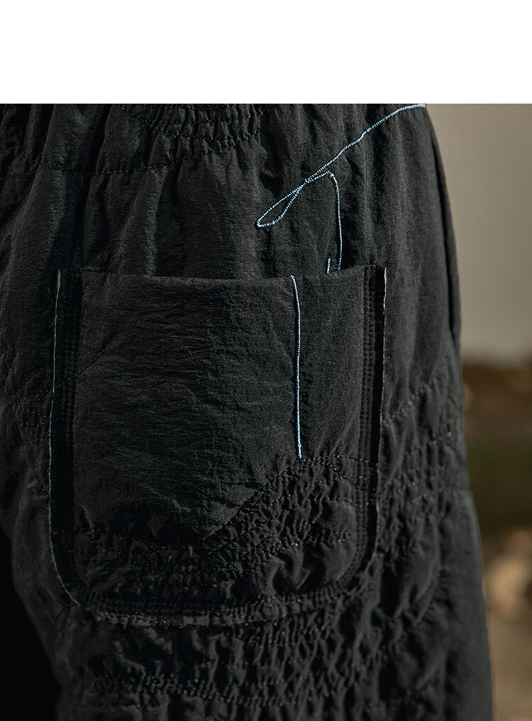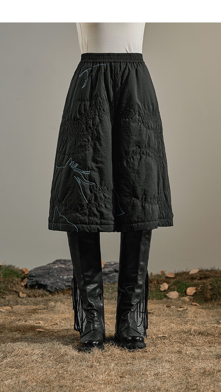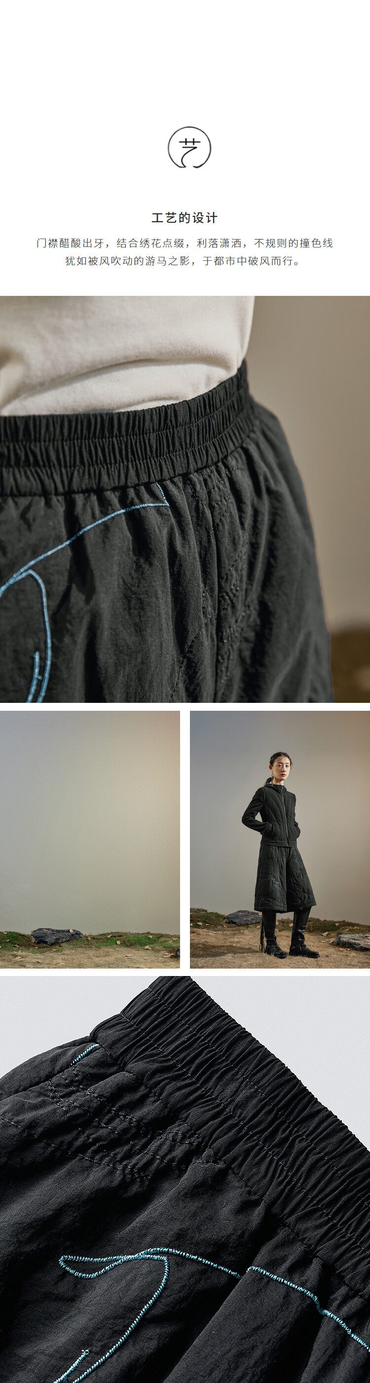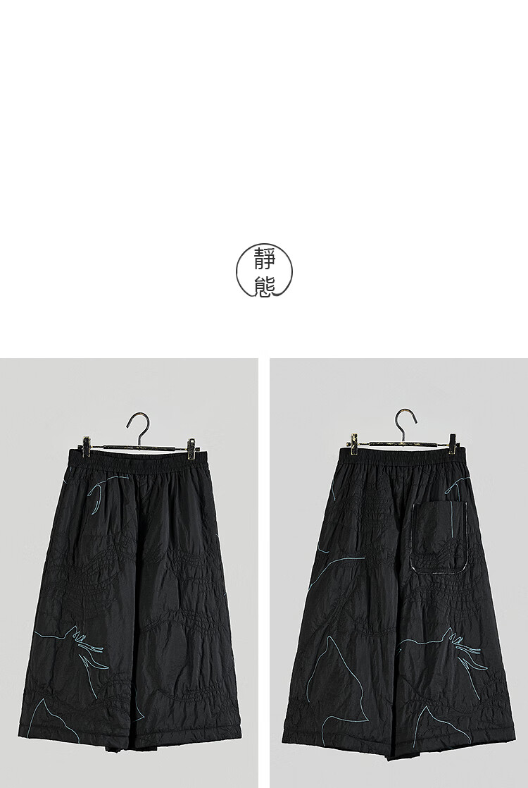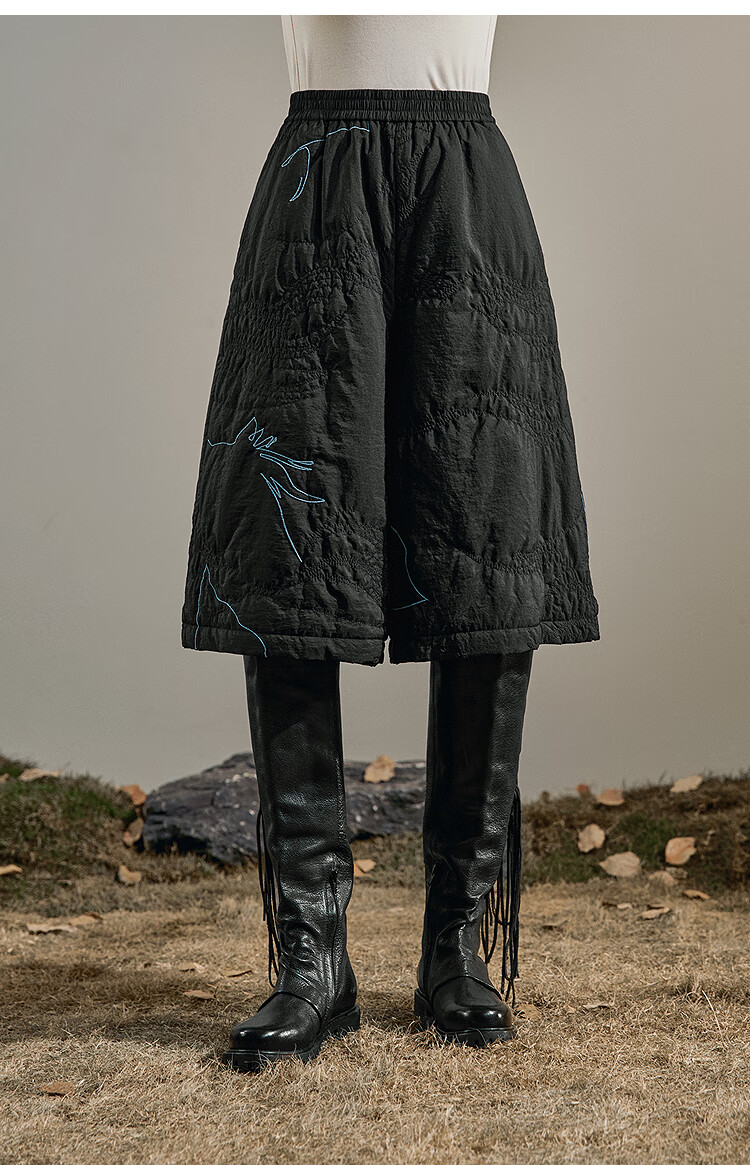 Rishuo Thinsulate cotton five-quarter shorts women's 2025 autumn and winter popular outer wear elastic high-waisted a-line embroidered casual pants Yuma black L