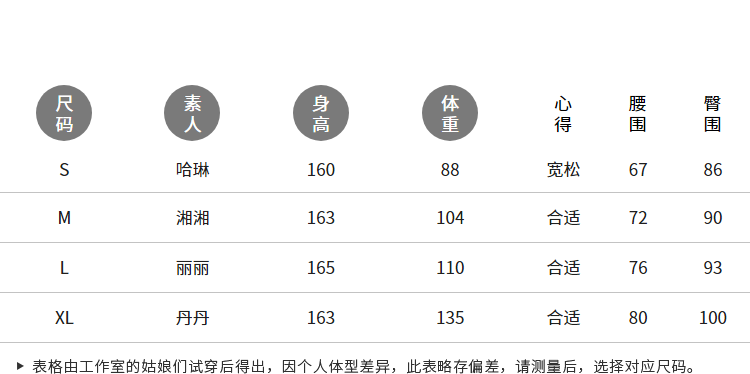 China (cm) 160-165/84-86 165-170 / 88-90 167-172 / 92-96 168-173 / 98-102 170-176 / 106-110