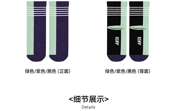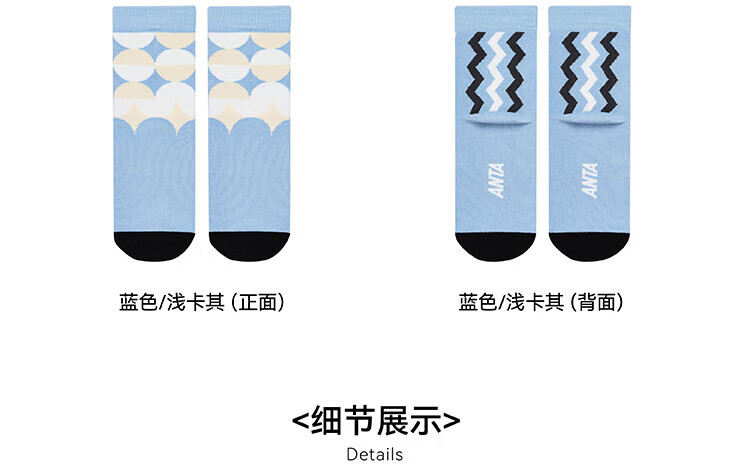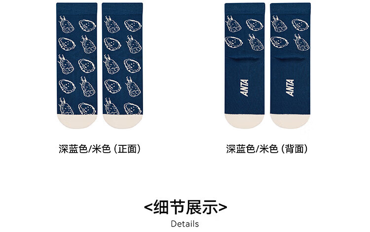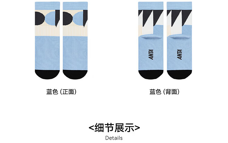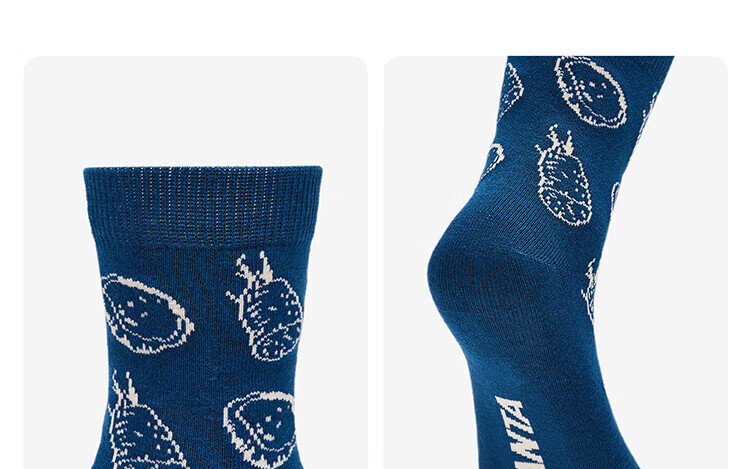 ANTA regular boys and girls 2025 winter trendy printed running socks medium socks antibacterial socks 392548336 Blue-2 10-12 years old (L)
