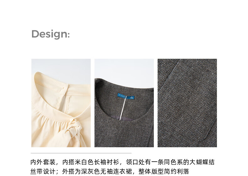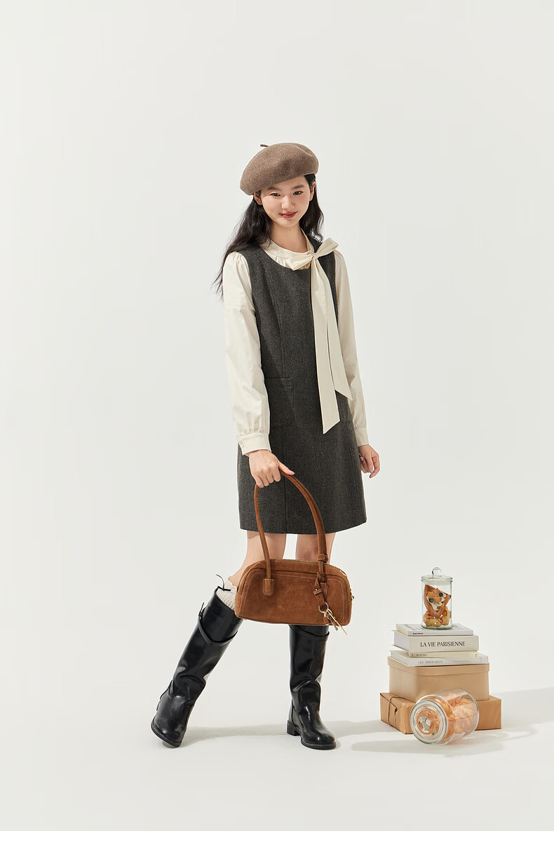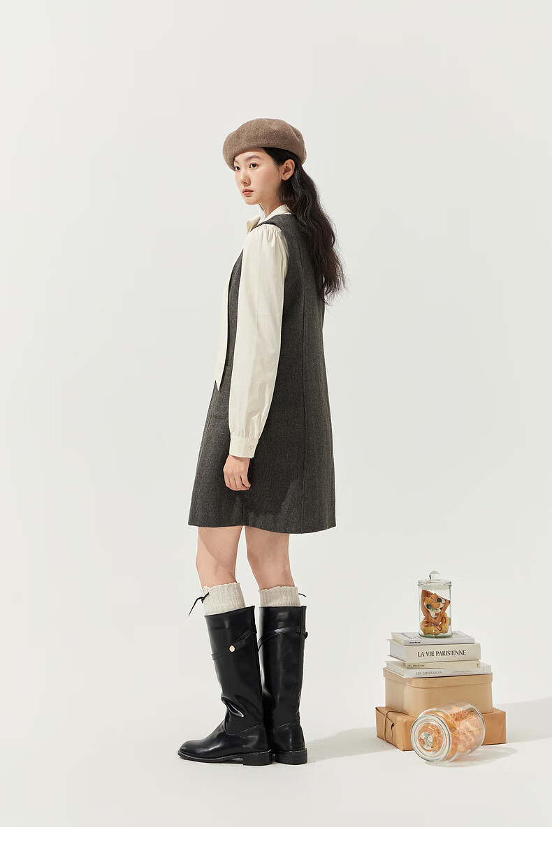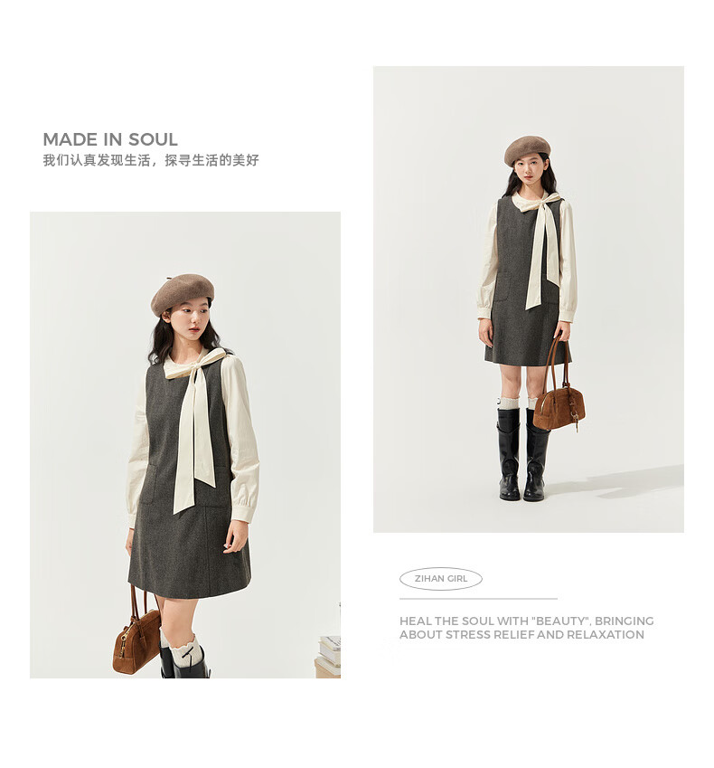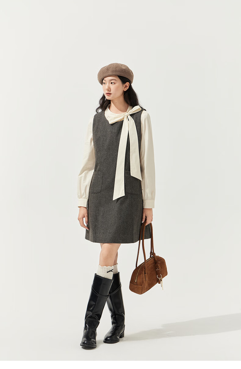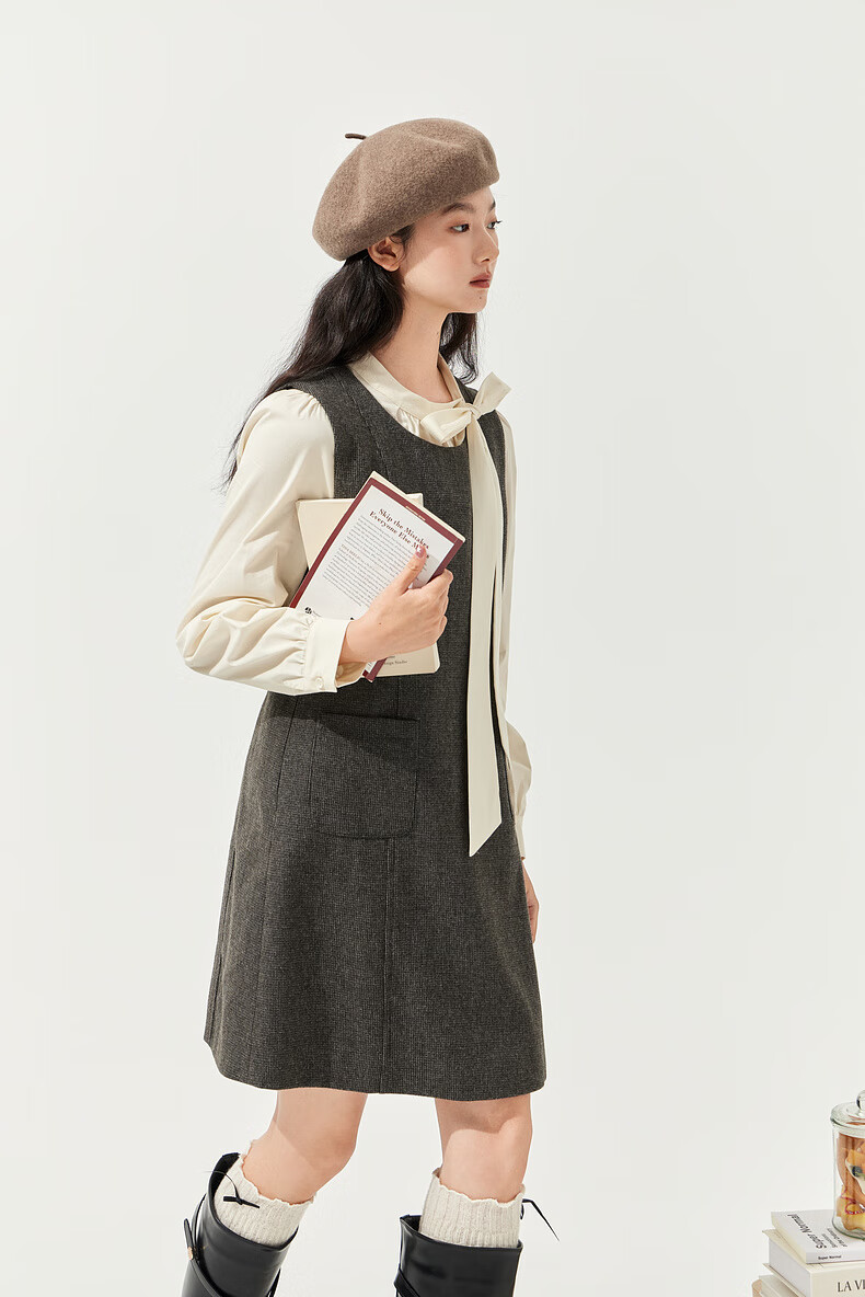 Zihan (ZIHAN) Zihan round neck long-sleeved shirt vest dress inside and outside two-piece suit skirt for women 2025 winter new style gray plaid XS