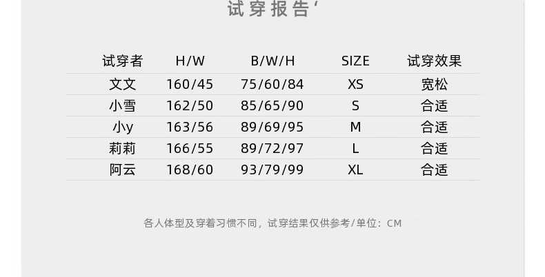 China (cm) 160-165/84-86 165-170 / 88-90 167-172 / 92-96 168-173 / 98-102 170-176 / 106-110