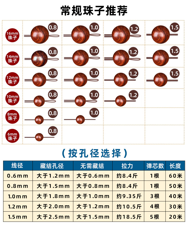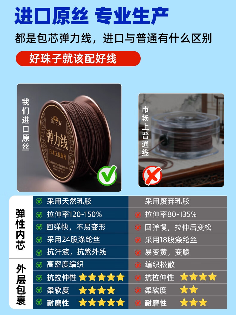 Luolanmei (LUOLANMEI) bracelet wire core-covered elastic rope imported high-end cultural toy bead wire rope bracelet wear-resistant special beef tendon for Buddhist beads 0.8mm-brown-50 meters /free bead threading tool