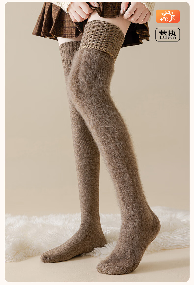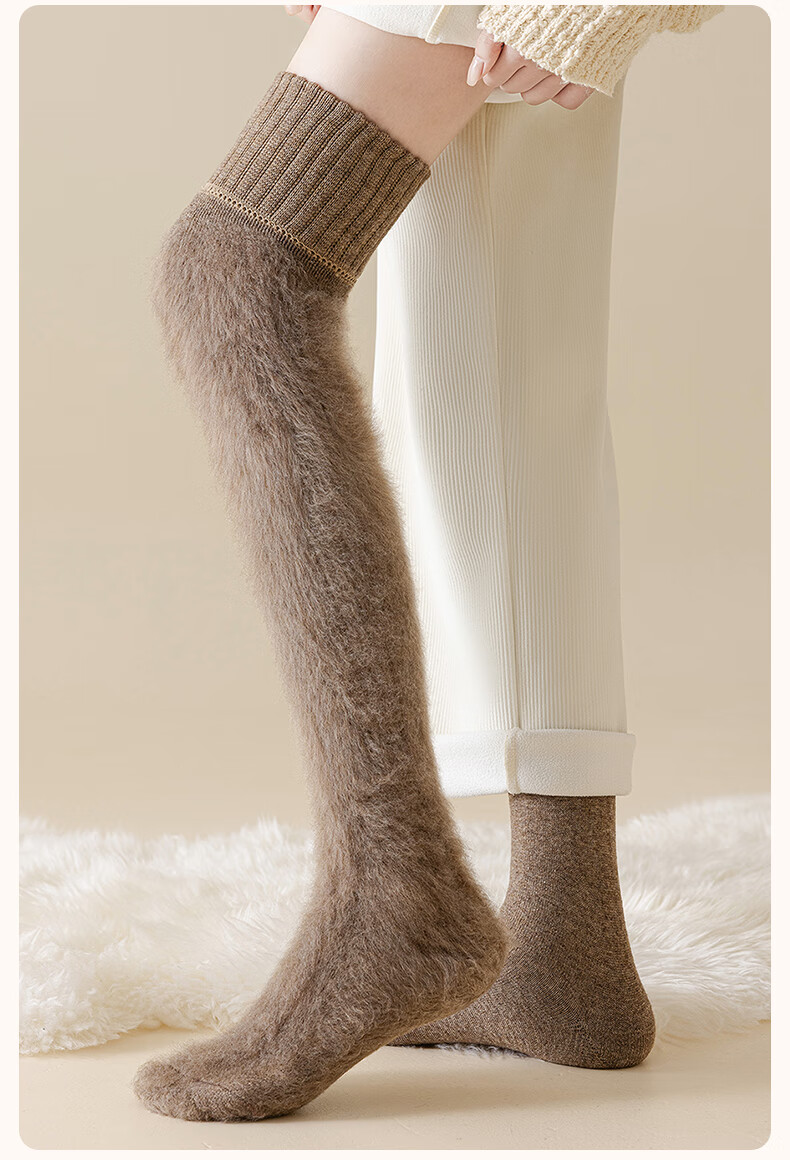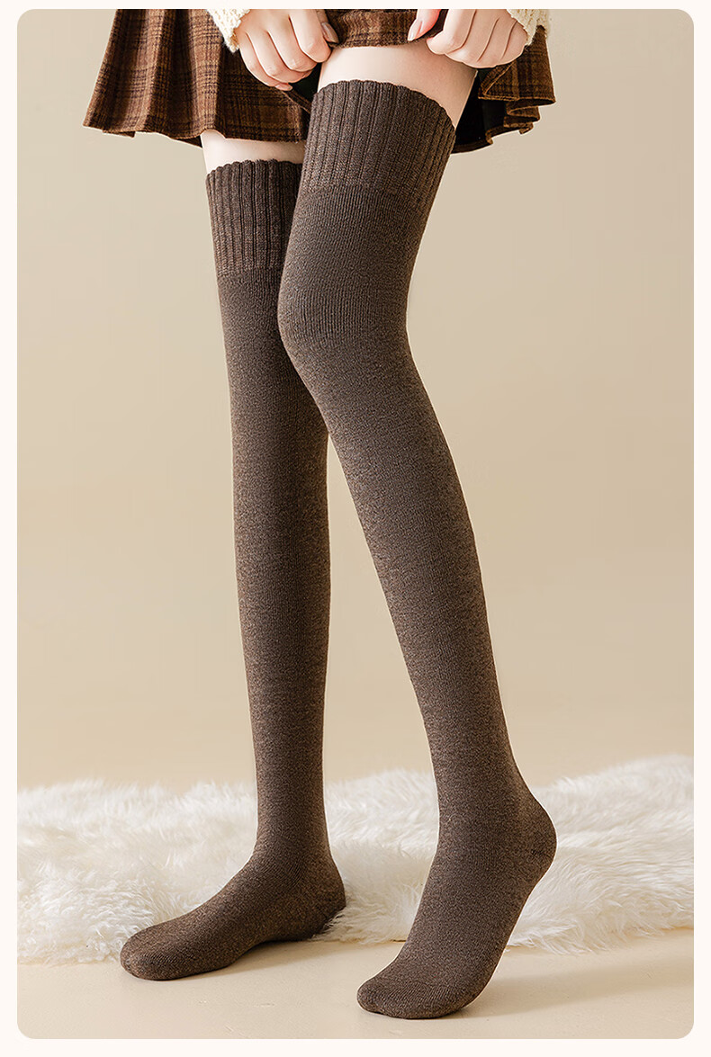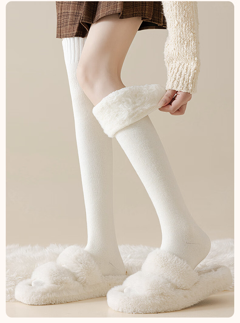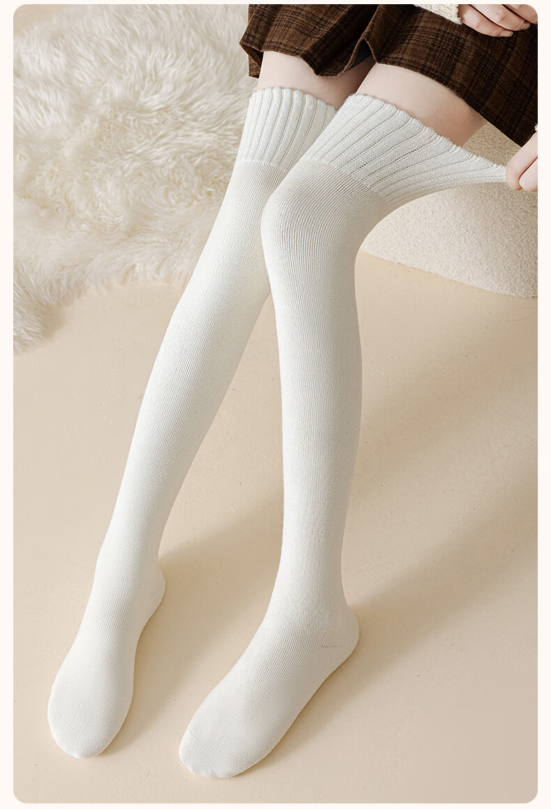 Catman Thick Warm Over-the-Knee Socks for Women in Autumn and Winter with Velvet and Thickened Knee Socks Covers Stockings Winter Thigh Socks Extended - 1 Pair White / About 70cm after Stretching One Size Thick Velvet Warm Over-the-Knee Socks