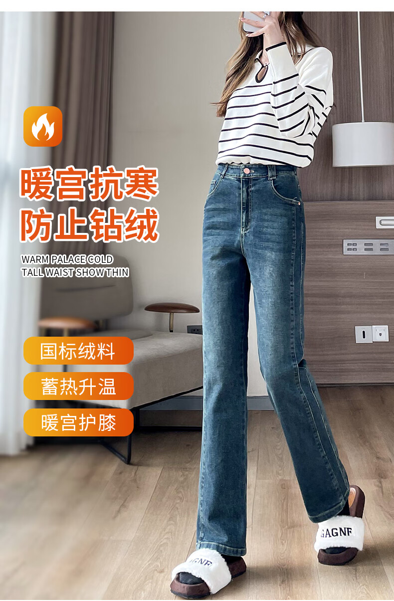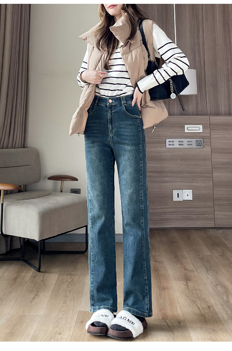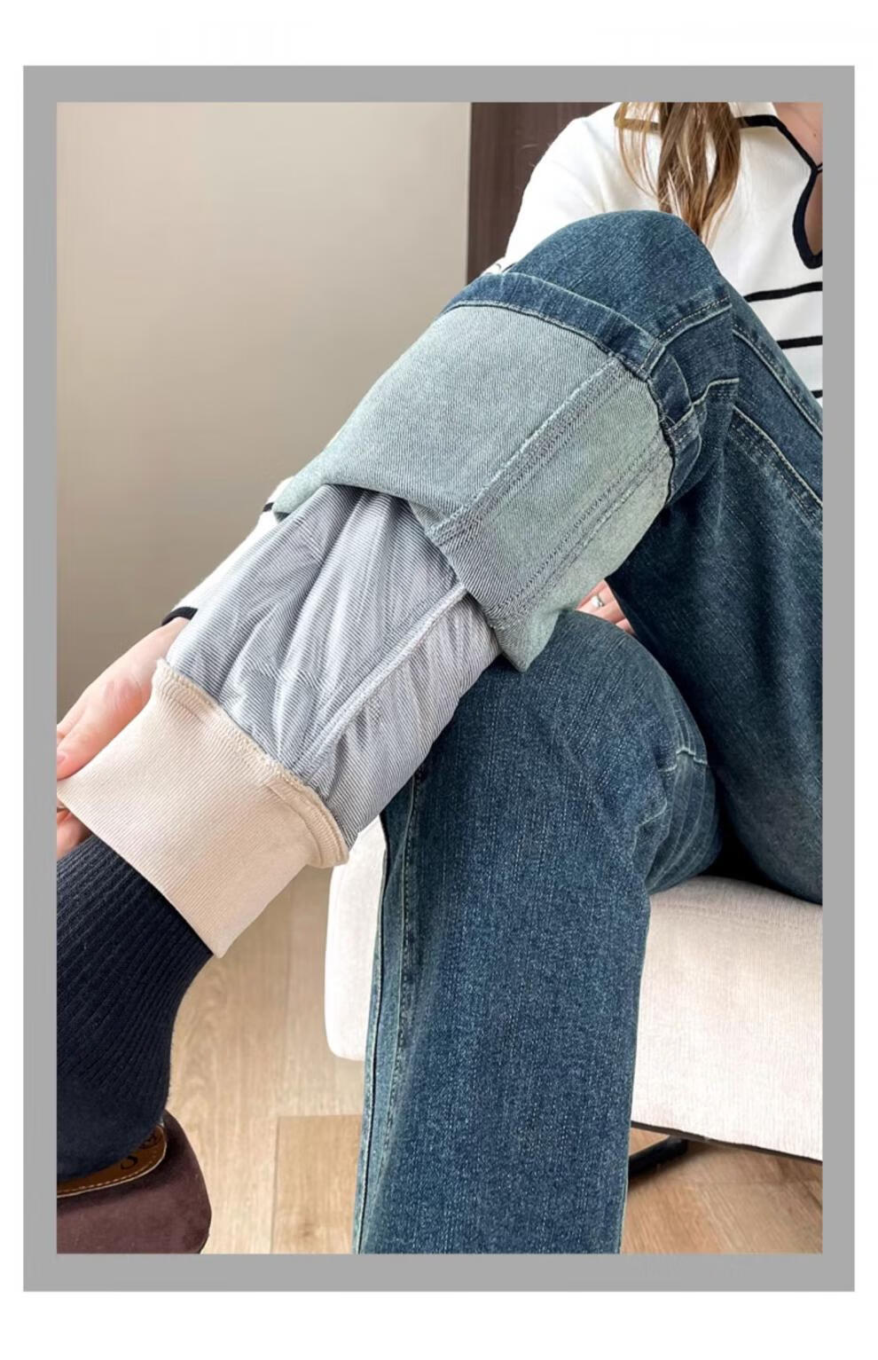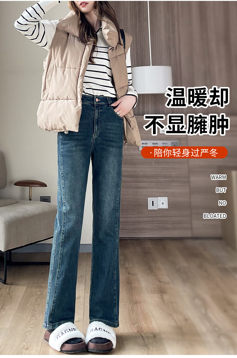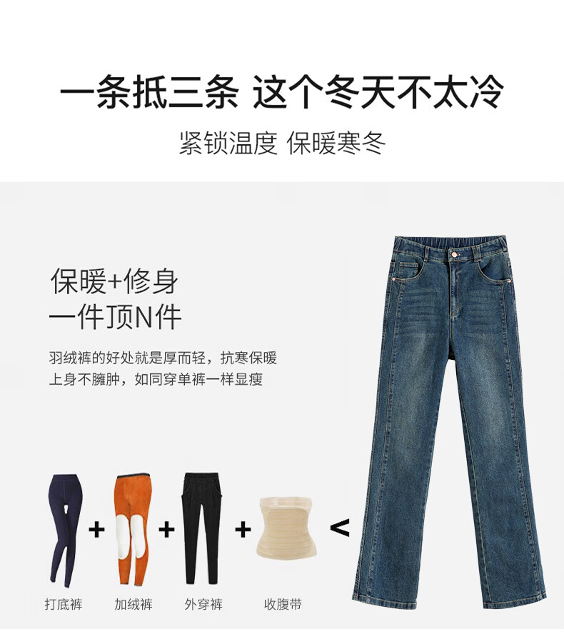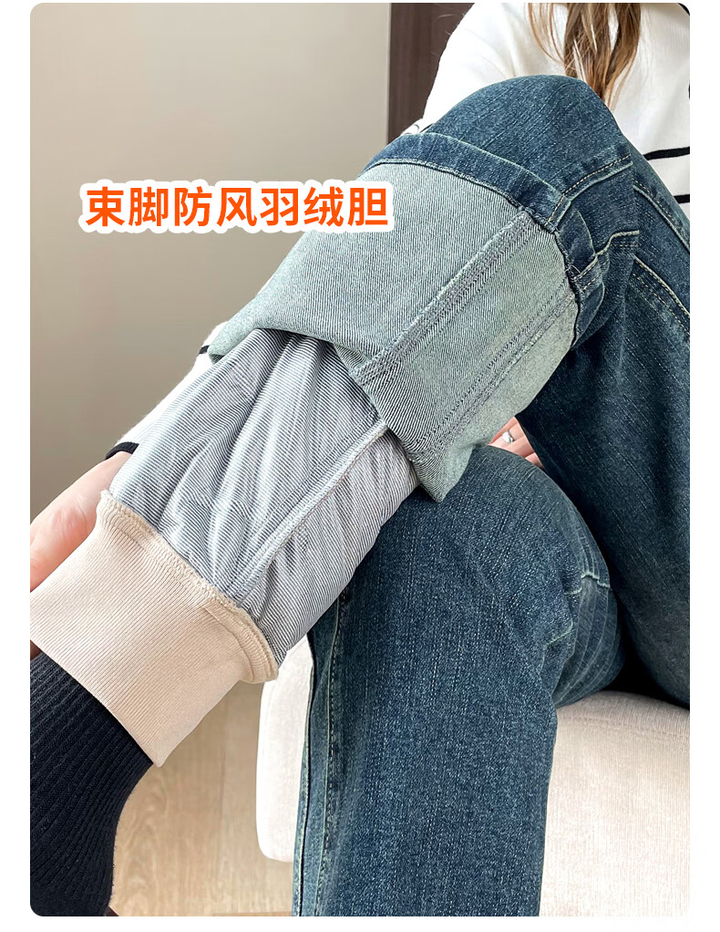 TKSY narrow straight-leg denim down pants for women's outer wear in winter 2026 new thickened and warm Northeast cold-proof wide-leg cotton pants blue 29