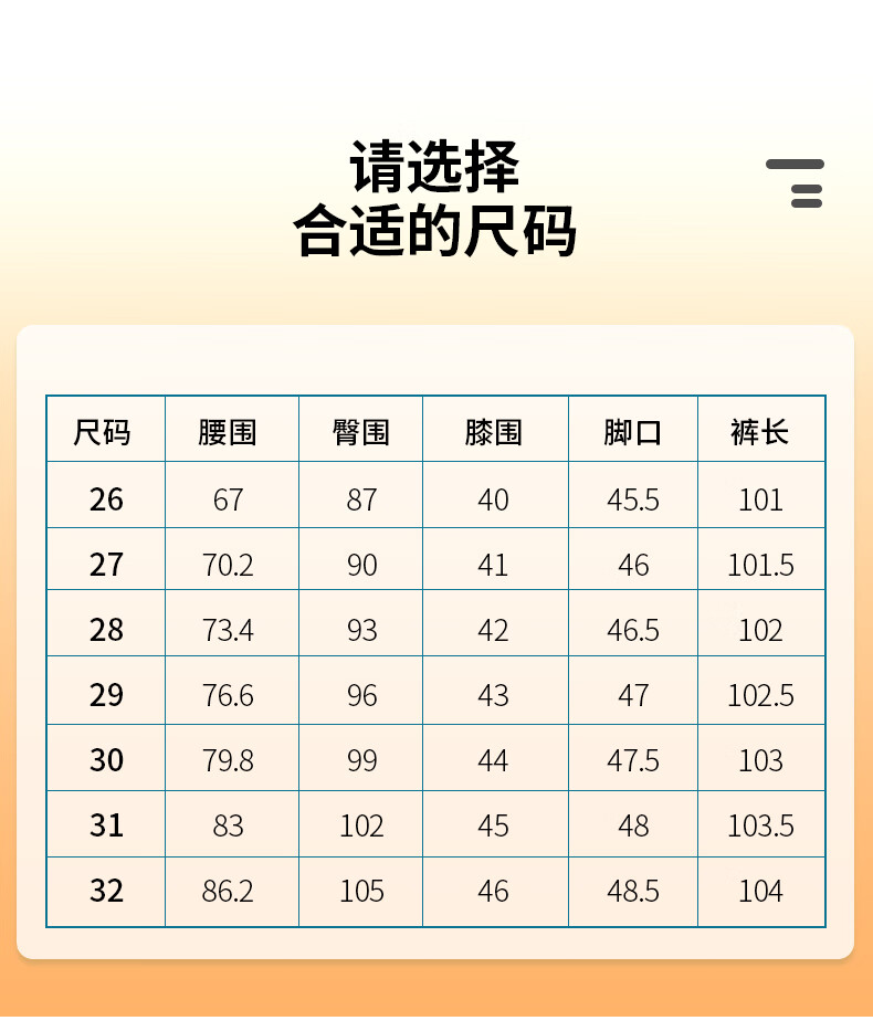 Outseam (cm) 99 cm 101.5 cm 104 cm 106.5 cm 109 cm