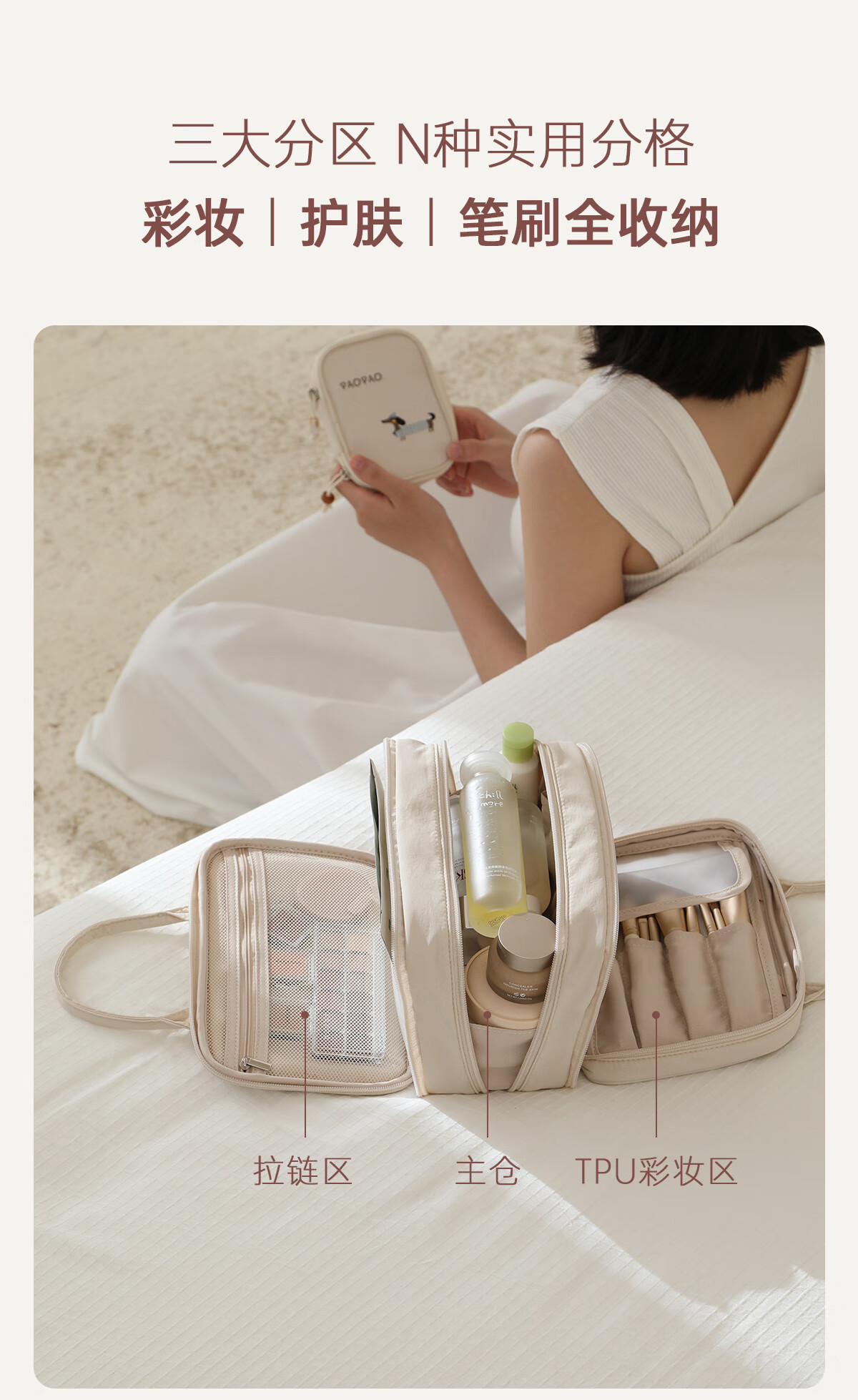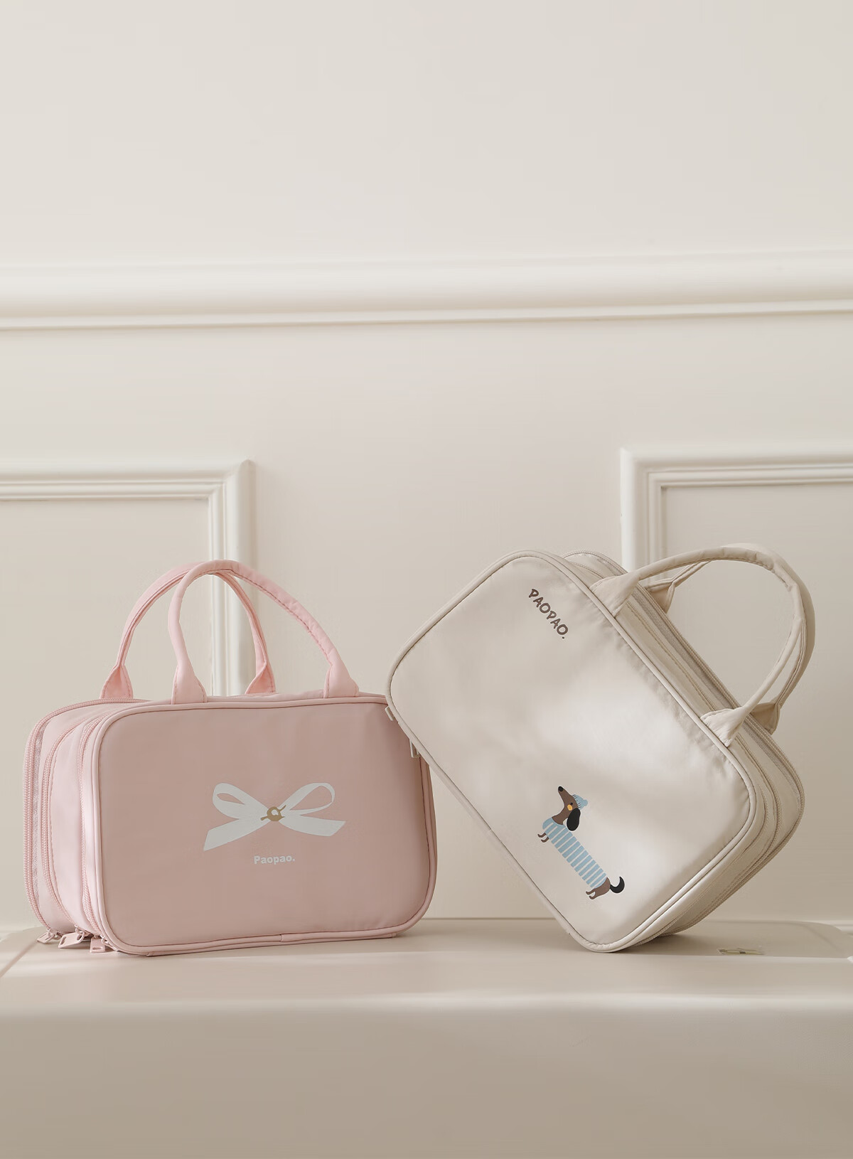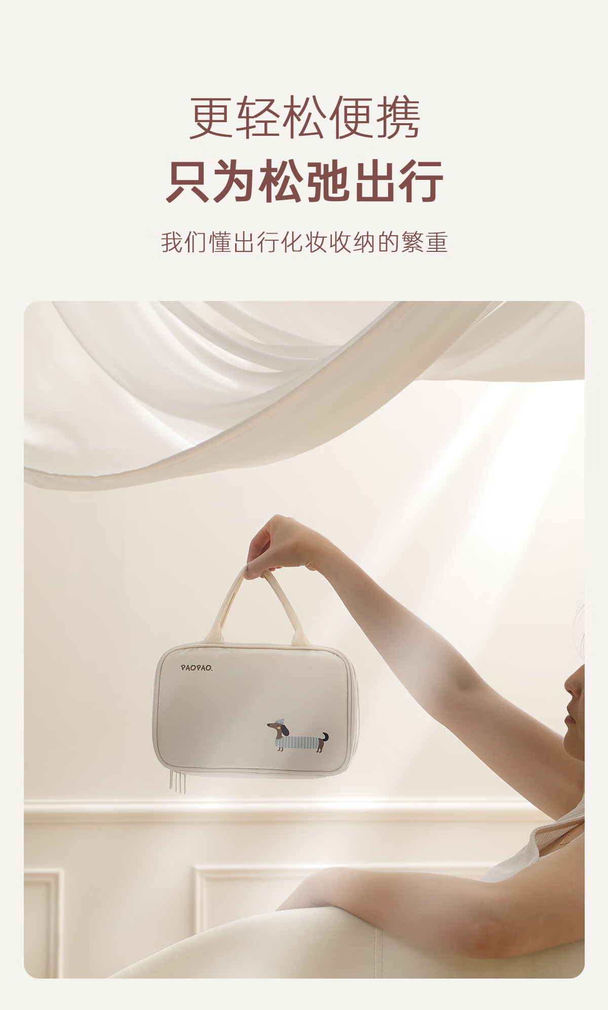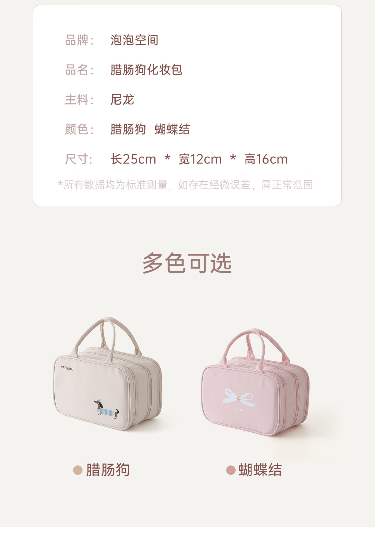 Bubble Space Cosmetic Bag Large Capacity Women's Portable 2025 New Travel Toiletries Bag Partitioned Storage Extra Large Lightweight Dachshund-Apricot