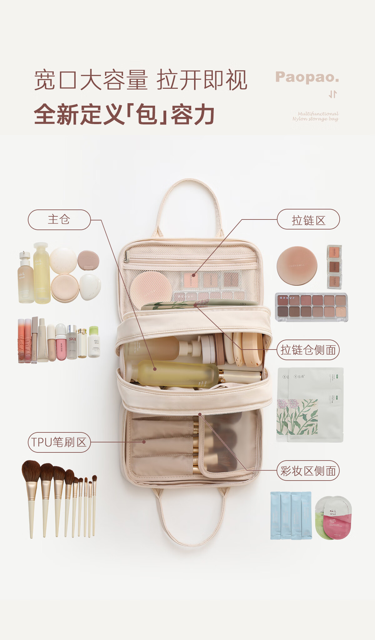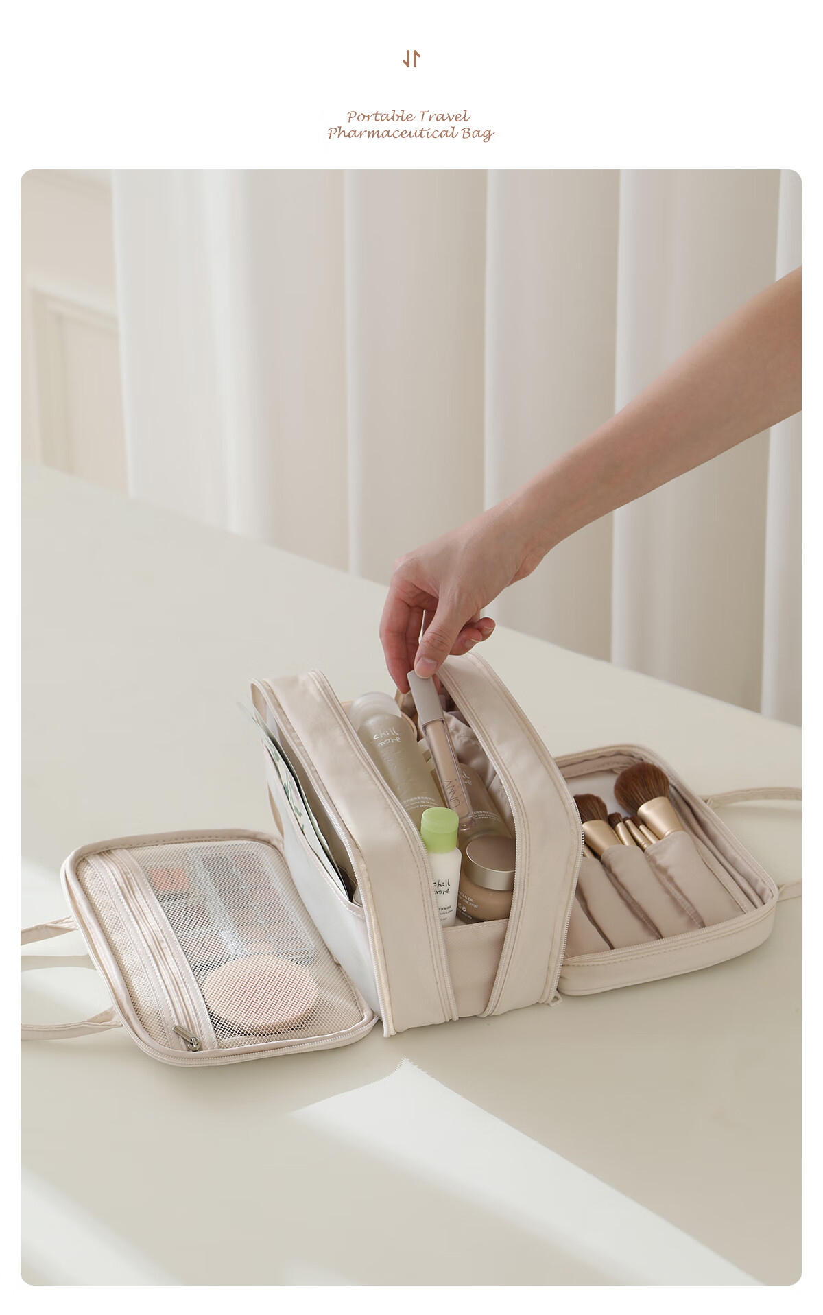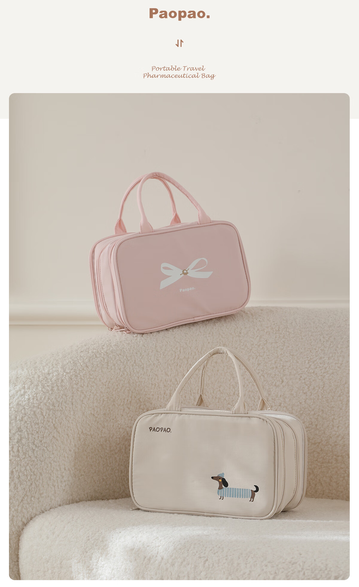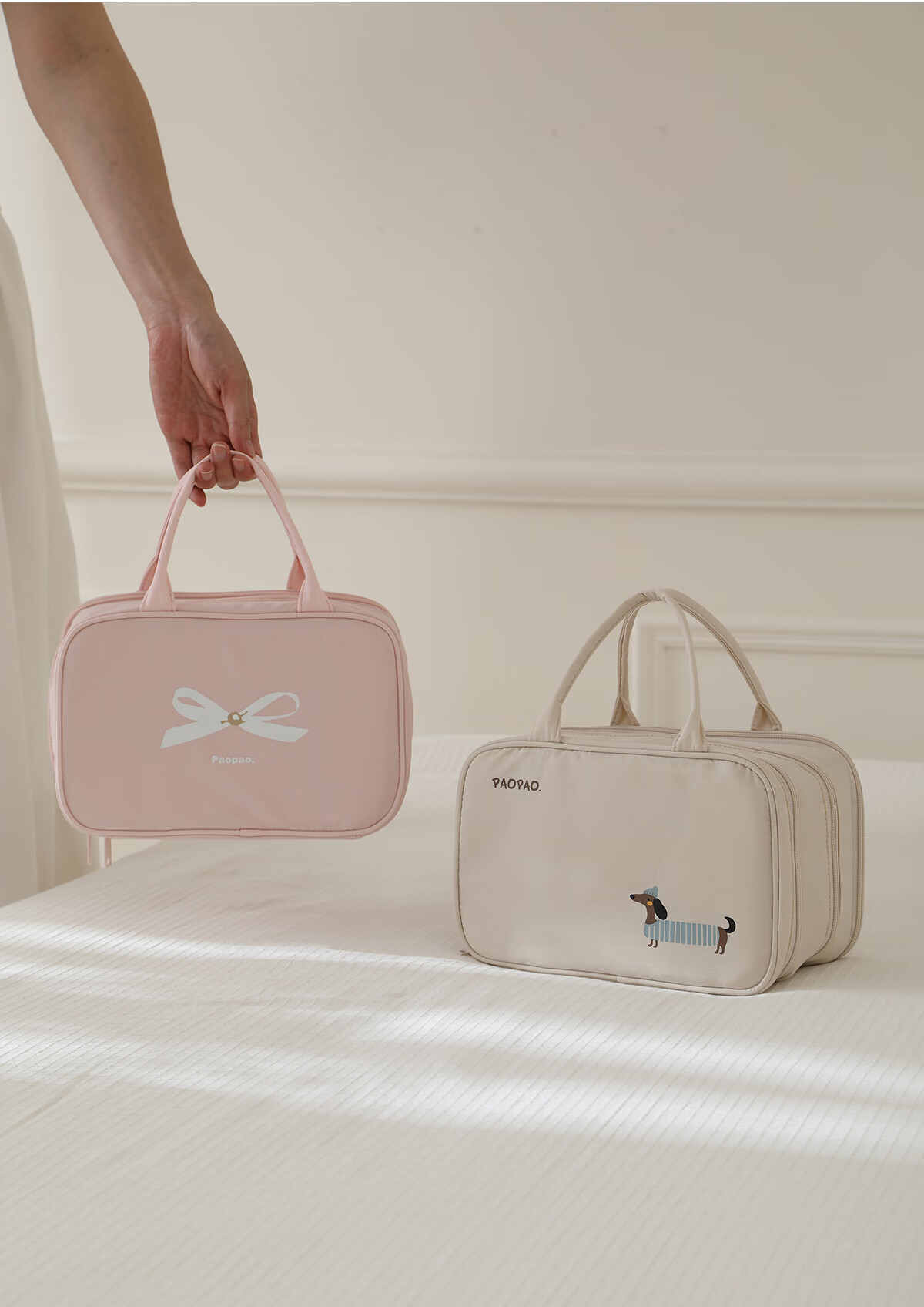 Bubble Space Cosmetic Bag Large Capacity Women's Portable 2025 New Travel Toiletries Bag Partitioned Storage Extra Large Lightweight Dachshund-Apricot