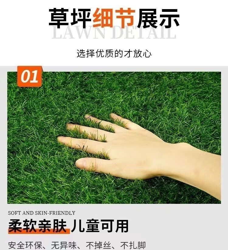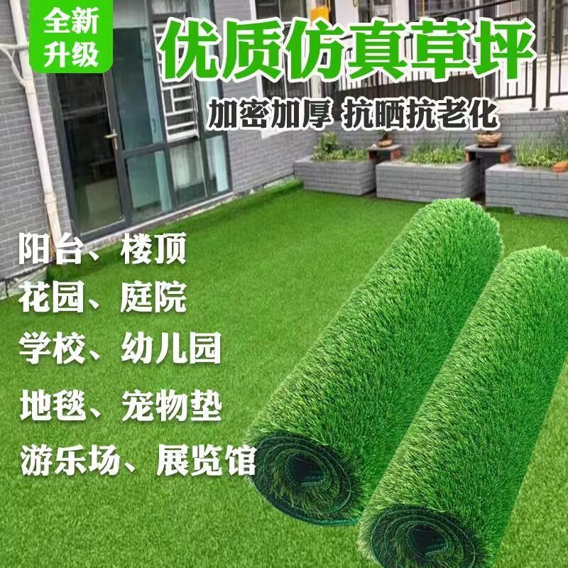 Simulated lawn encrypted and thickened artificial outdoor artificial plastic lawn kindergarten park step-resistant decorative turf green bottom 20mm thick spring grass 2*25 meters 50 square meters full roll