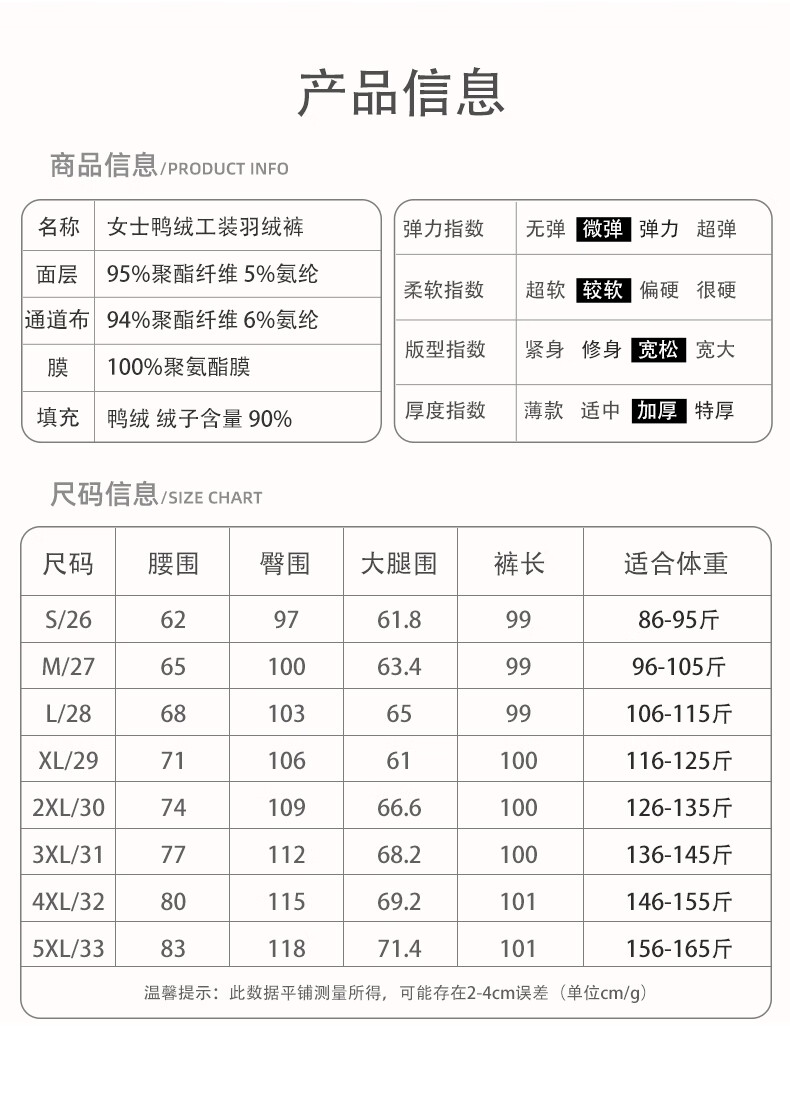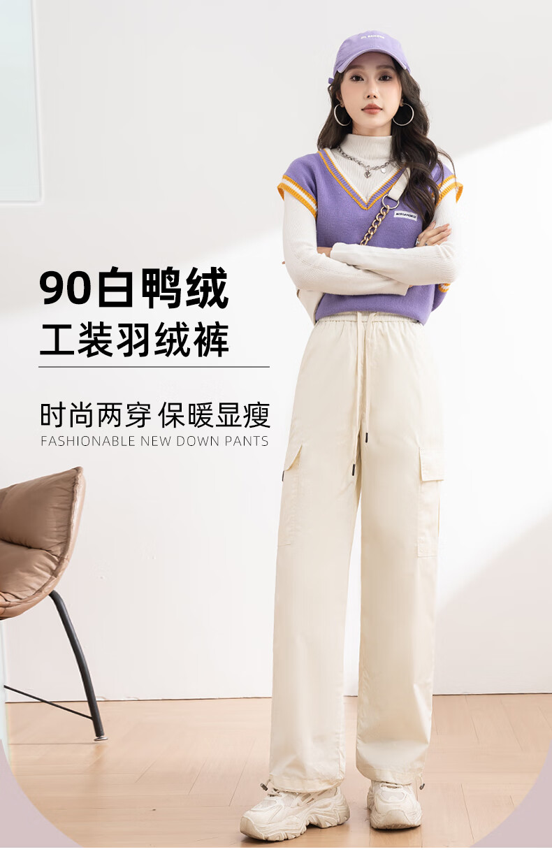 TKSY off-white down pants women's outer wear new winter workwear straight Northeastern cotton pants white duck down lining cold-proof pants beige XL /29 size (suitable for 116-125 Jin Jin equals 0.5 kg)
