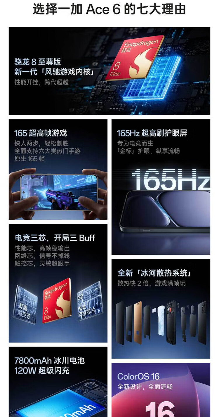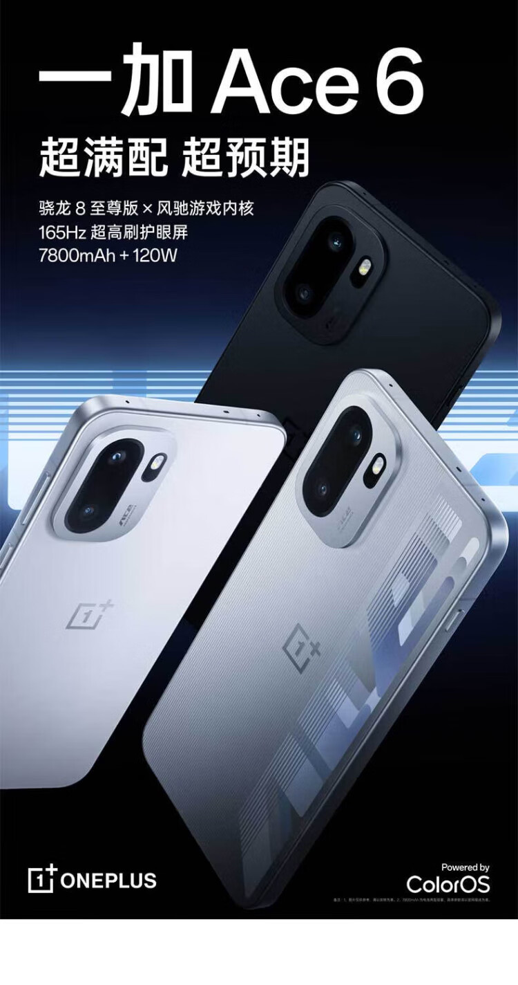 OnePlus Ace6 mobile phone, new ace6 gaming e-sports flagship, Snapdragon 8 Extreme Edition, 165Hz ultra-high refresh eye protection screen, Quicksilver 12+256GB official standard configuration