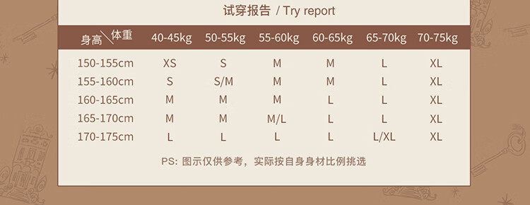 China (cm) 160-165/84-86 165-170 / 88-90 167-172 / 92-96 168-173 / 98-102 170-176 / 106-110