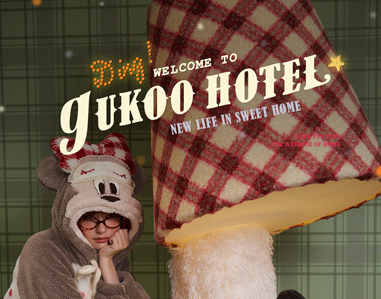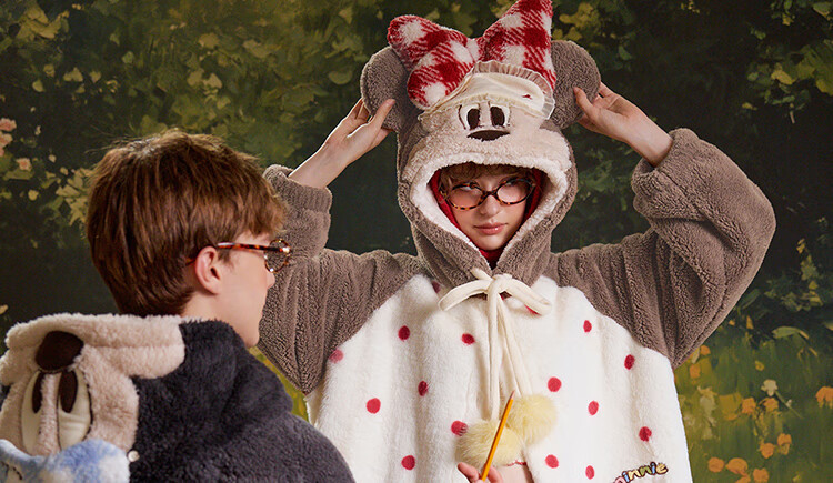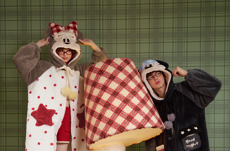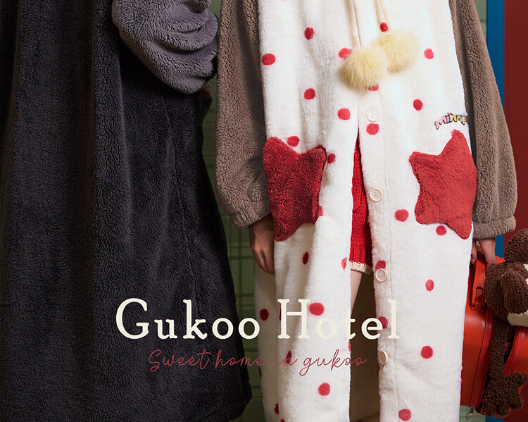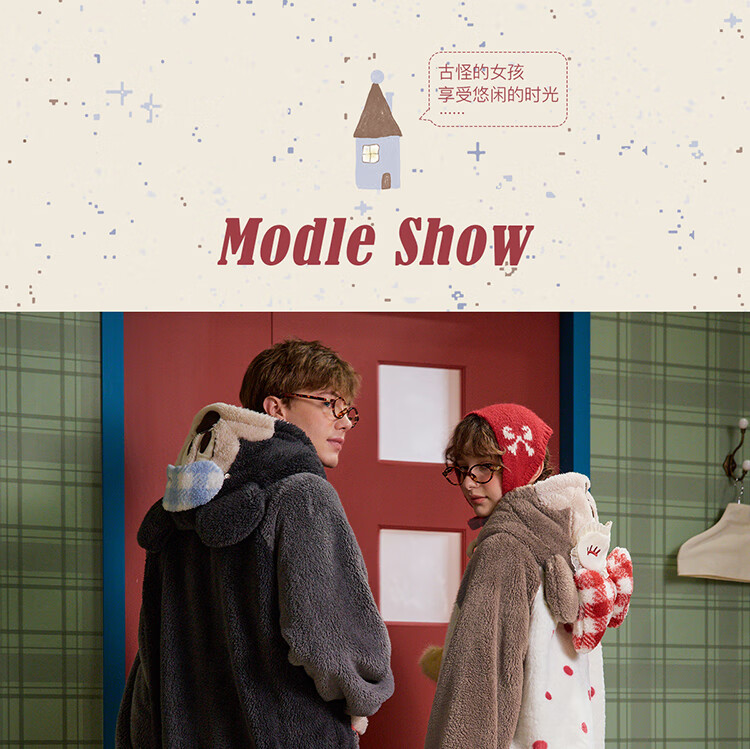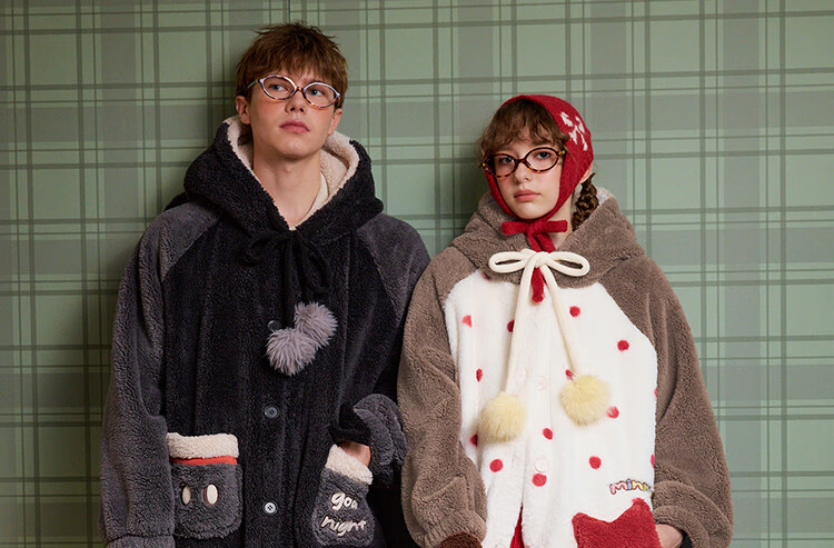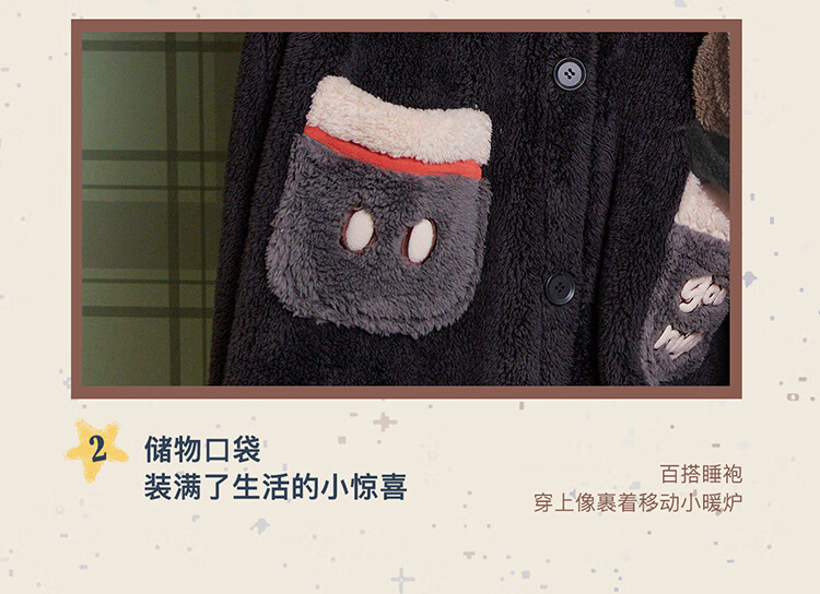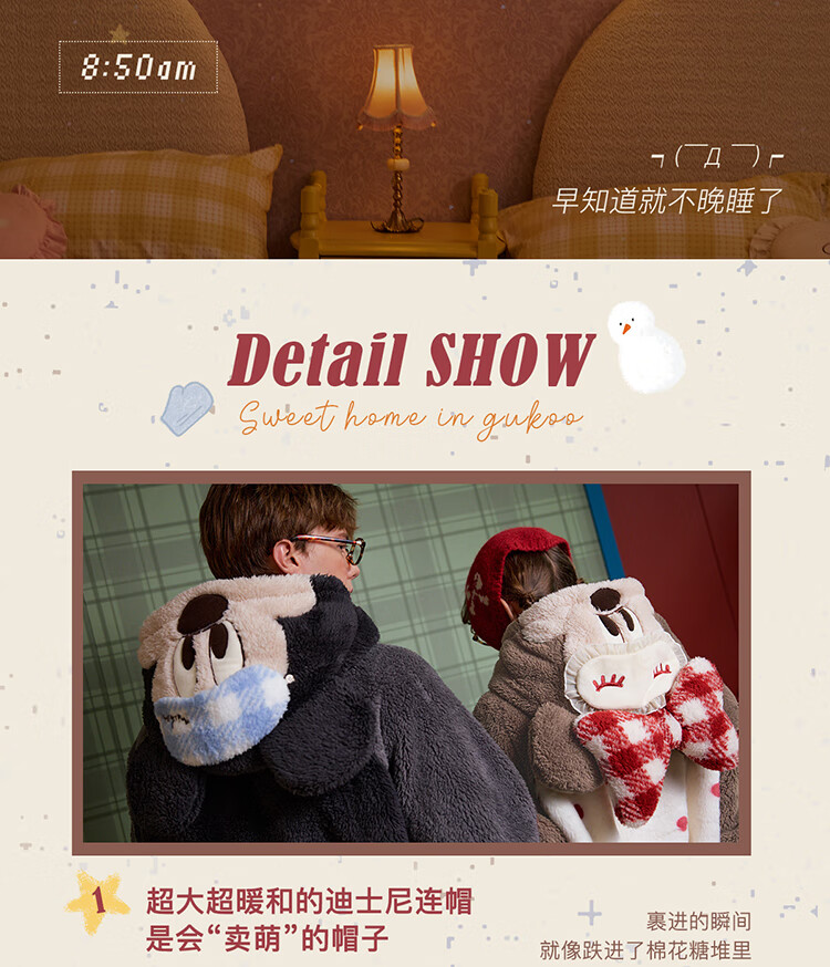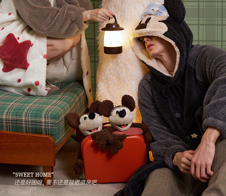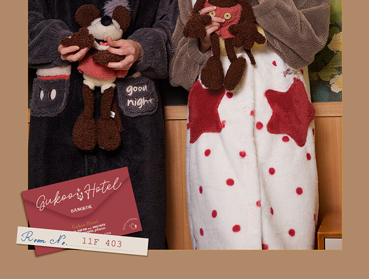 Gukoo couples pajamas winter Disney co-branded coral velvet hooded warm polka dots women's home wear pajamas men's pajamas D bear black nightgown men M