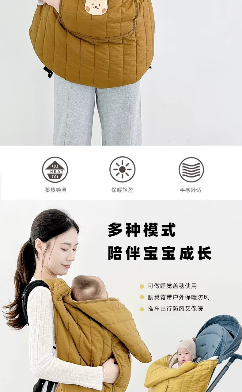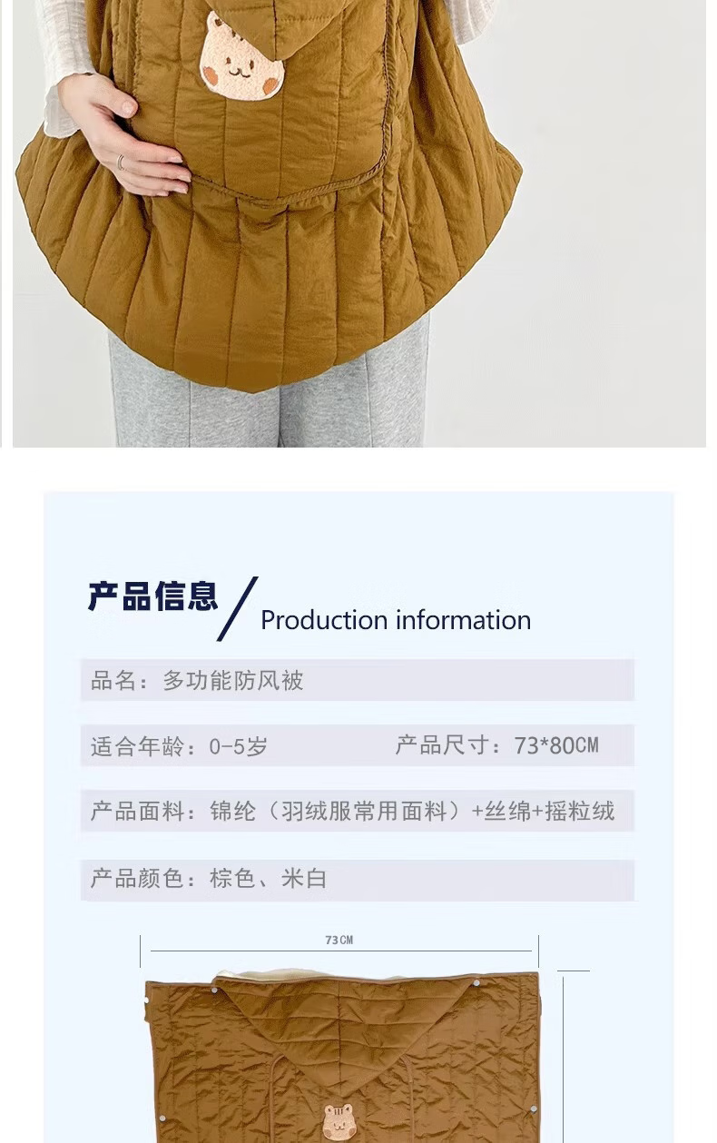 Tanbeiman stroller windproof cloak for autumn and winter outing, stroller cover blanket, waist stool cloak, baby carrier, warm and windproof stroller windproof cloak, yellow bear, windproof waist stool cloak/stroller blanket 73*80cm