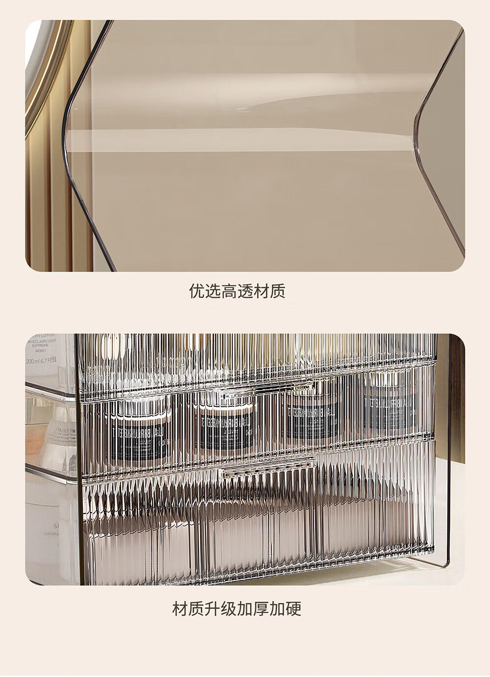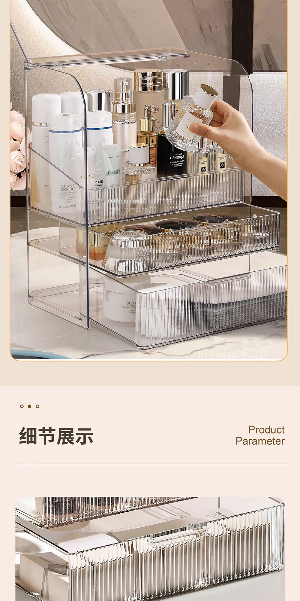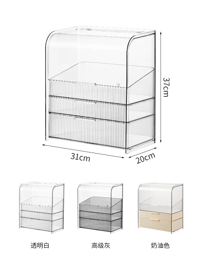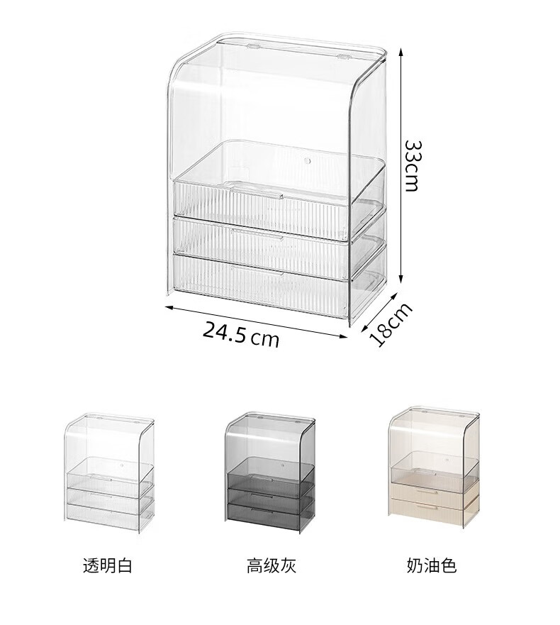 Xiquanfu cosmetics storage box desktop high-end dustproof skin care product storage rack three-layer extra large cream color