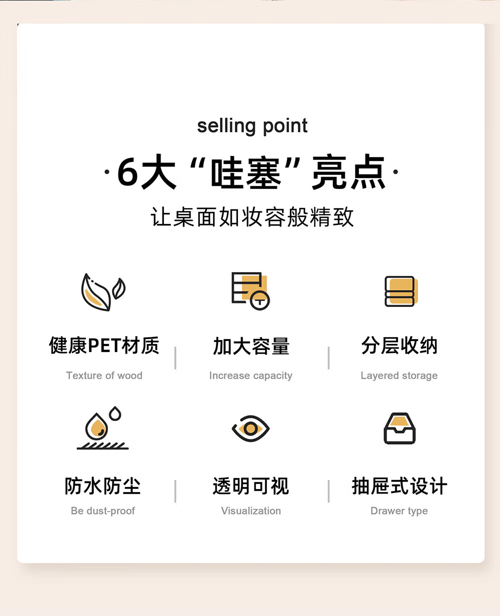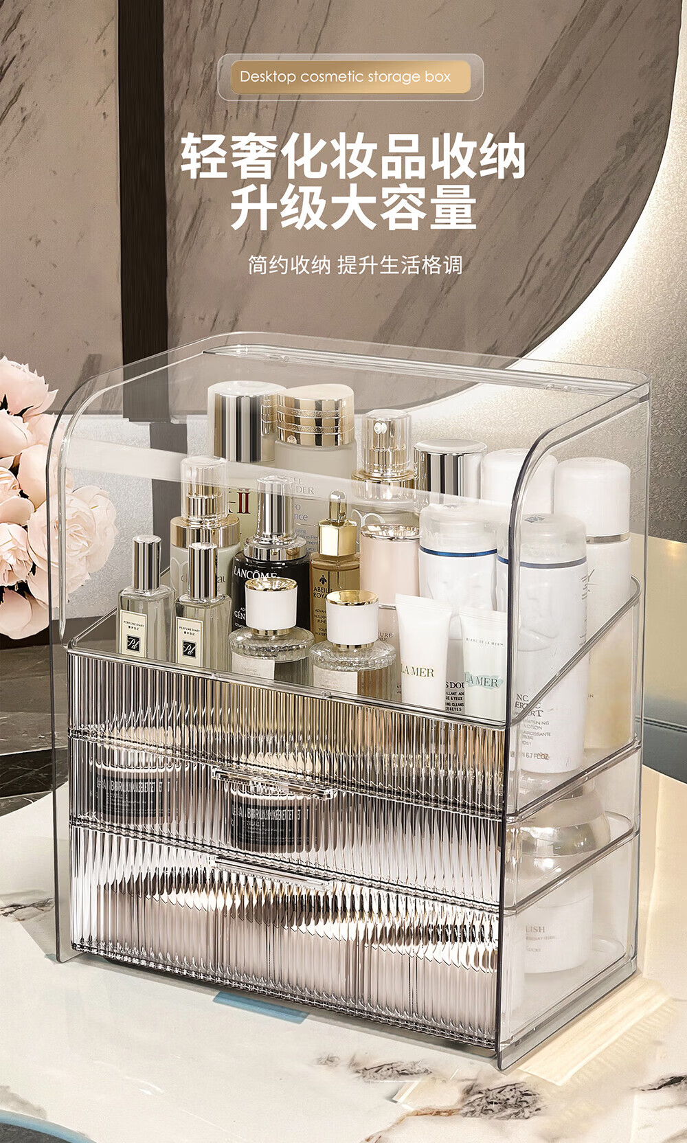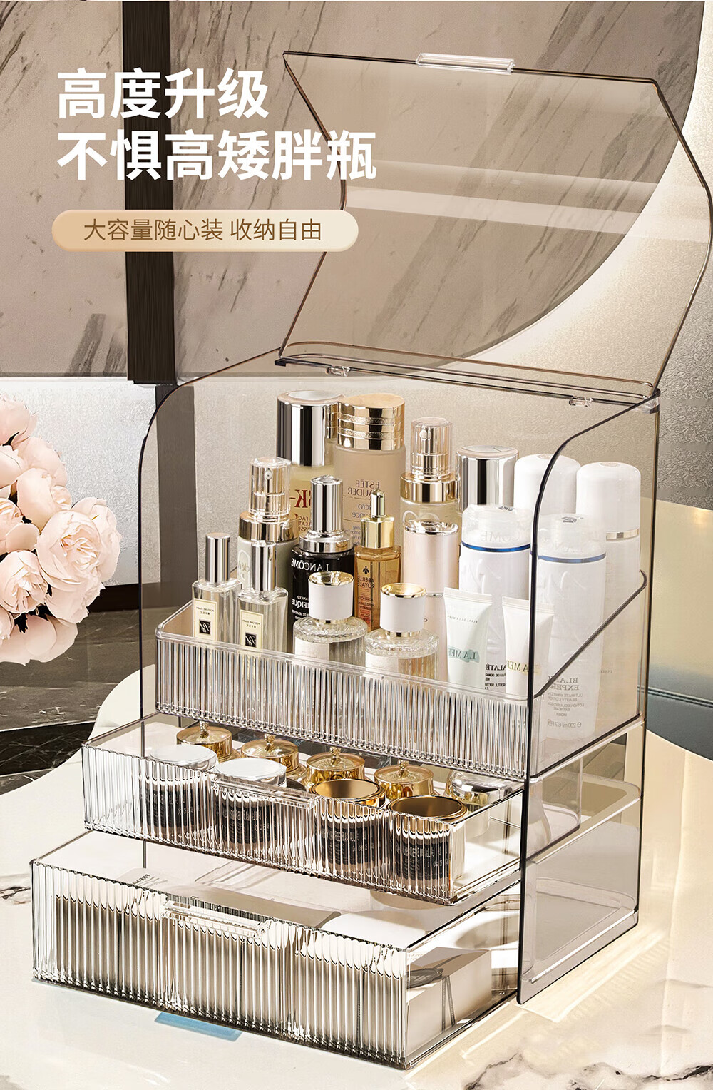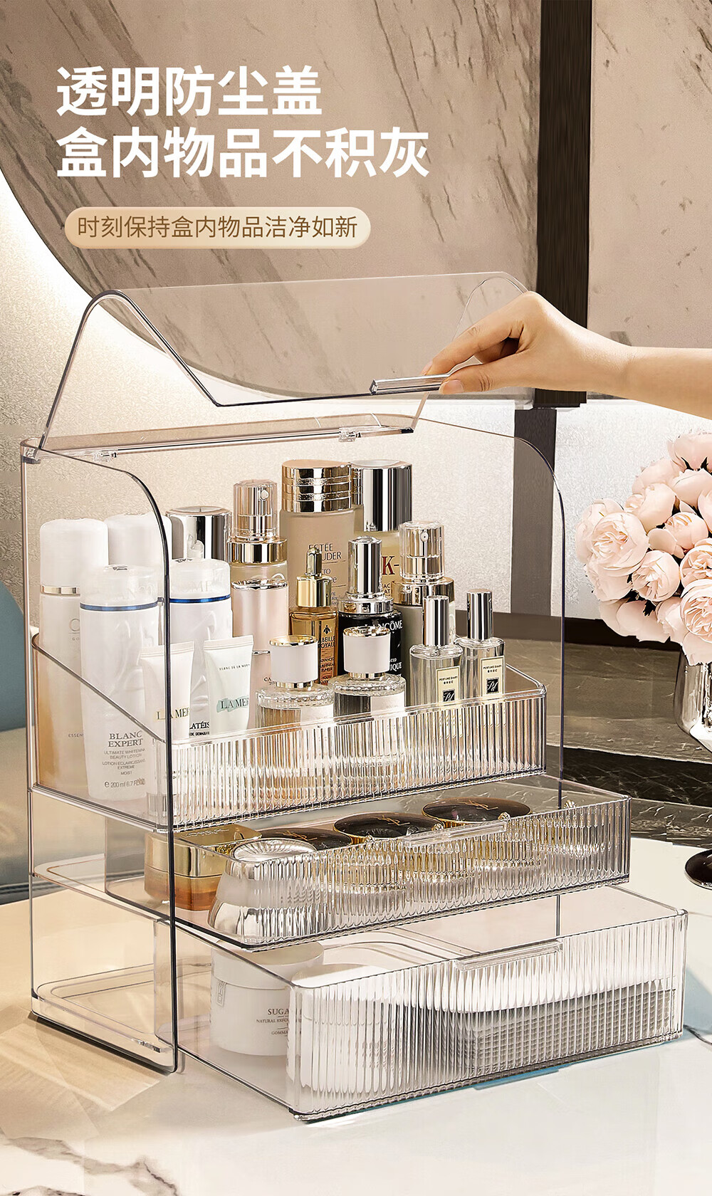 Xiquanfu cosmetics storage box desktop high-end dustproof skin care product storage rack three-layer extra large cream color