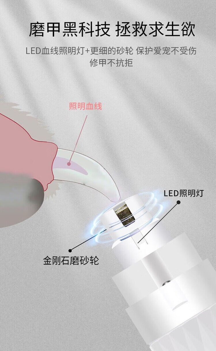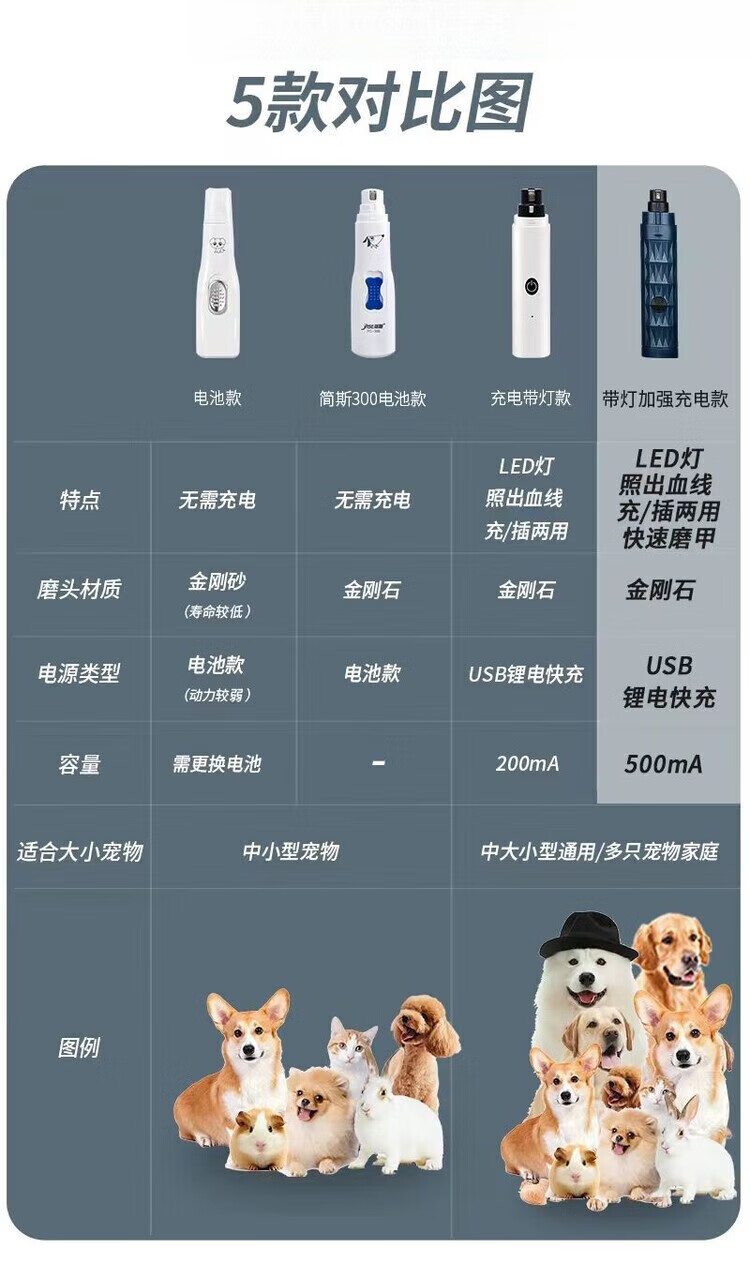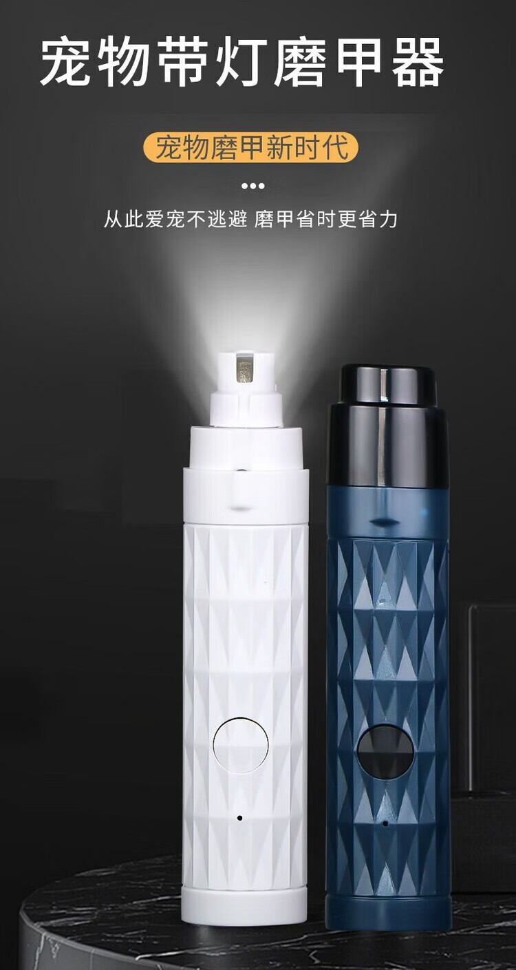 CLCEY German Pet Nail Grinder Electric Pet Polishing Rechargeable Cat Nail Clipper Artifact Kitten Catch Novice Pliers Blue Enhanced Model with Light 500mA+ Replacement Grinding Head