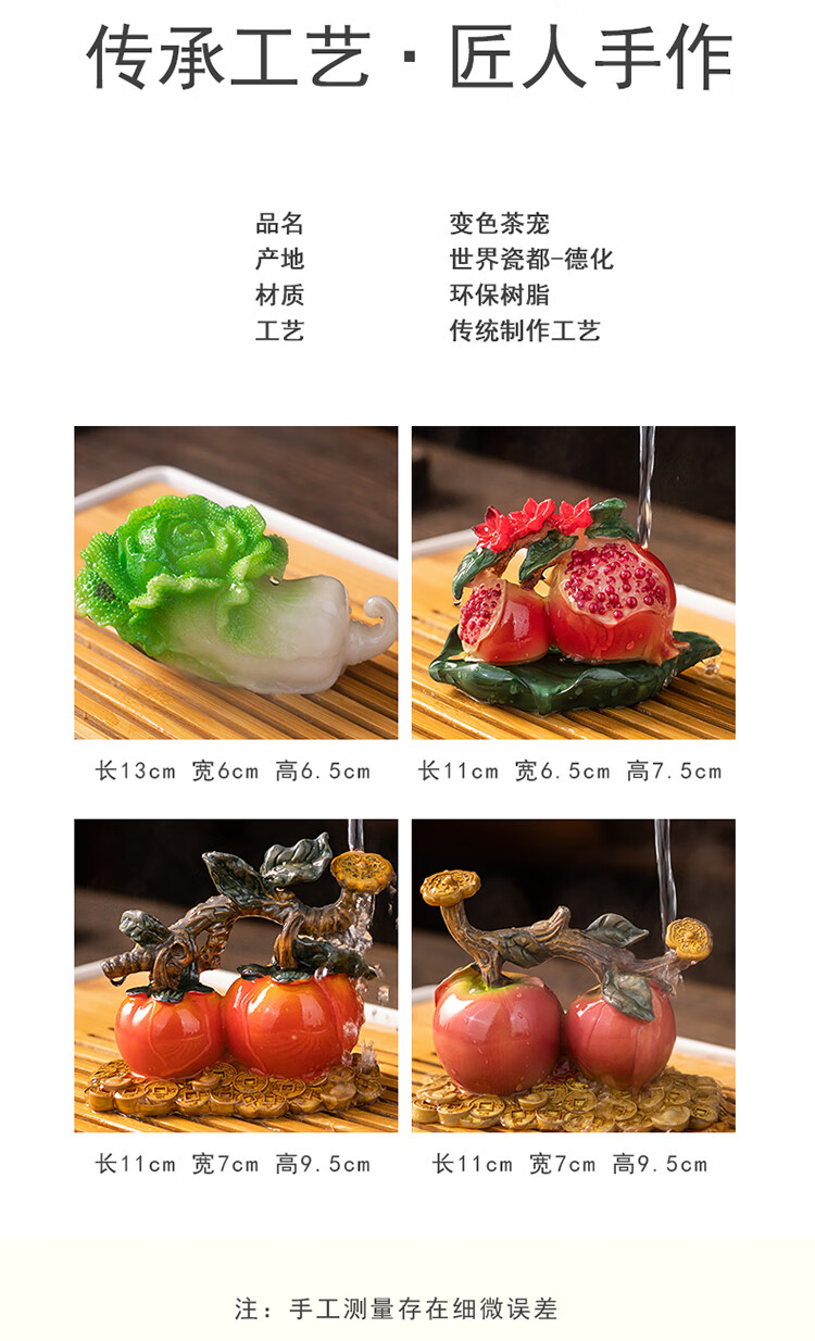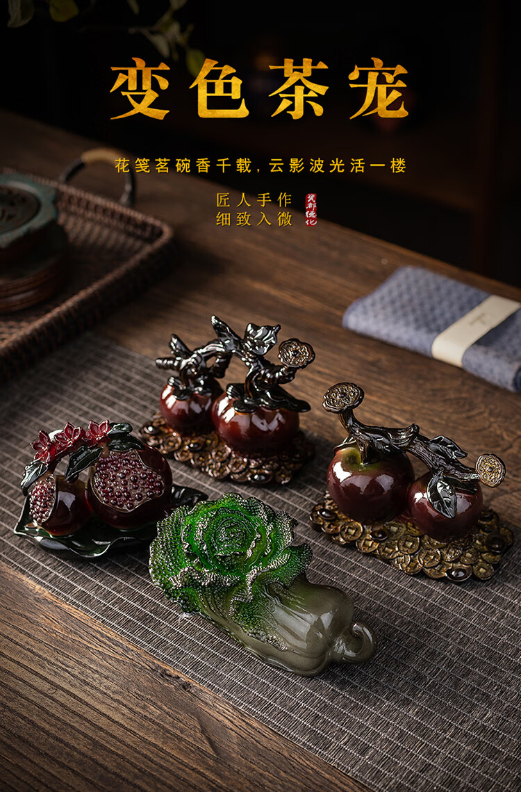 He Jiagong's creative color-changing persimmon tea pet can raise artificial fruit Ruyi cabbage God of Wealth tea set ornaments tea tray decoration tea toy color-changing apple-Pingping An'an