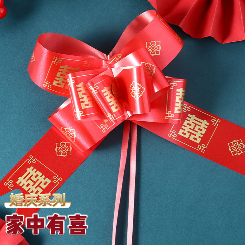 Large hand-drawn flower bow ribbon wedding ribbon wedding car door handle decoration ribbon fruit flower basket decoration flower 10 happy words