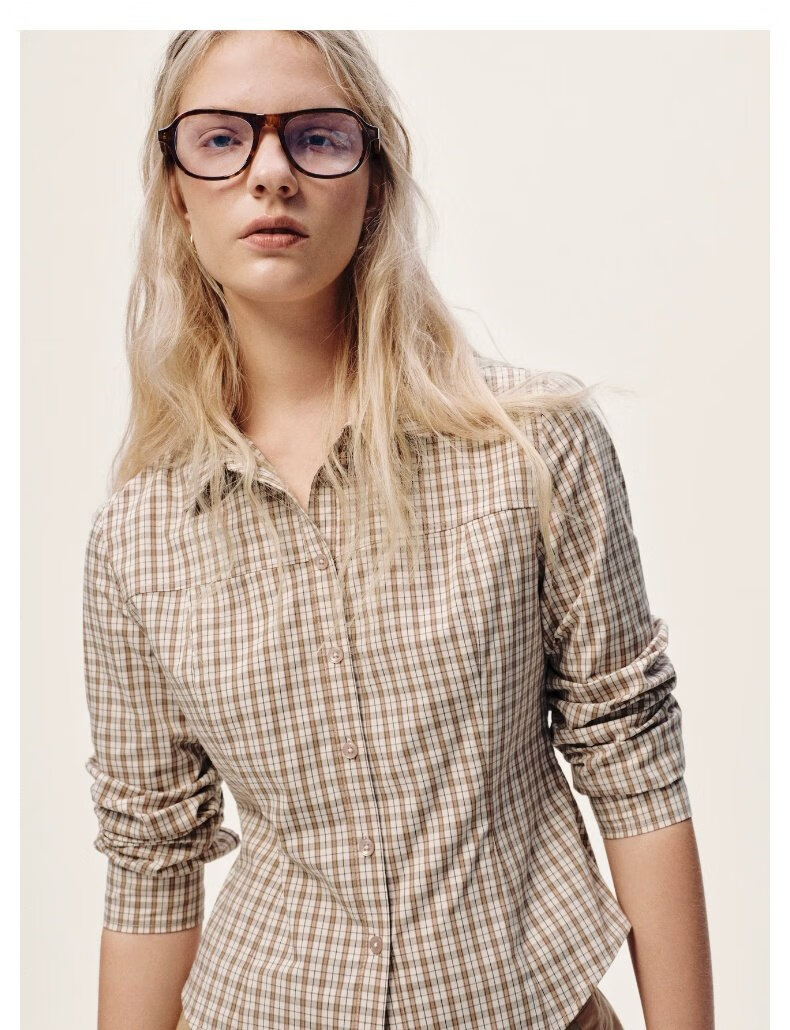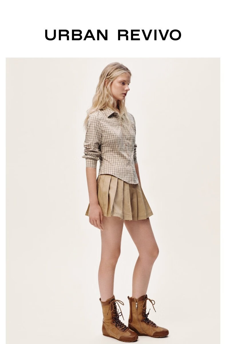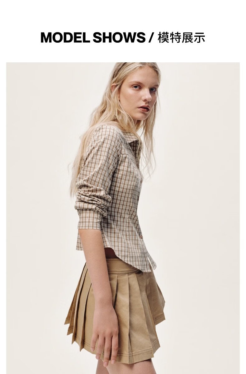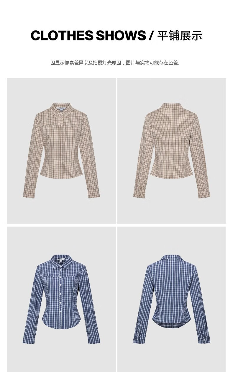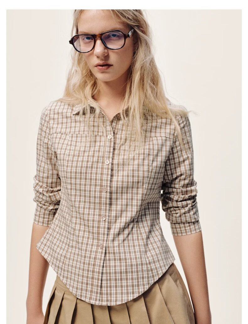 UR2026 Spring New Women's Casual Contrast Color Plaid Lapel Cardigan Shirt UYY250108 Khaki Brown Plaid S