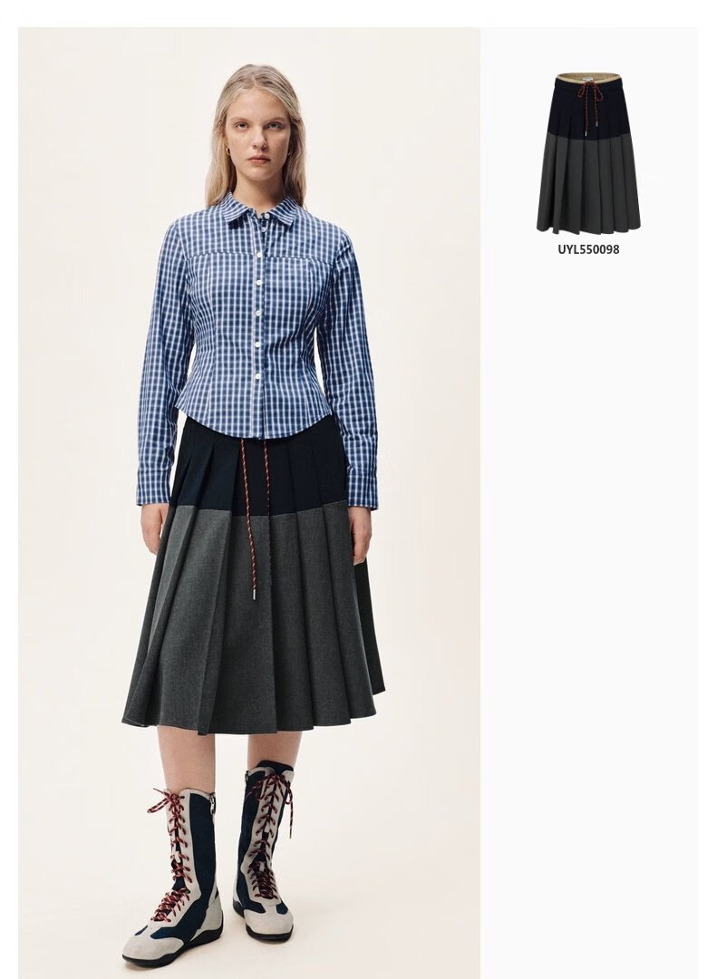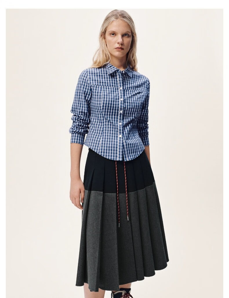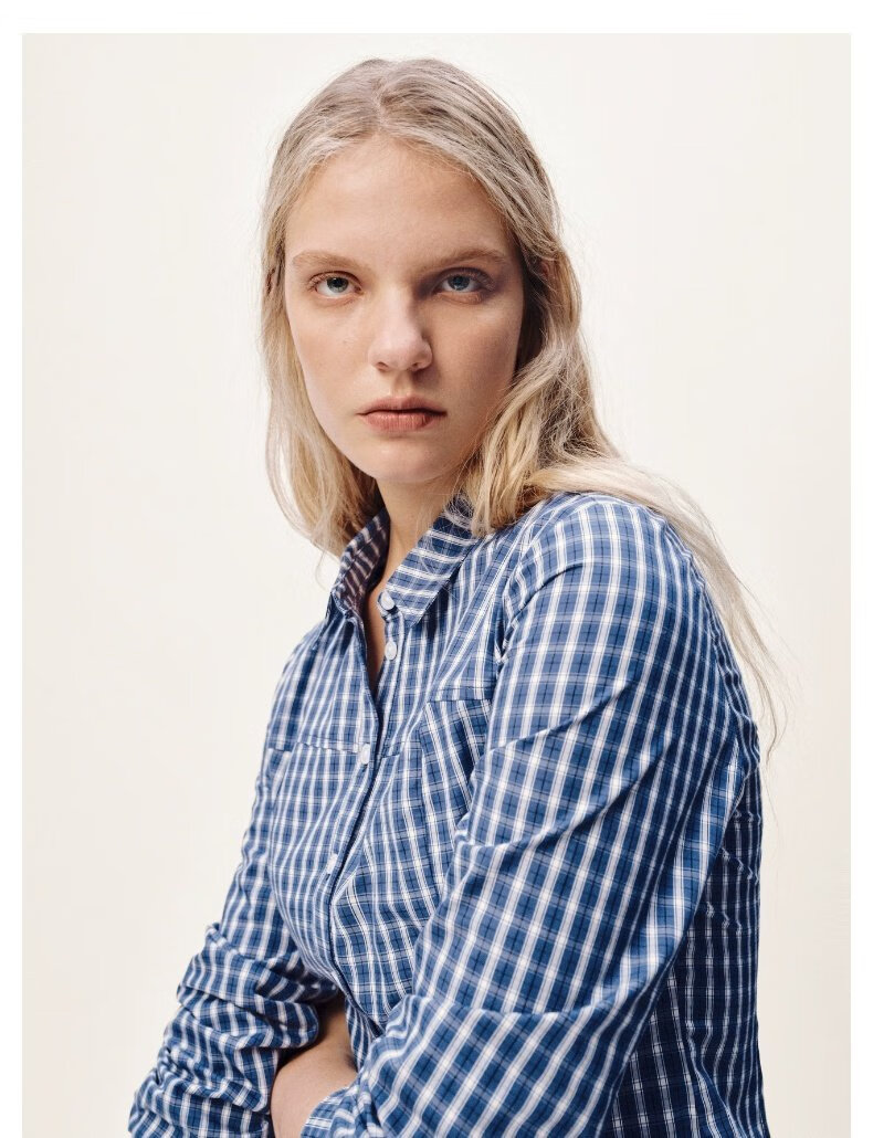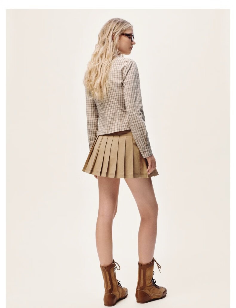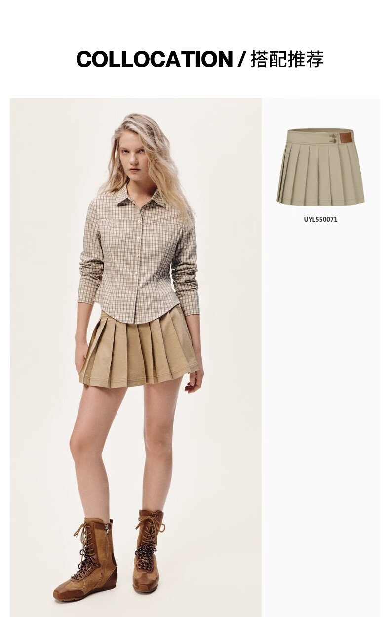 UR2026 Spring New Women's Casual Contrast Color Plaid Lapel Cardigan Shirt UYY250108 Khaki Brown Plaid S