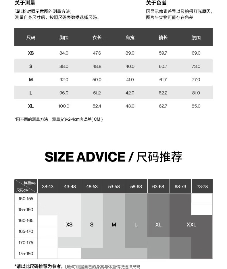 China (cm) 160-165/84-86 165-170 / 88-90 167-172 / 92-96 168-173 / 98-102 170-176 / 106-110