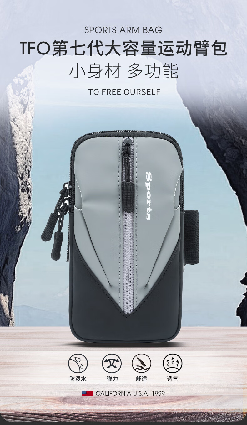 TFO competition grade men's and women's off-road running mobile phone arm bag sports outdoor fitness arm storage bag wrist bag black gray