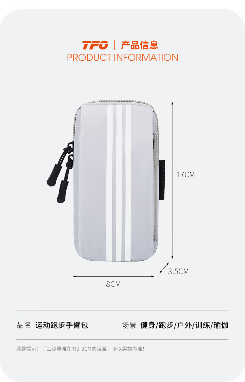 TFO running arm bag, men's and women's sports equipment mobile phone bag, arm bag, arm bag, arm arm sleeve storage wrist bag, gray