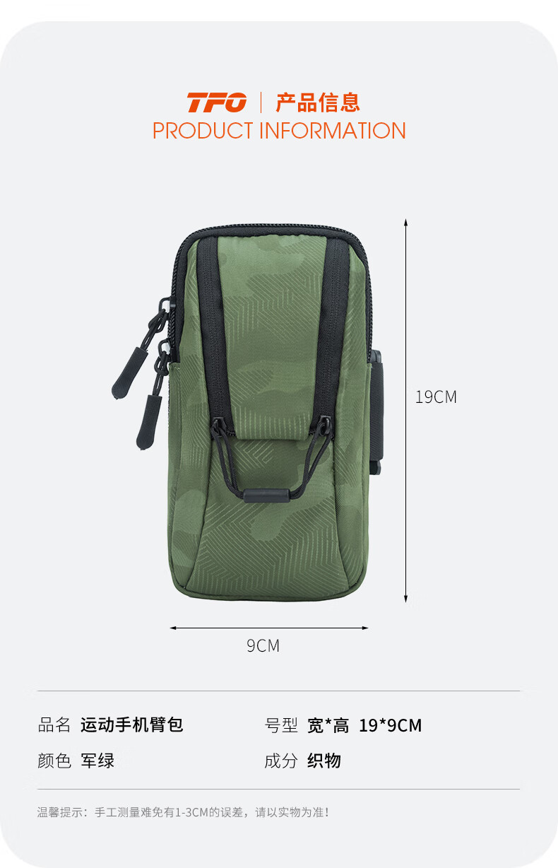 TFO competition-grade sports arm bag for men and women, multi-functional outdoor cross-country running bag, arm bag, mobile phone bag, fitness bag, military green