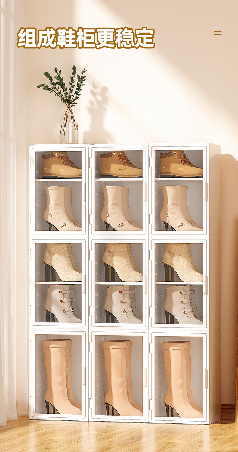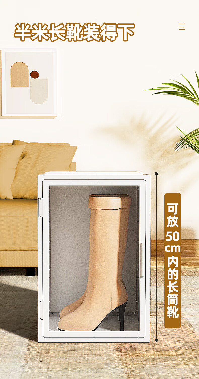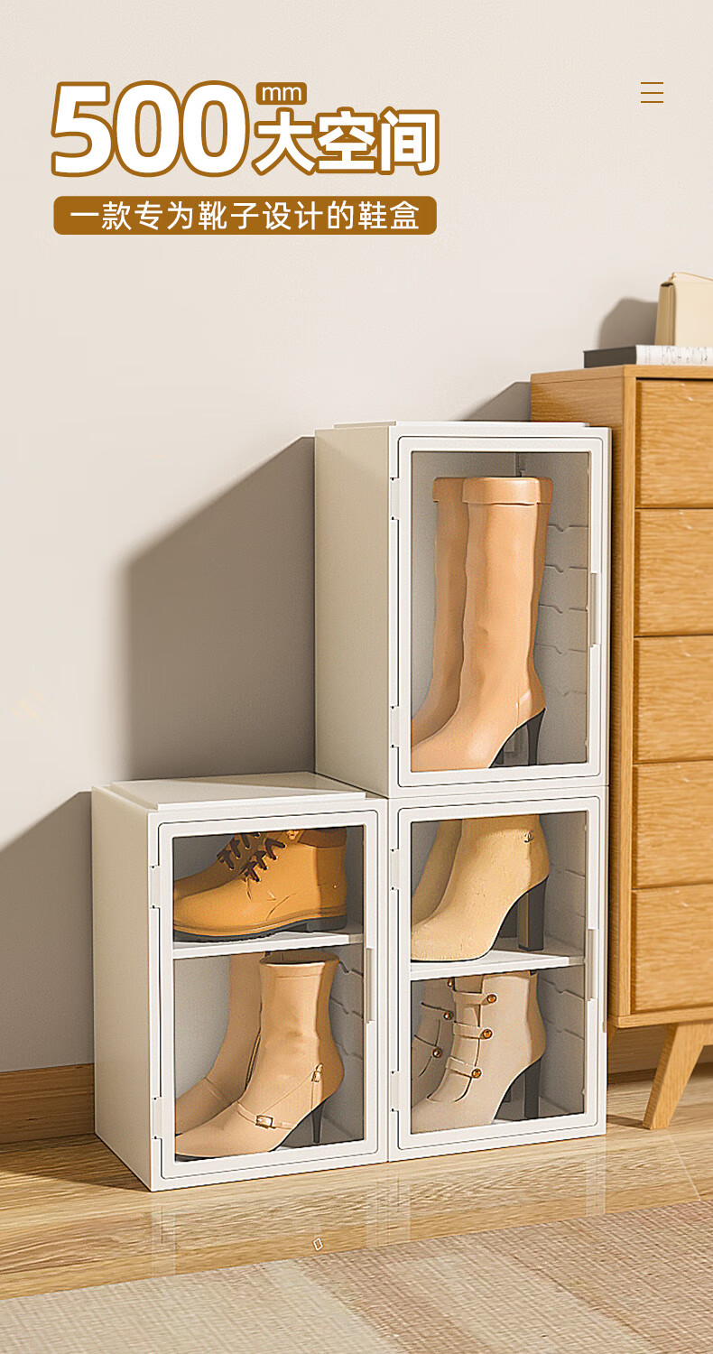 Resistant and unrestrained long-tube over-the-knee short boots shoe box storage box shoe rack shoe cabinet shoe storage cabinet artifact transparent Moran White 2-piece discount for another 20 yuan 33.5x28x50cm