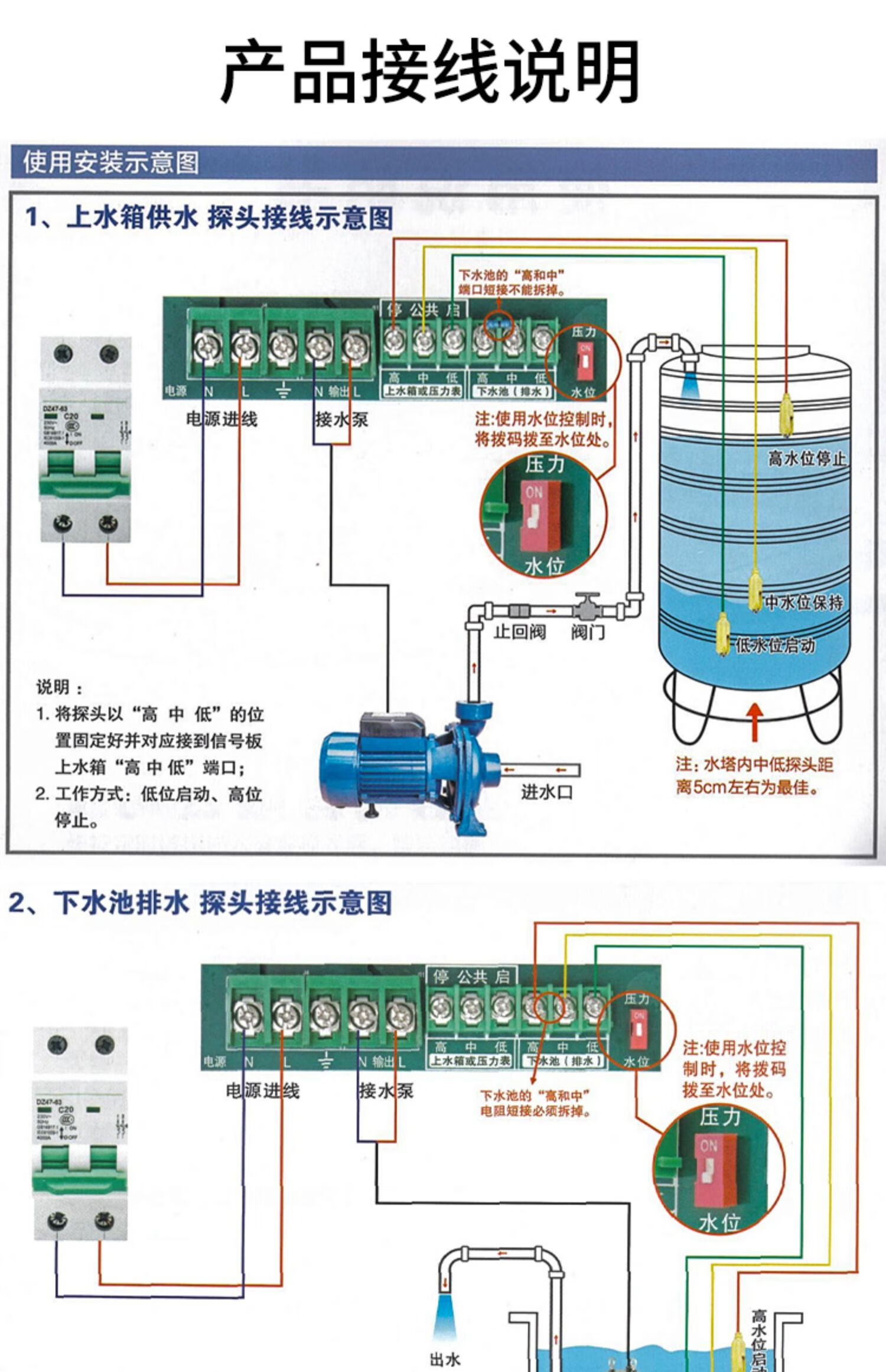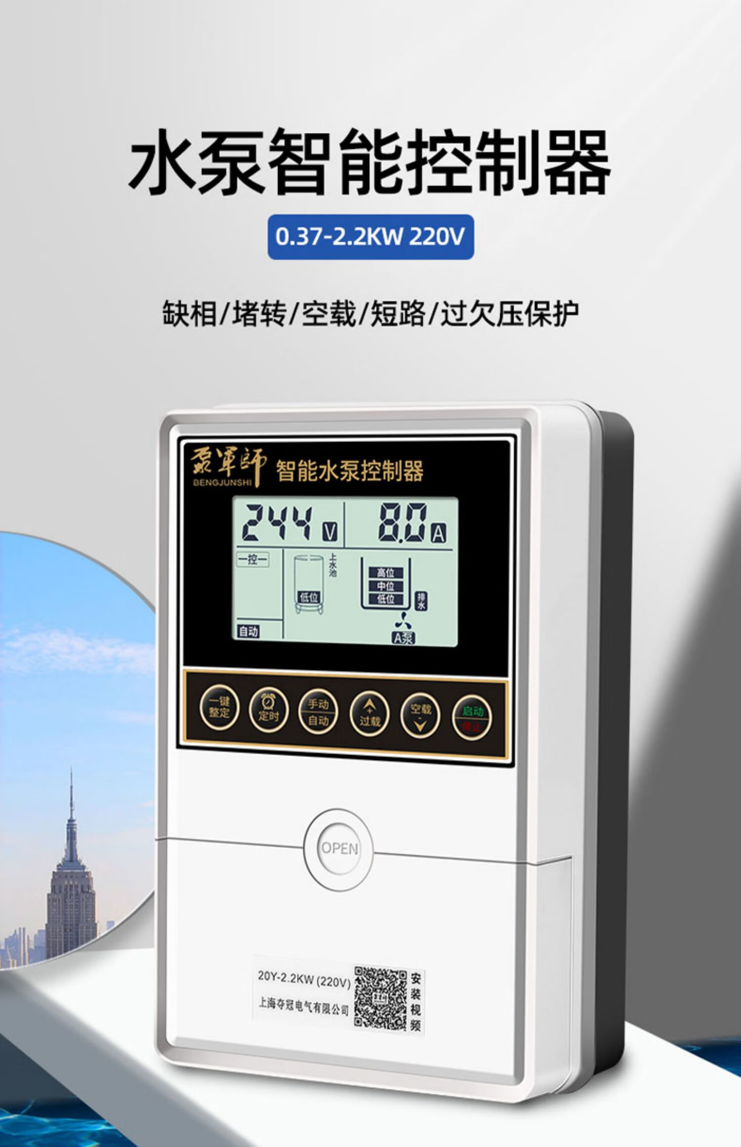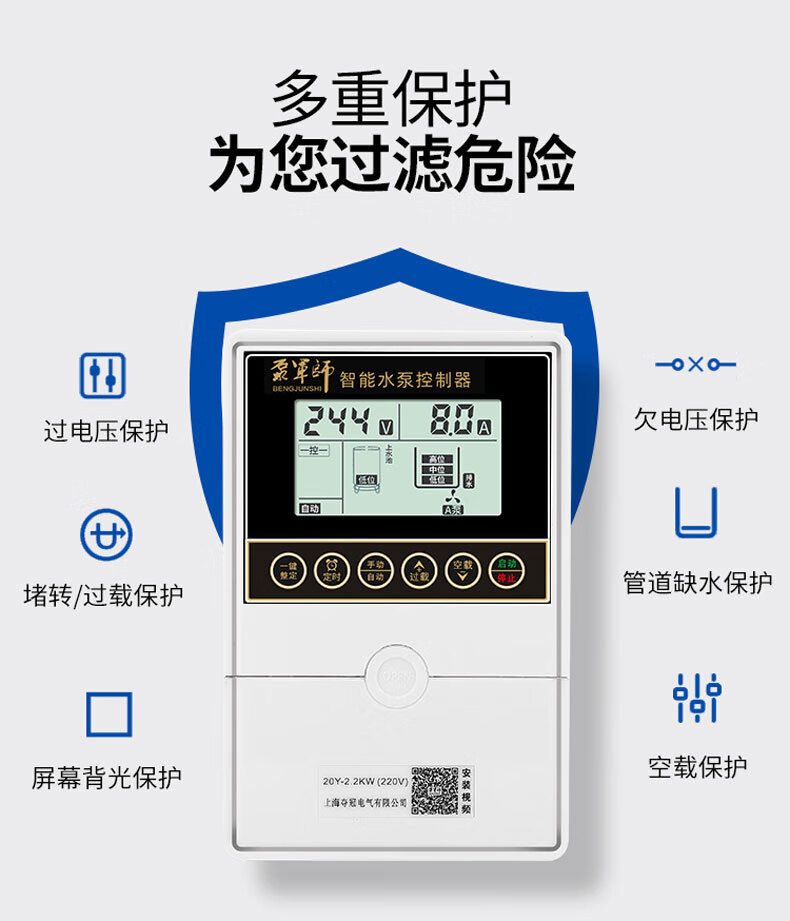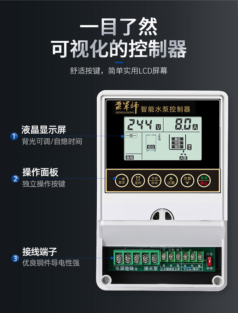 Fully intelligent water level sensor pumping remote control switch water tower water pump automatic water supply controller household liquid level pump treasure upgraded 370W2.2KW single-phase 220V LCD display