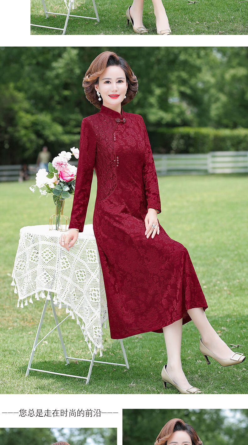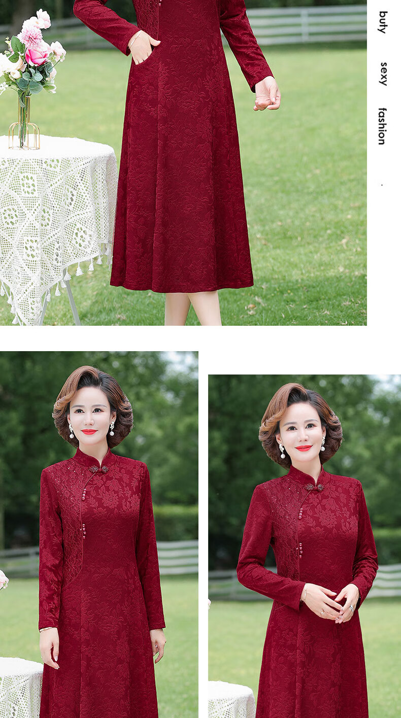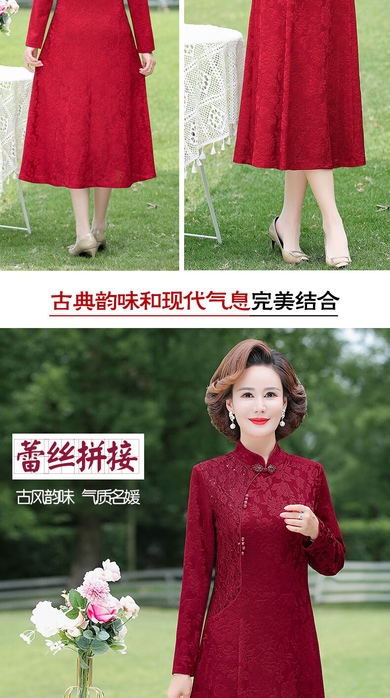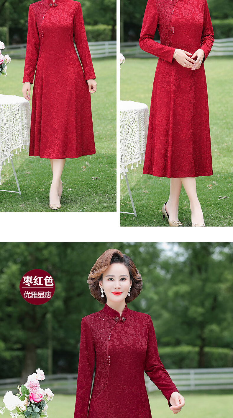 MOUTH MOVEMENT Xi mother-in-law's wedding banquet winter dress mother's noble dress wedding long dress middle-aged and elderly improved solid color cheongsam dress dark red_ plus velvet style XL recommended (110Jin Jin is equal to 0.5 kg or less b