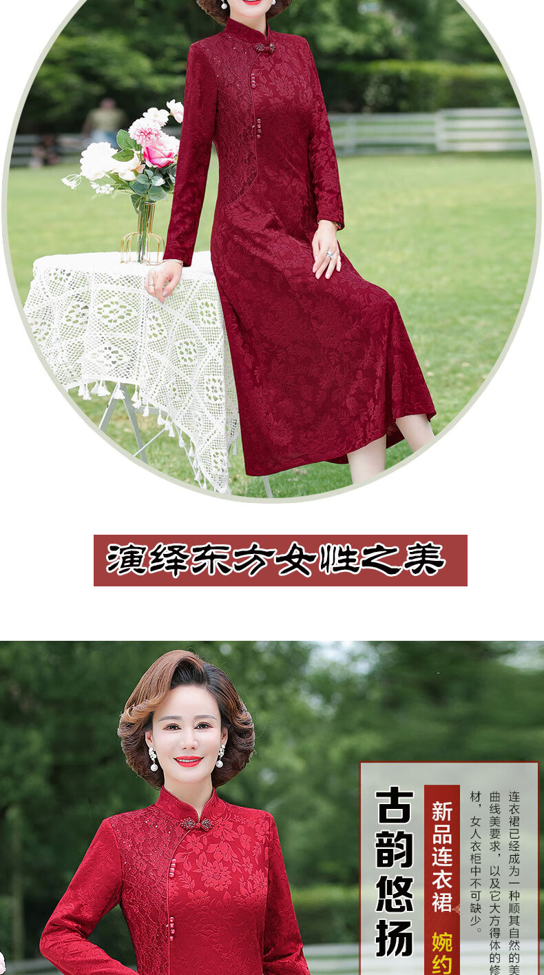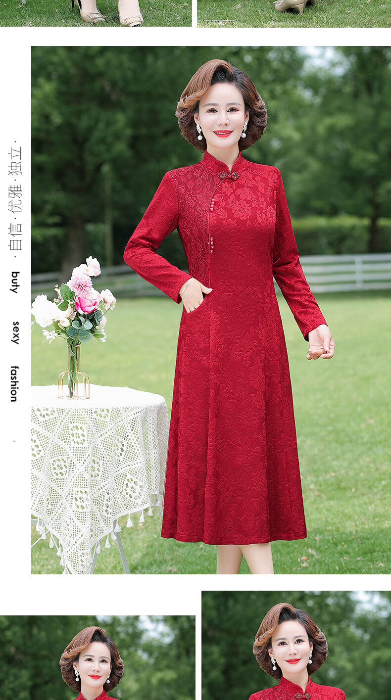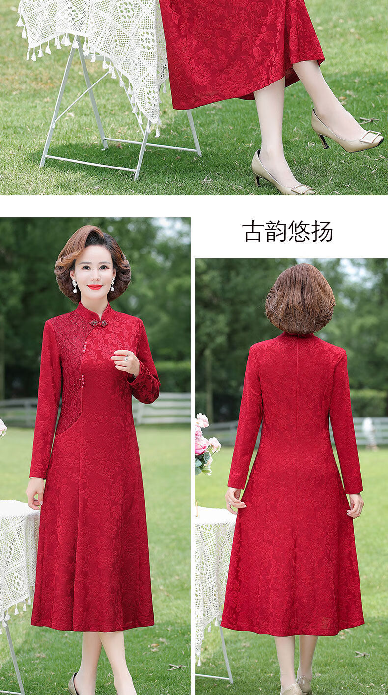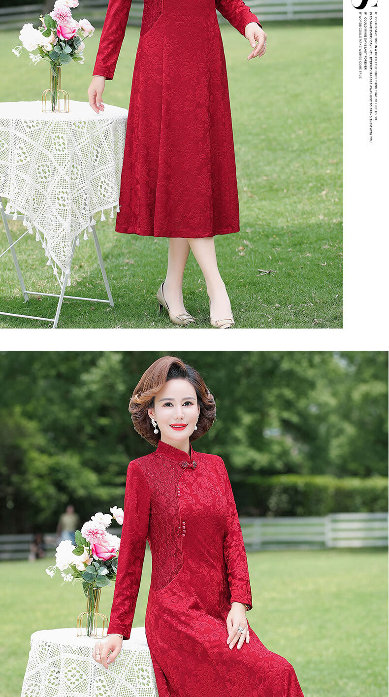 MOUTH MOVEMENT Xi mother-in-law's wedding banquet winter dress mother's noble dress wedding long dress middle-aged and elderly improved solid color cheongsam dress dark red_ plus velvet style XL recommended (110Jin Jin is equal to 0.5 kg or less b