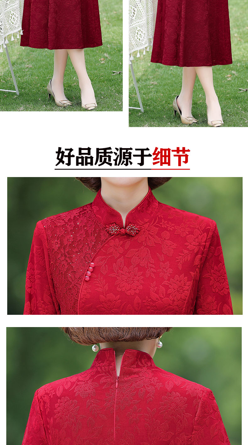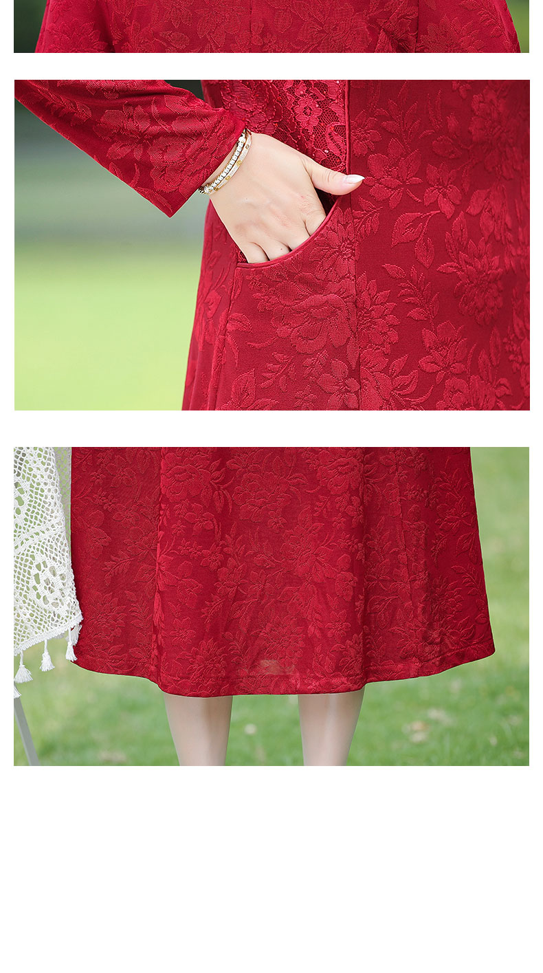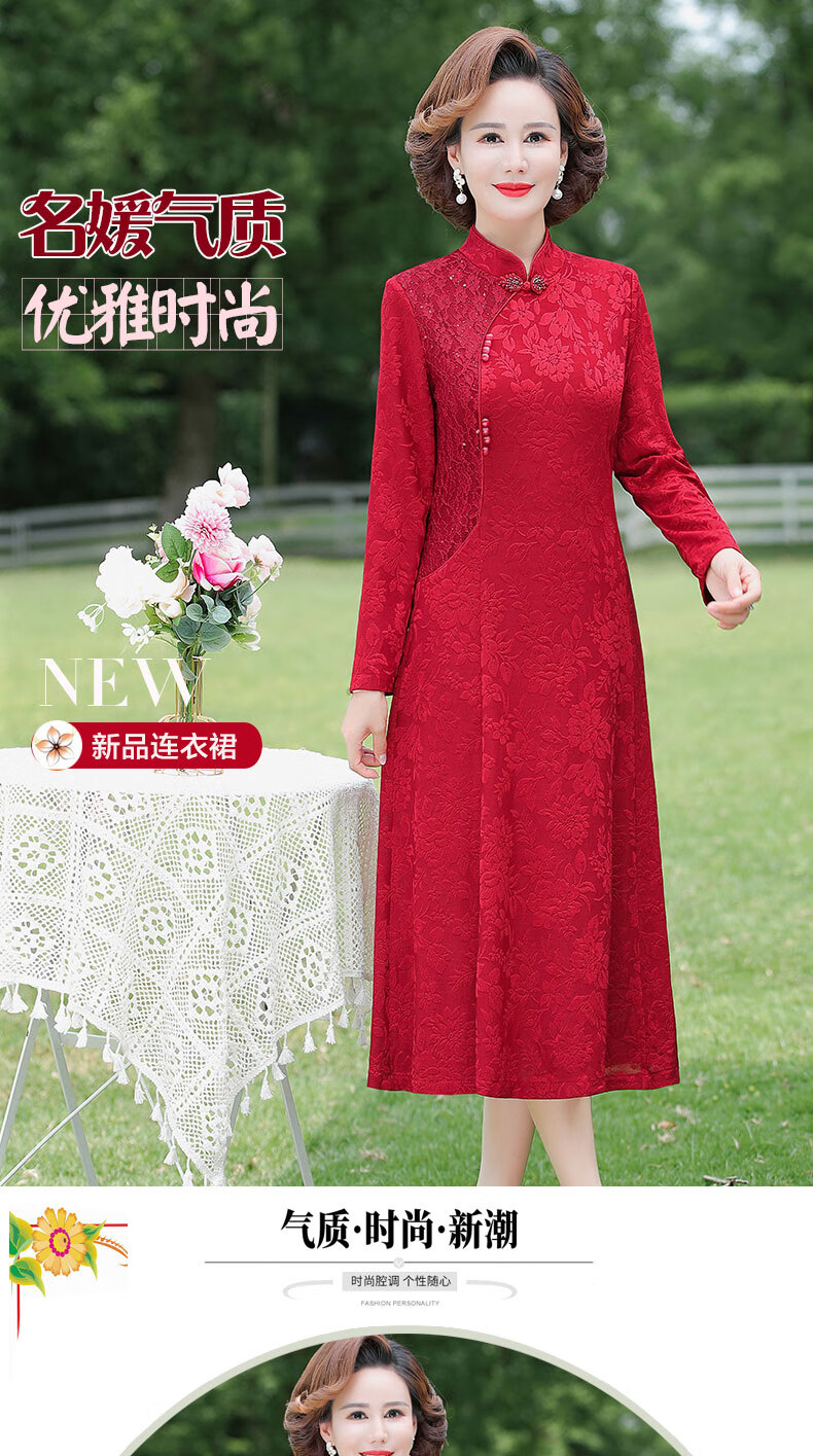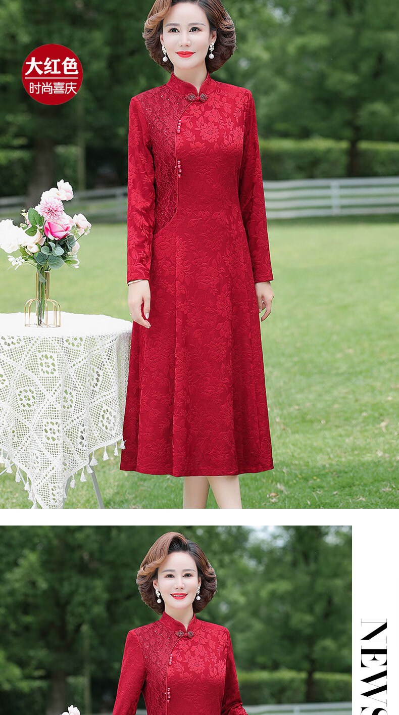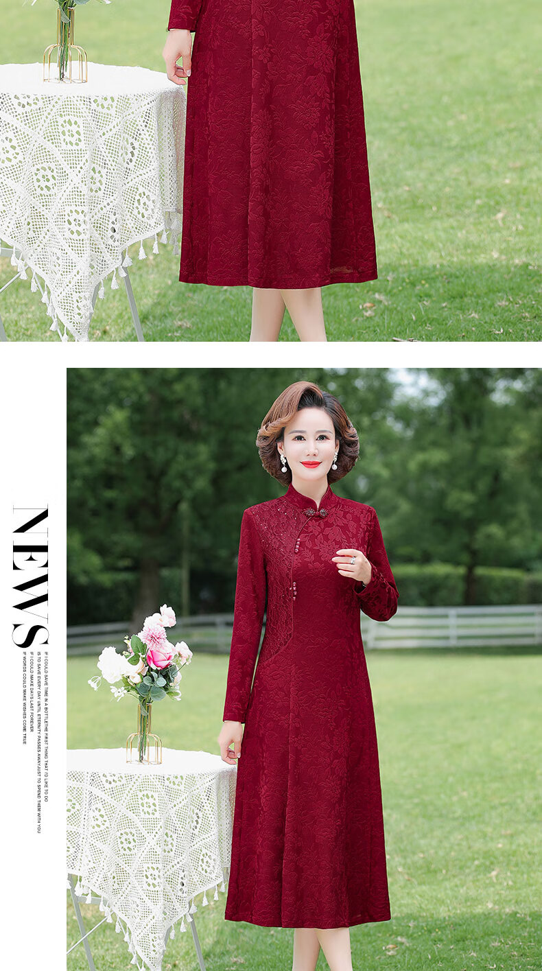 MOUTH MOVEMENT Xi mother-in-law's wedding banquet winter dress mother's noble dress wedding long dress middle-aged and elderly improved solid color cheongsam dress dark red_ plus velvet style XL recommended (110Jin Jin is equal to 0.5 kg or less b
