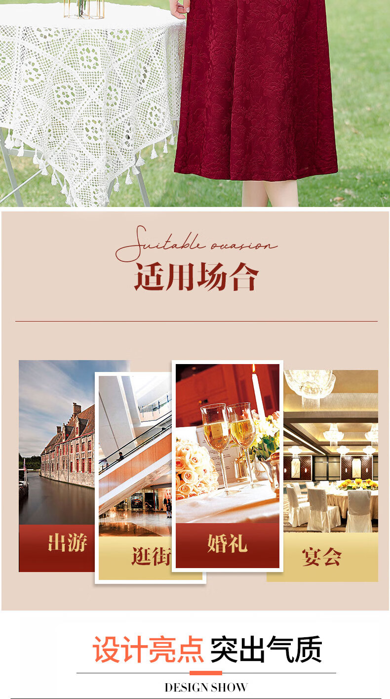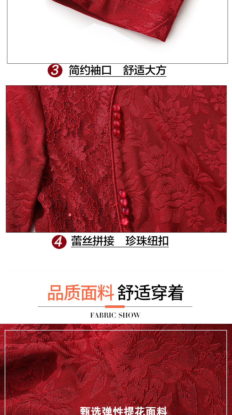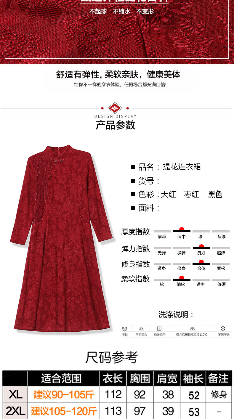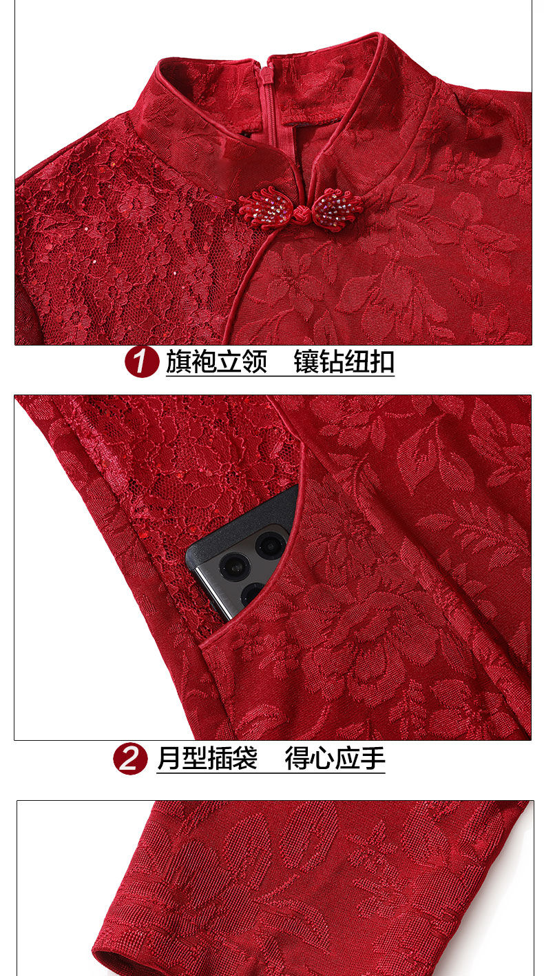 MOUTH MOVEMENT Xi mother-in-law's wedding banquet winter dress mother's noble dress wedding long dress middle-aged and elderly improved solid color cheongsam dress dark red_ plus velvet style XL recommended (110Jin Jin is equal to 0.5 kg or less b