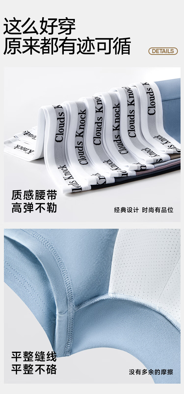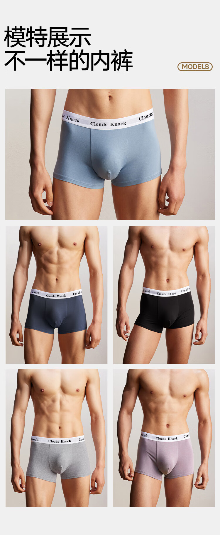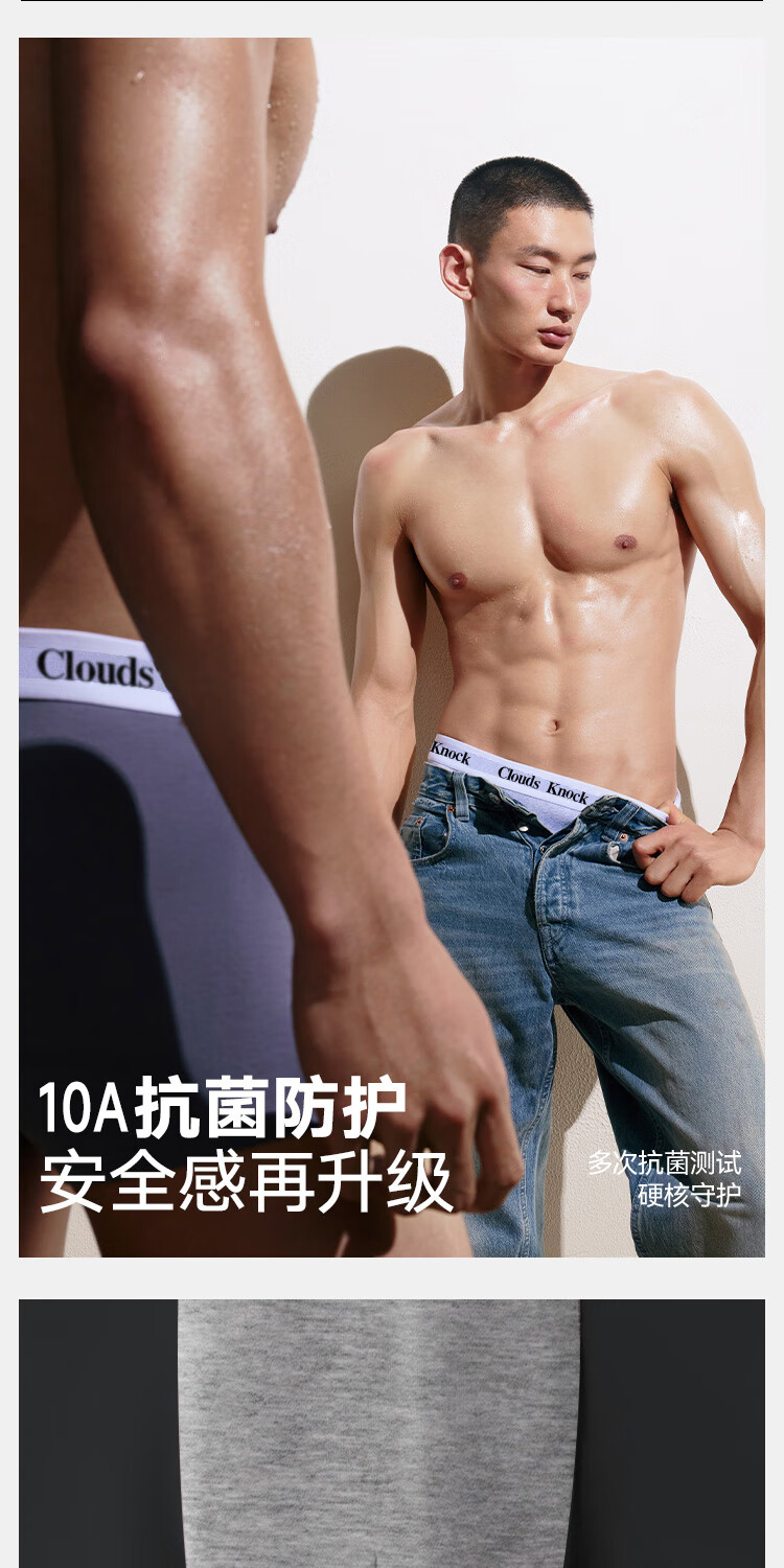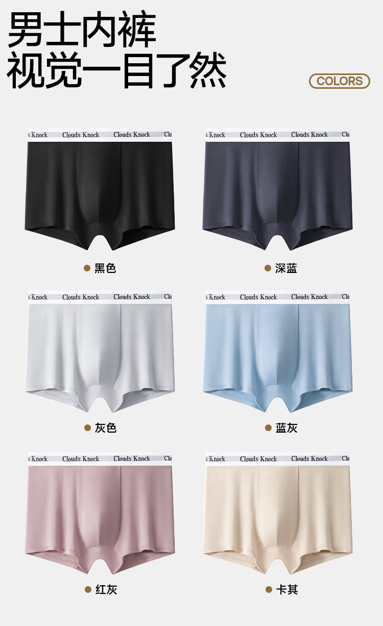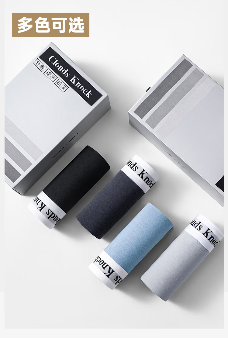 CLOUDS KNOCK Men's Underwear Men's Pure Cotton High-end Luxury Modal Antibacterial Boy's Boxer Briefs Men's Ice Silk Briefs Gift Modal Counter Classic Black/Gray/Blue/Gray 4 Pairs XL 120-140Jin Jin is equal to within 0.5 kg