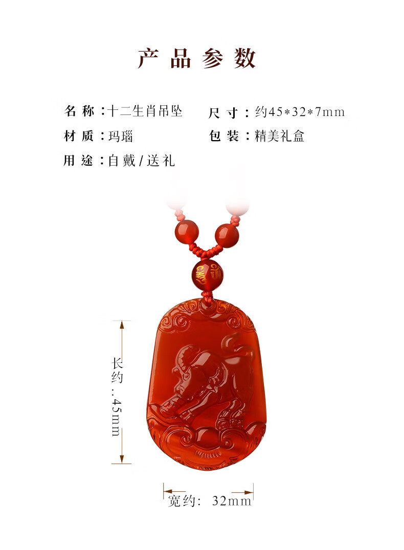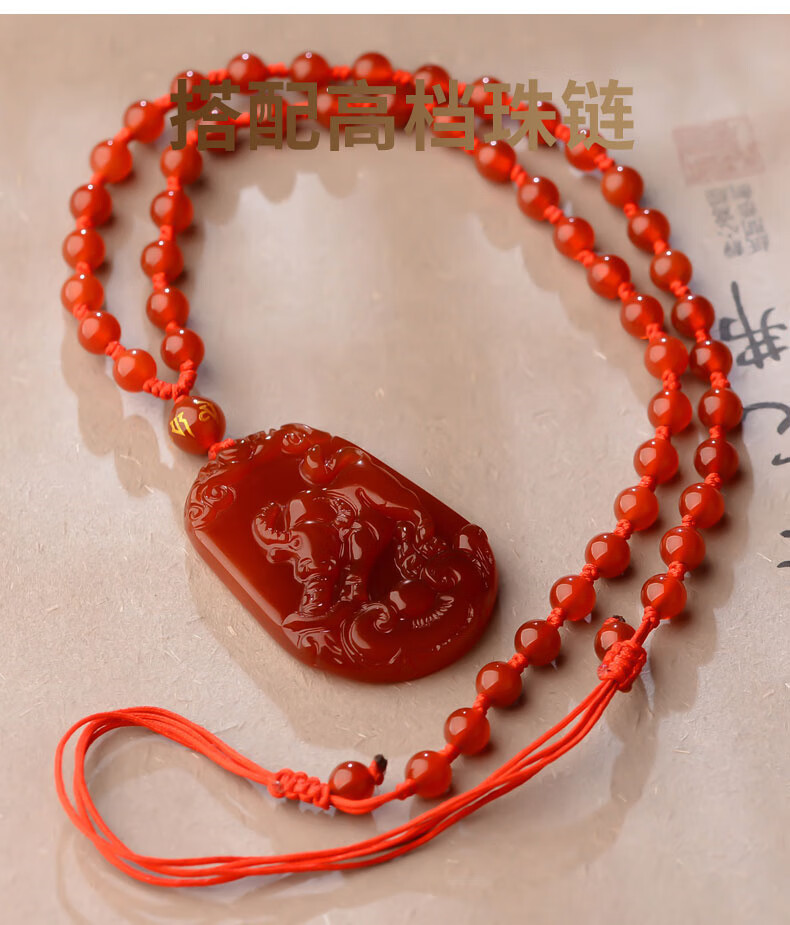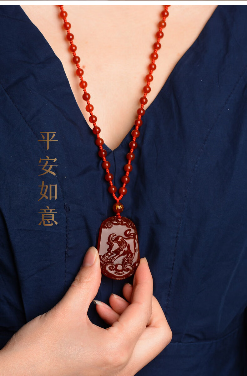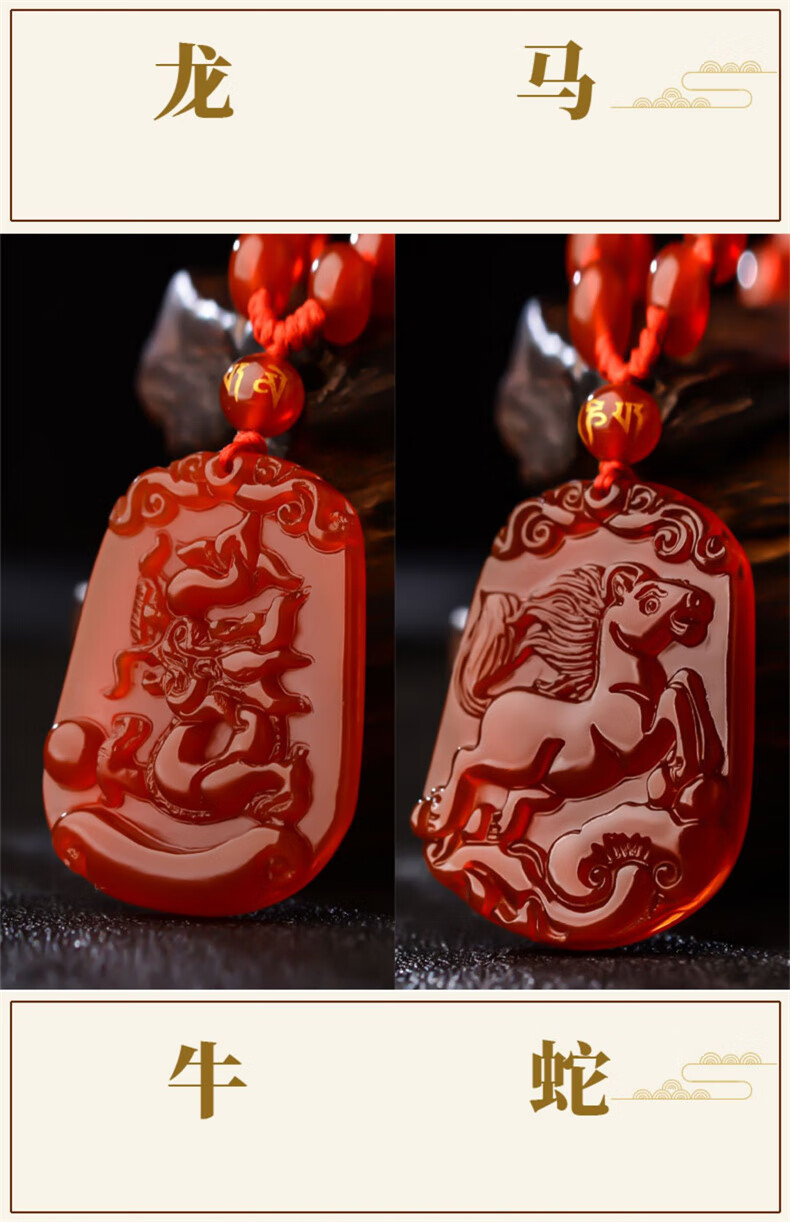 MARDOTG Red Agate Zodiac Pendant for Men and Women, Year of the Horse, Horse Amulet Necklace, Anniversary Festival Gift, Zodiac, Snake, Bead Chain Style