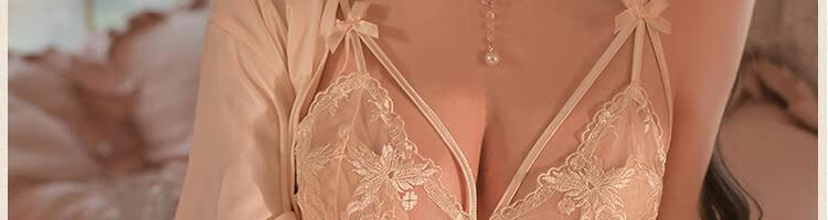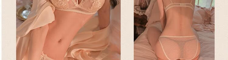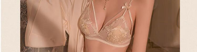 Probus brand French sexy underwear women's push-up thin push-up comfortable breathable bra pure desire lace no wire bra Champagne (set) L (36/80AB full cup)