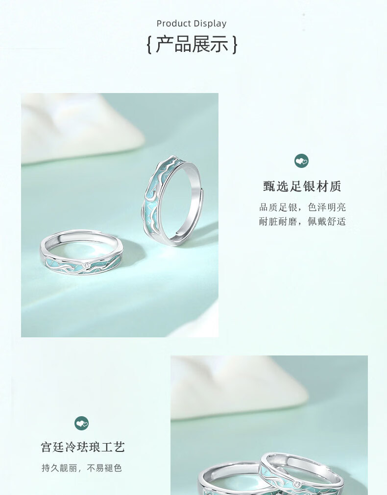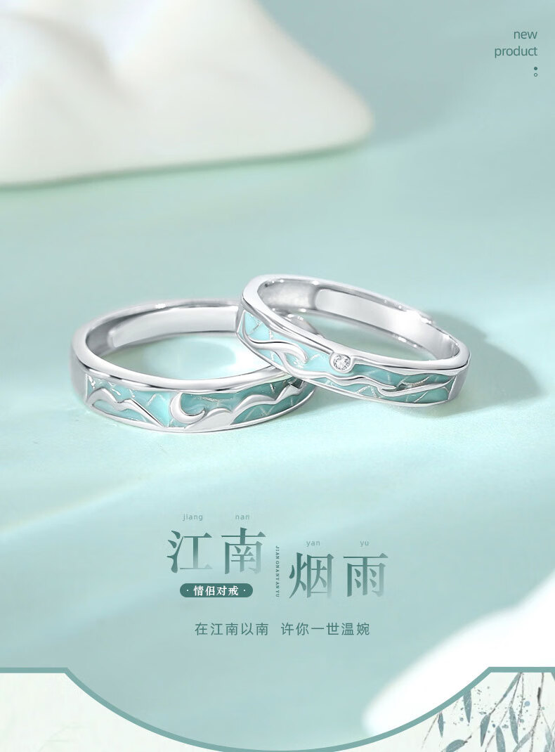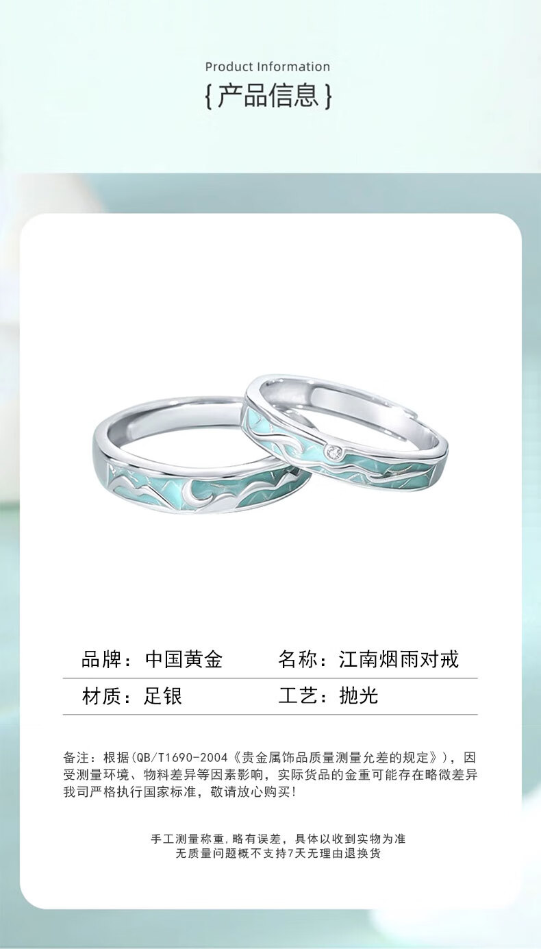 China Gold (CHINA GOLD) pure silver ring for men and women, national style Jiangnan Yanyu couple's ring, Valentine's Day birthday gift for girlfriend and wife Jiangnan Yanyu's couple's ring