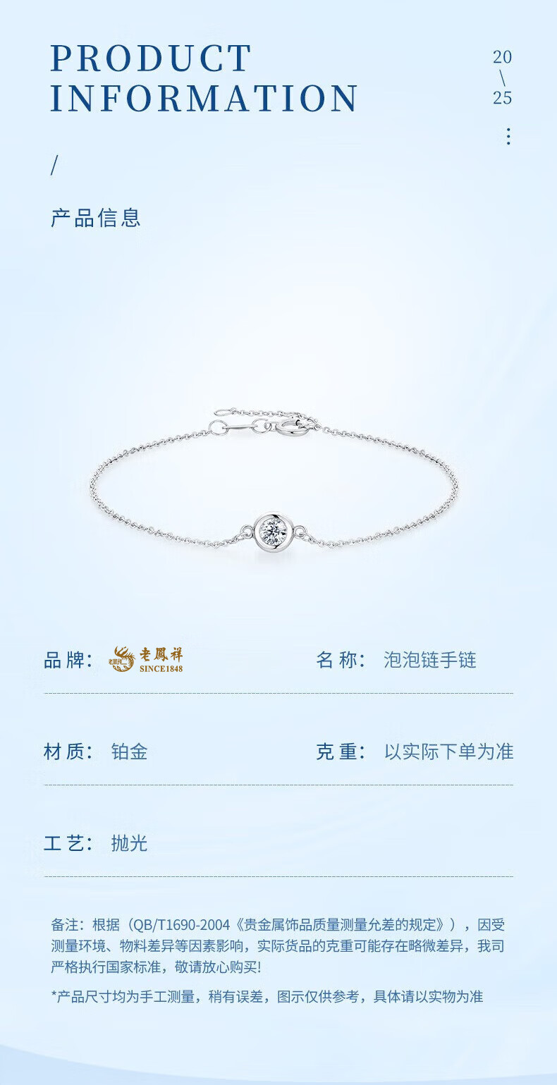Lao Fengxiang PT950 Platinum Bubble Bracelet Women's New Platinum Bracelet Teacher's Birthday Gift Mid-Autumn Festival Gift for Girlfriend Platinum Bubble Bracelet About 1.3g Brand Gift Box