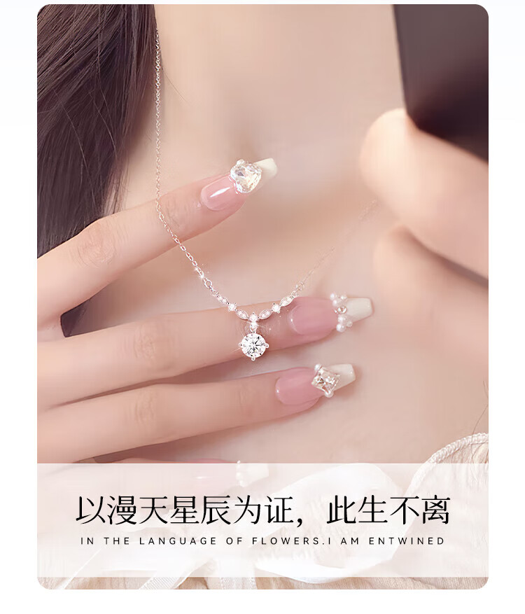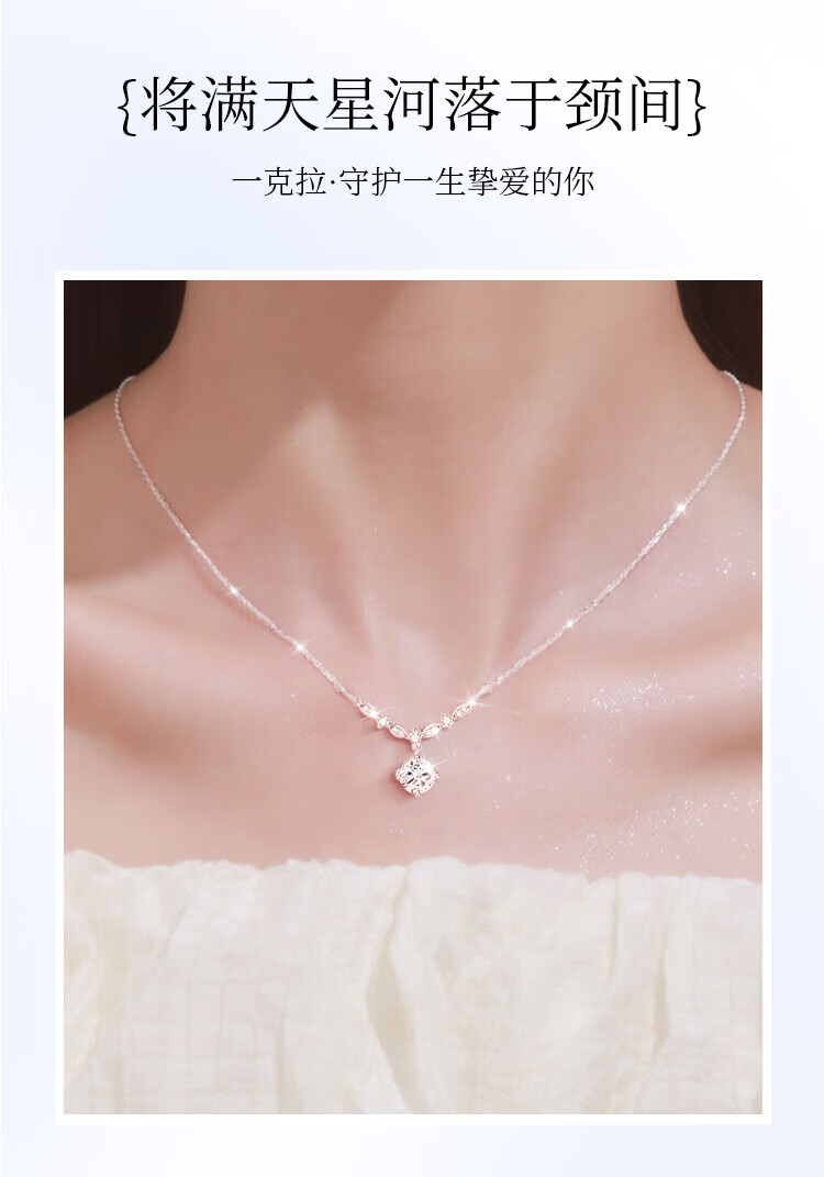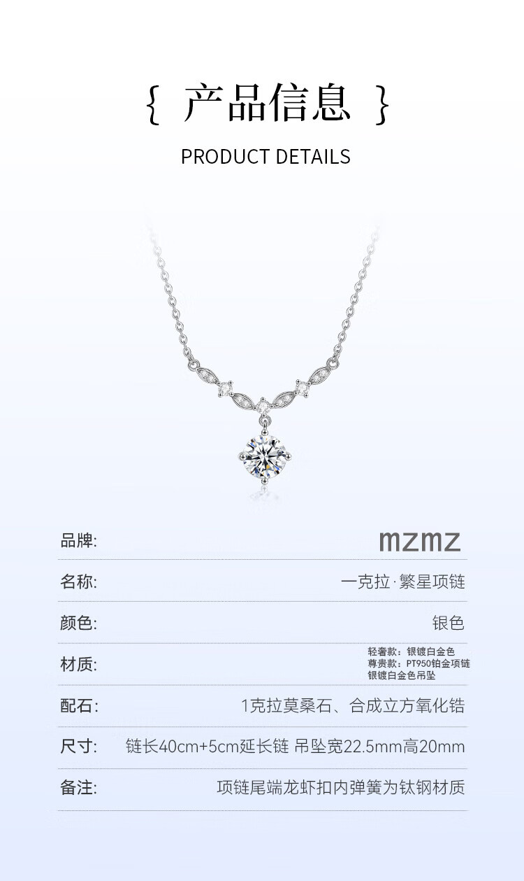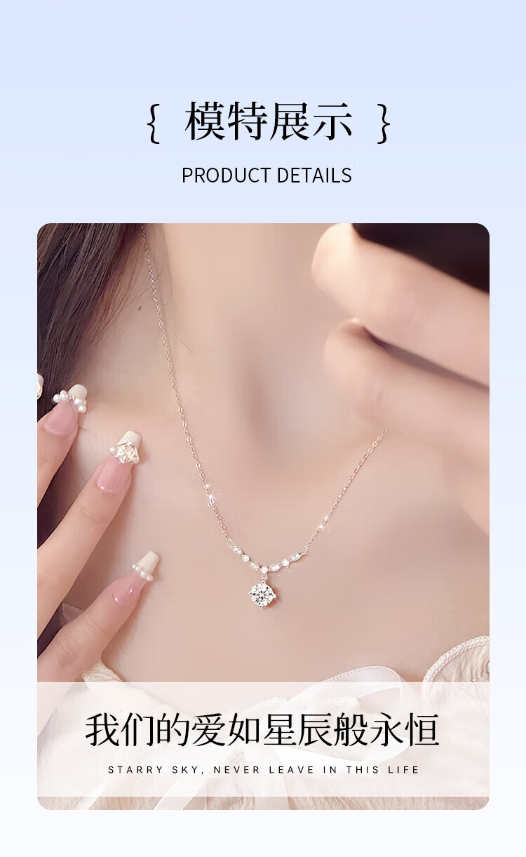 MZMZ Platinum Necklace Women's Platinum PT950 Jewelry Pendant Valentine's Day Birthday Gift for Girlfriend and Wife Starry Eternal Necklace - Light Luxury Style (Free Engraving)
