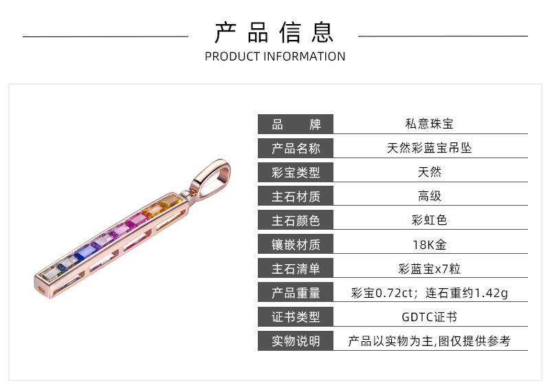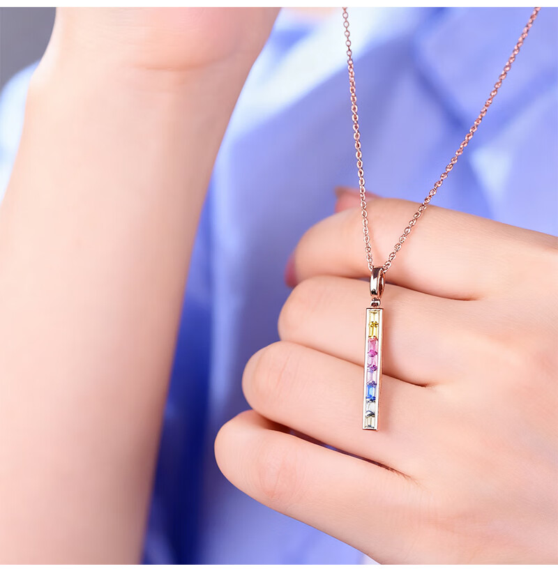 Private Jewelry Natural Color Sapphire Jewelry Pendant 18K Gold Diamond Necklace Fashionable Rainbow Customized 0.47 Carat Natural Color Sapphire Pendant Chain not included (chain available separately)