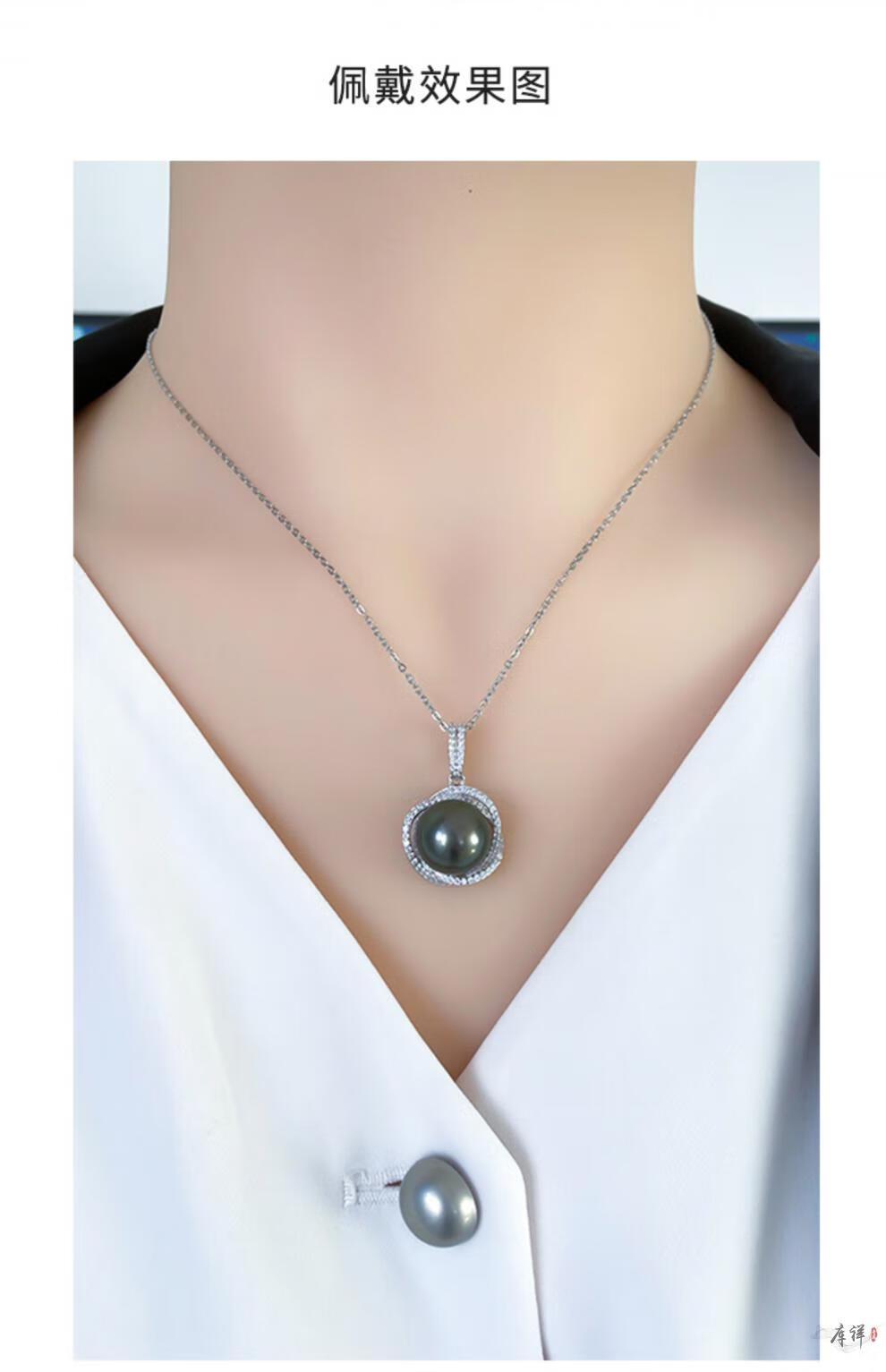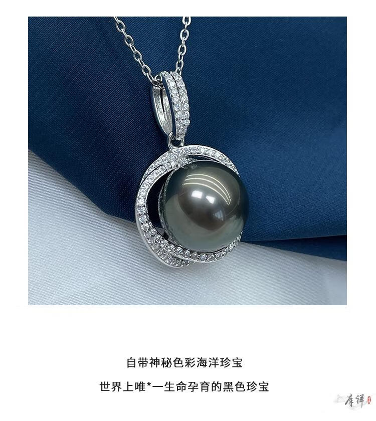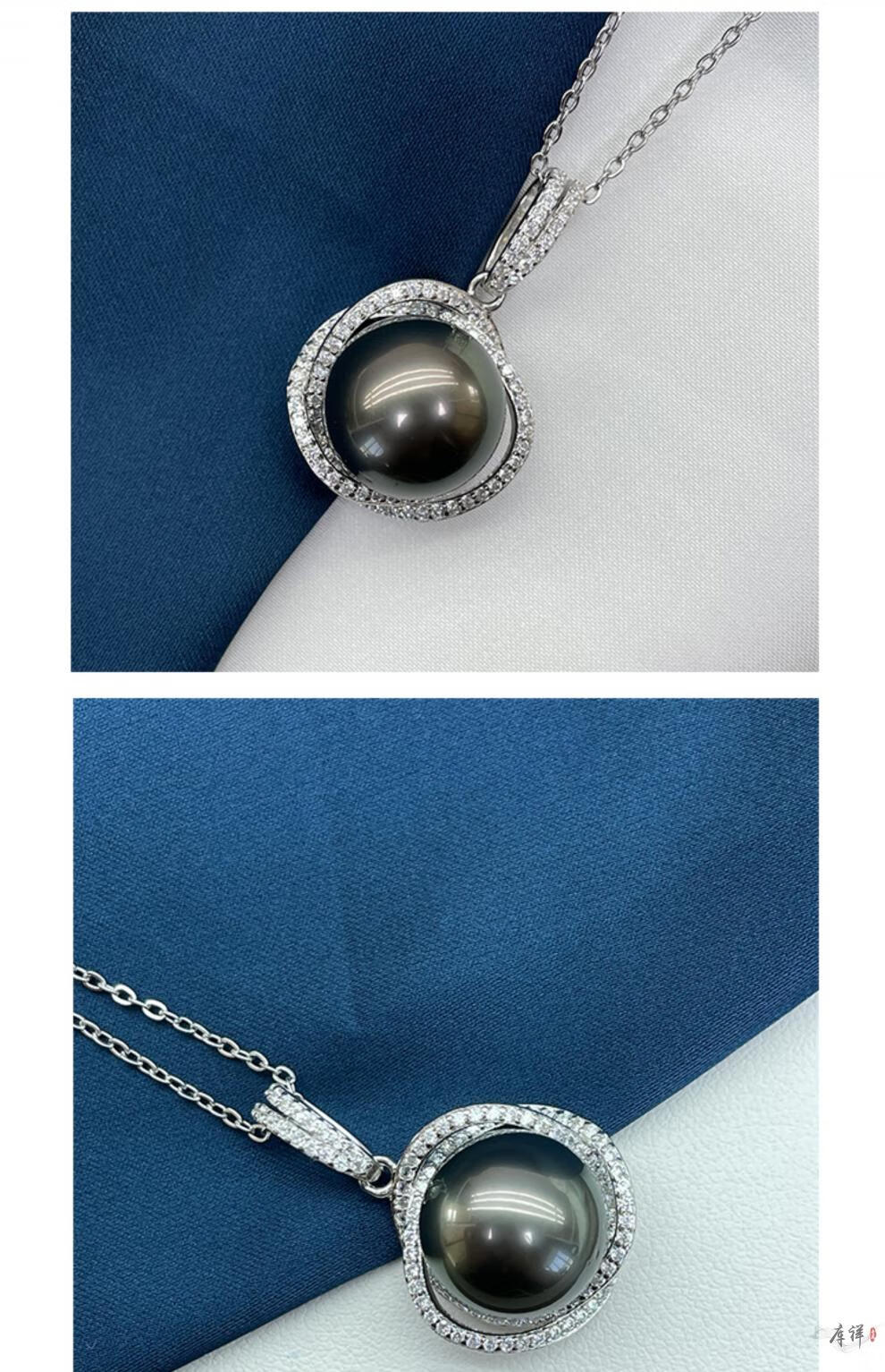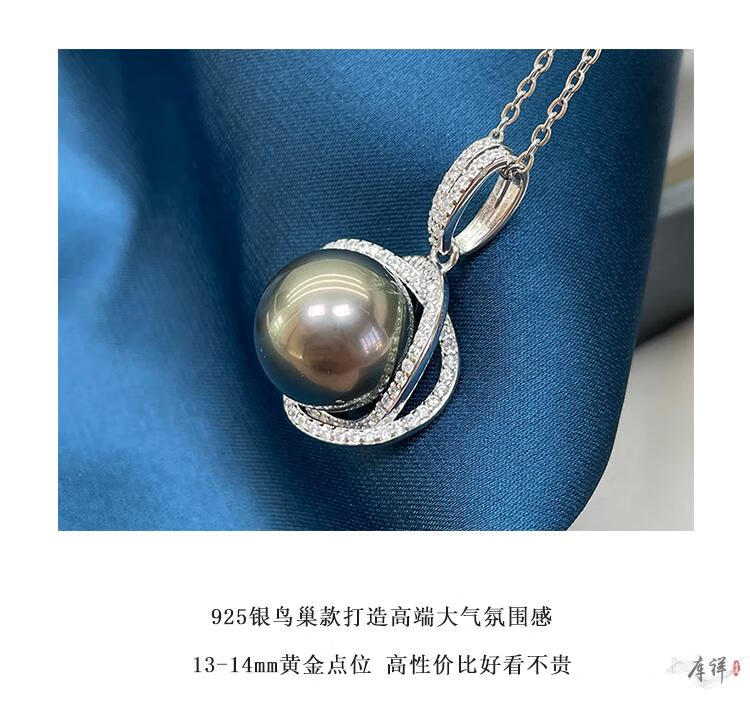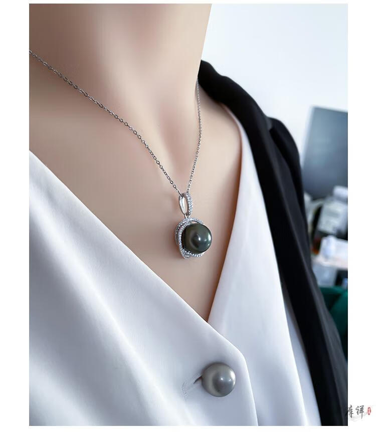 DR GRAFFCARNY13-14mm Bird's Nest style large Tahitian black pearl pendant 925 silver freshwater single necklace pendant for mother -14mm