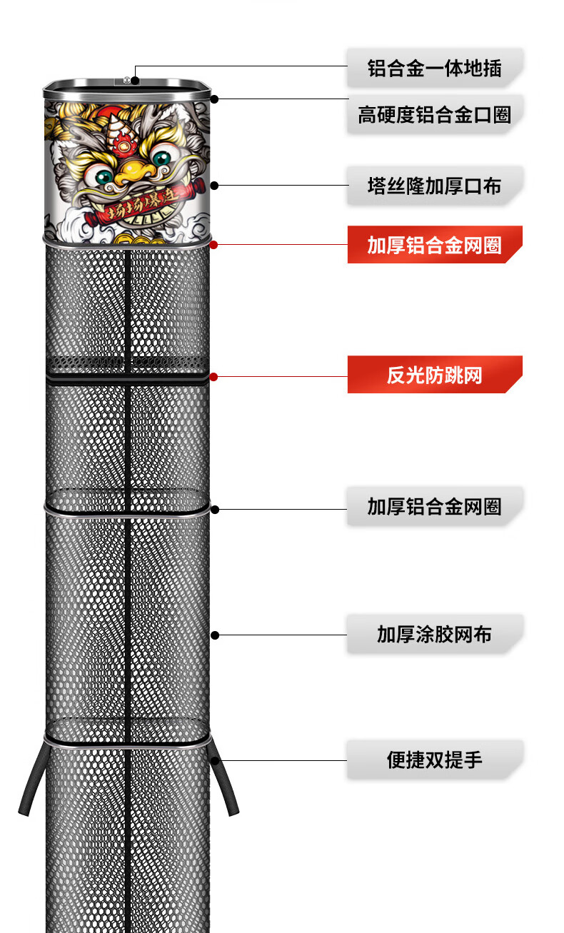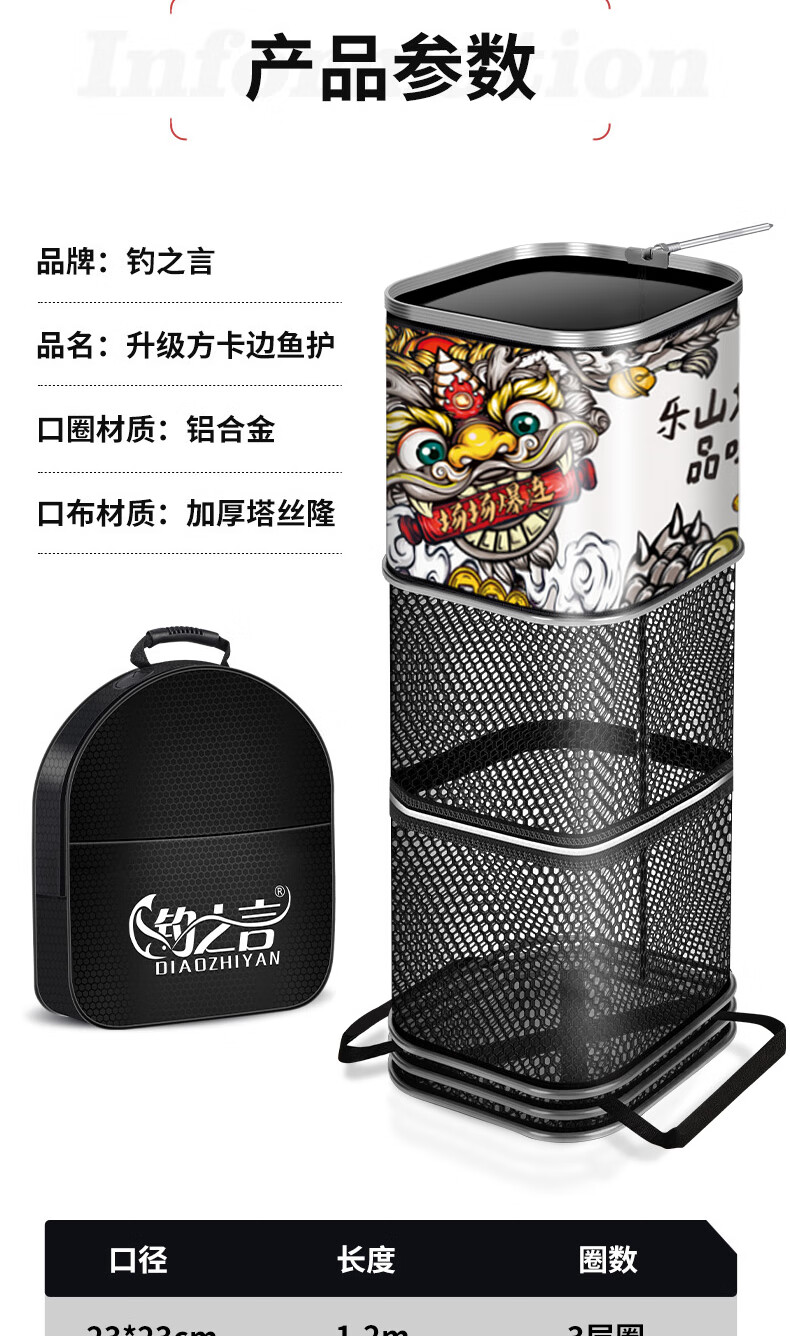 AUBELO Square Fish Protector Thickened Fish Net Bag Rubberized Anti-hanging Square Small Fish Protector Quick Drying Fish Bag Fishing Black Pit Wild Fishing 23cm 1.0m (without bag)