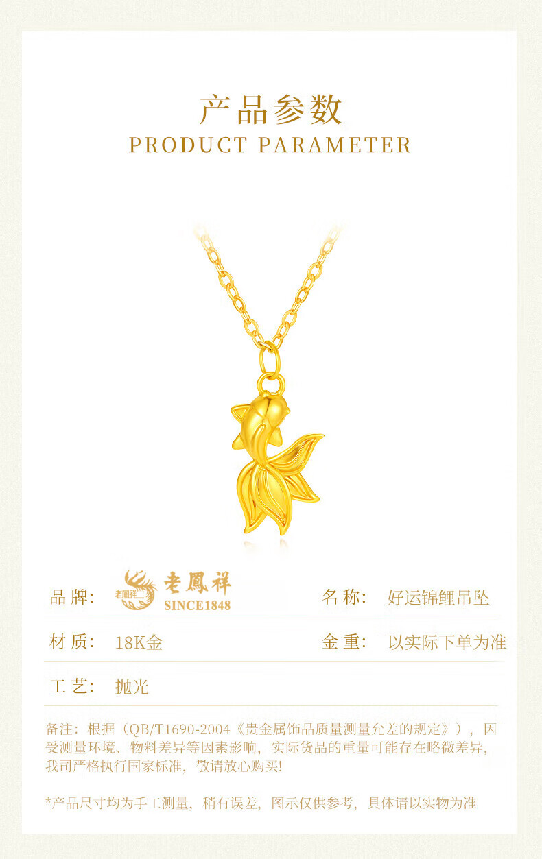 Lao Fengxiang 18K gold good luck koi pendant for women 2025 new necklace birthday gift for girlfriend and wife 18K gold koi pendant - about 0.2g brand gift box with free sterling silver chain