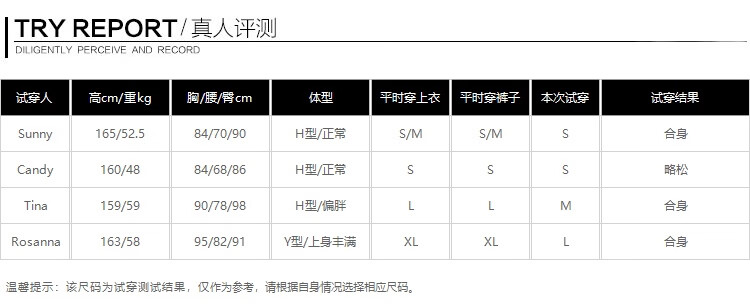 China (cm) 160-165/84-86 165-170 / 88-90 167-172 / 92-96 168-173 / 98-102 170-176 / 106-110