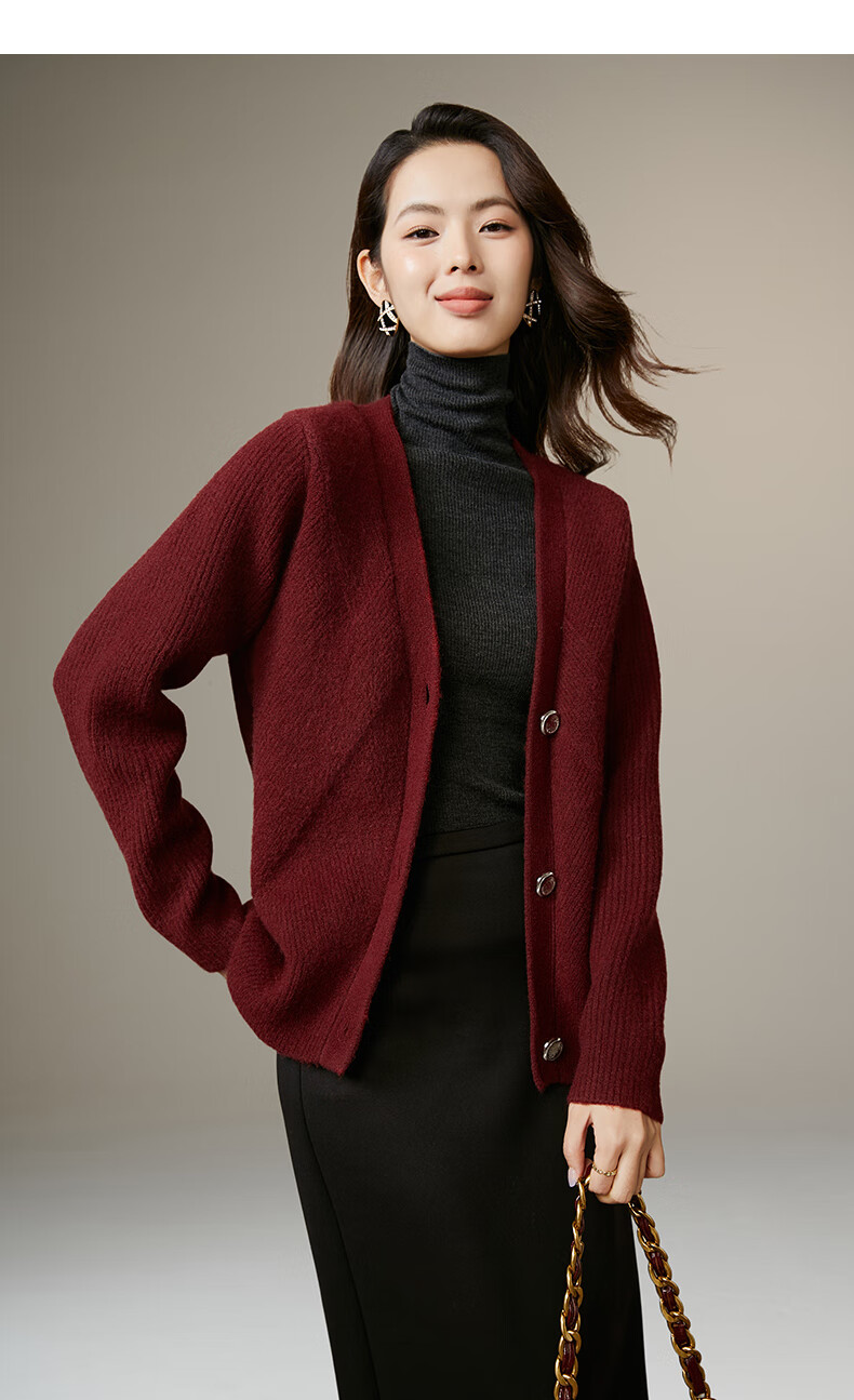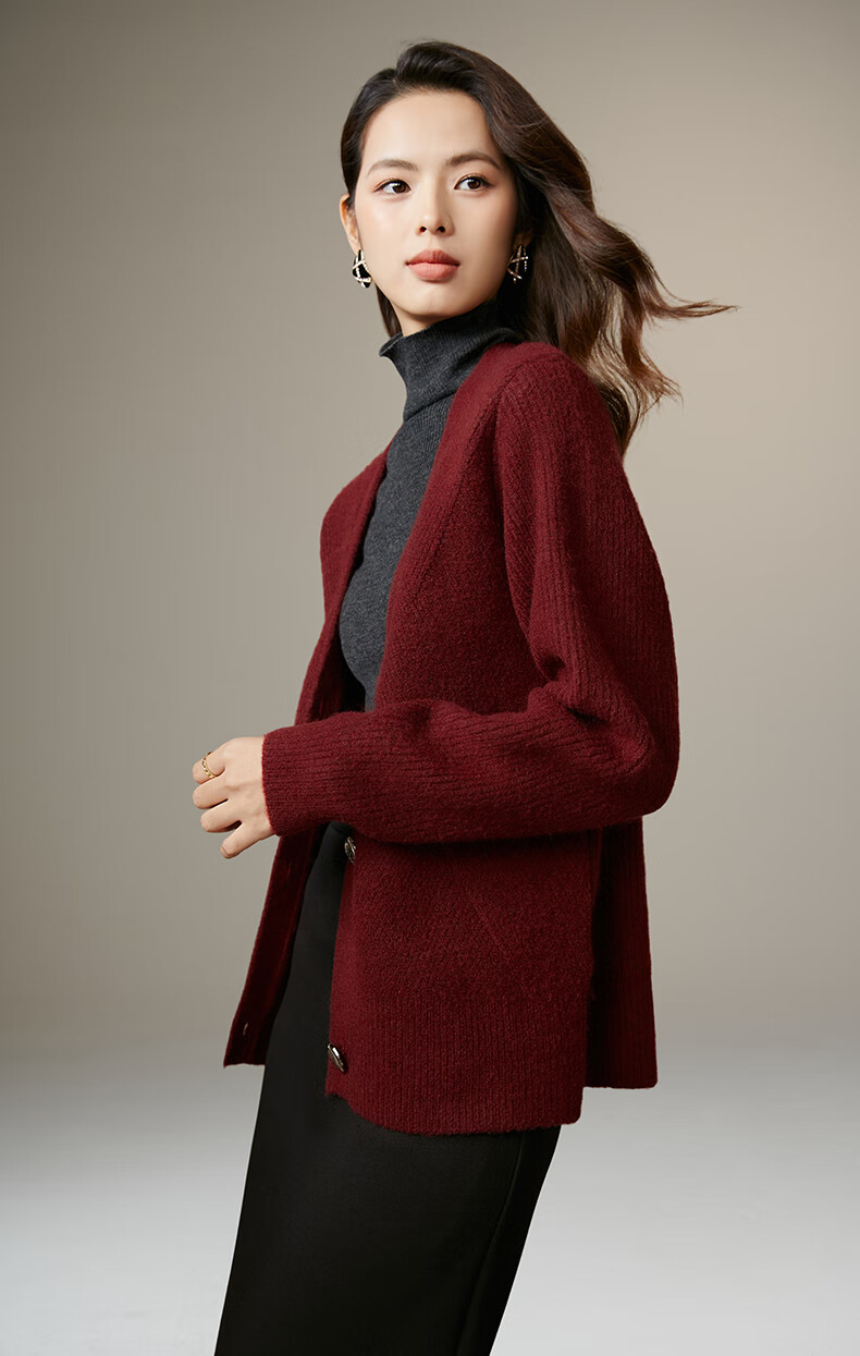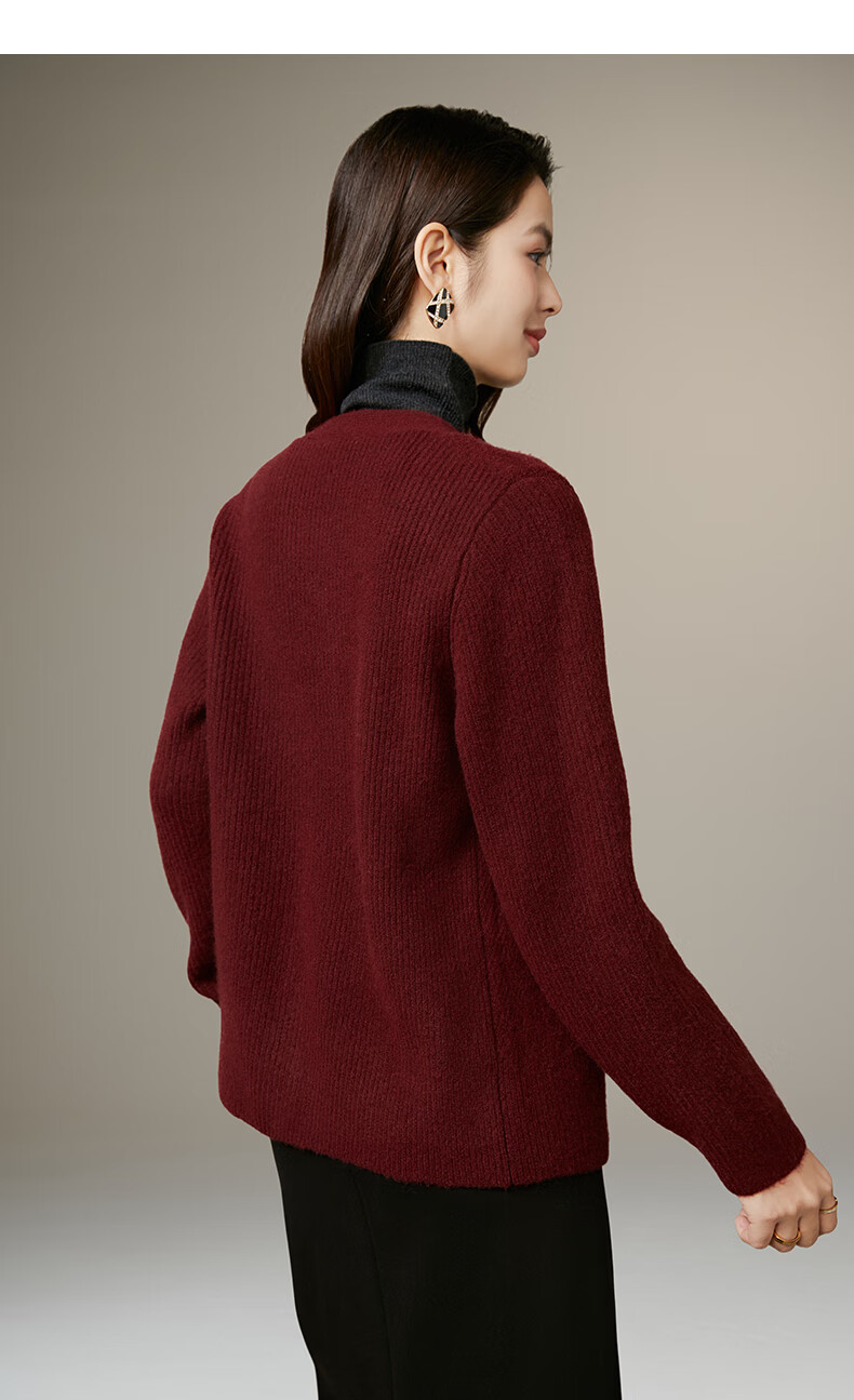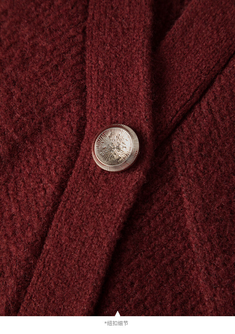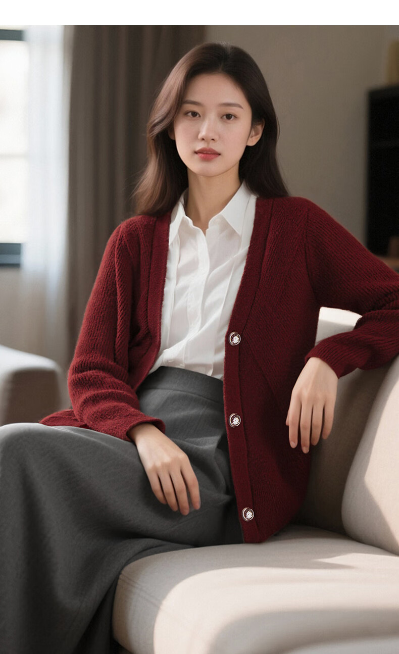 Late White New Product 2025 Winter Fashion Casual Chinese Red Sweater High Elastic Wool Knitted Cardigan Jacket for Women Burgundy M