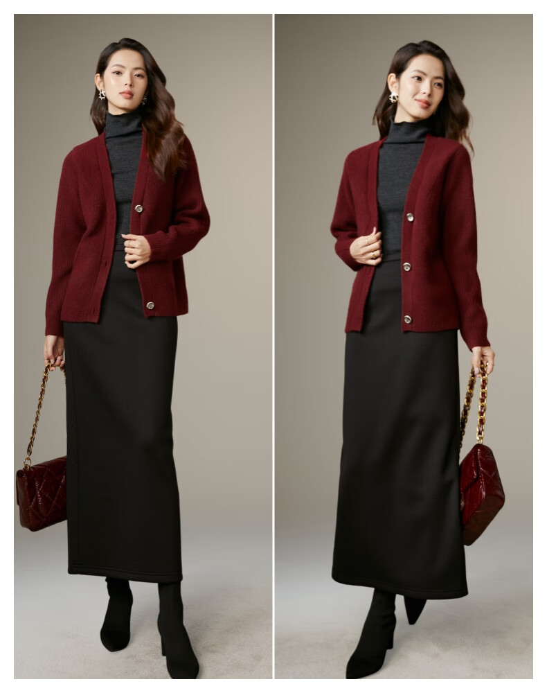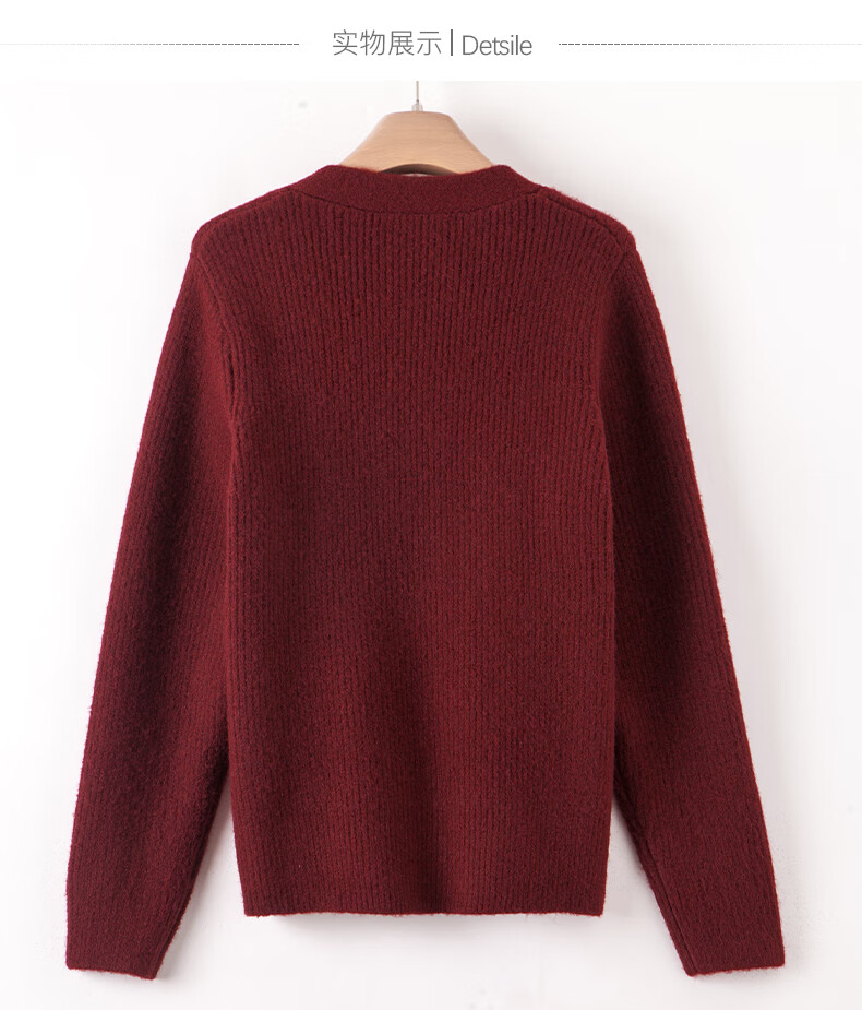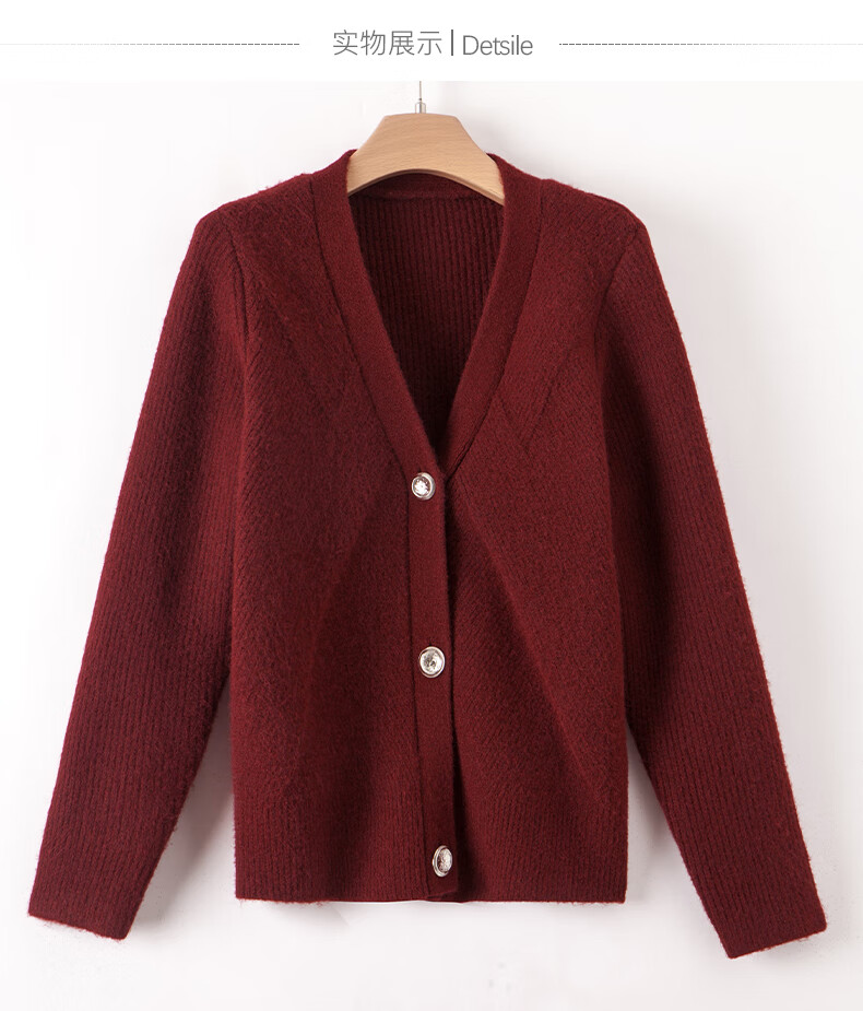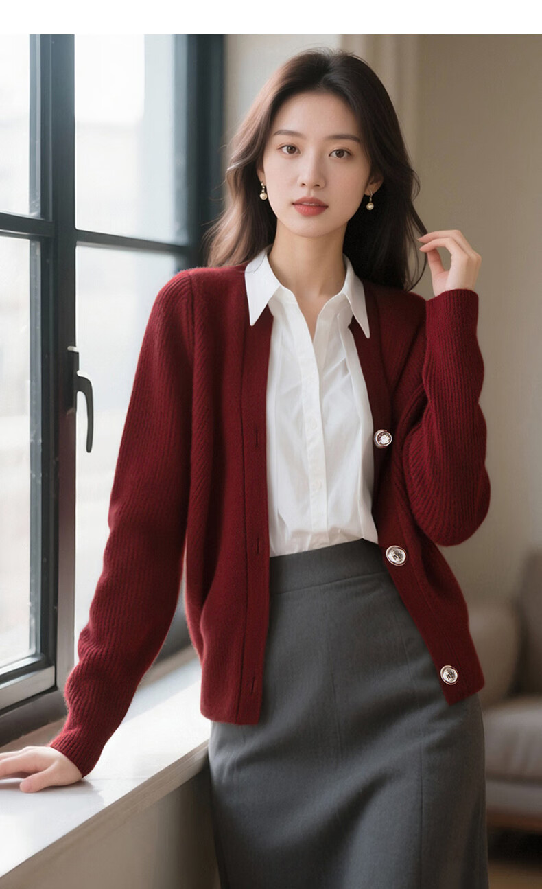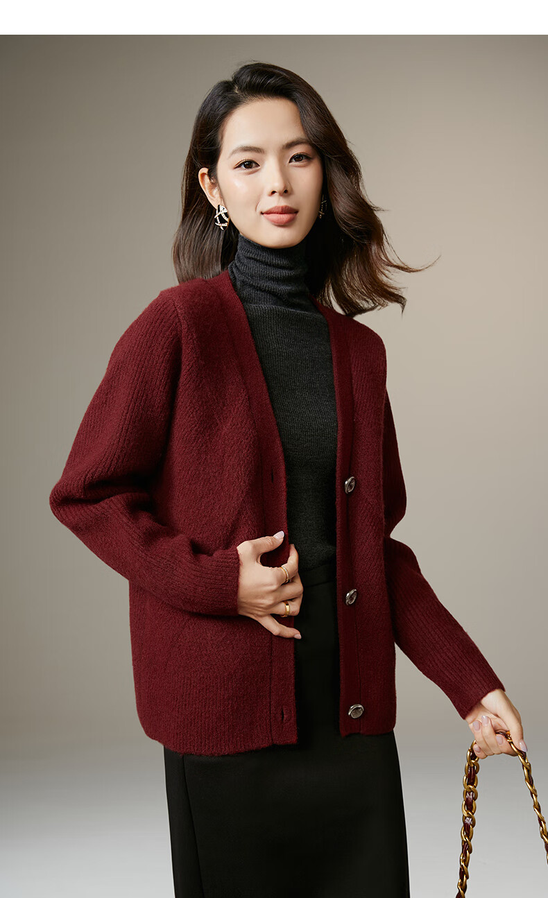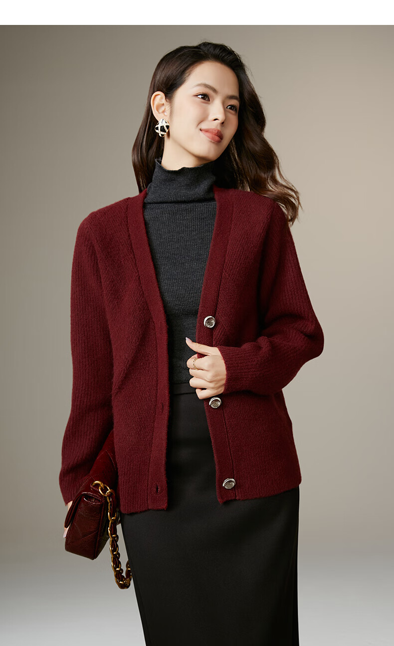 Late White New Product 2025 Winter Fashion Casual Chinese Red Sweater High Elastic Wool Knitted Cardigan Jacket for Women Burgundy M