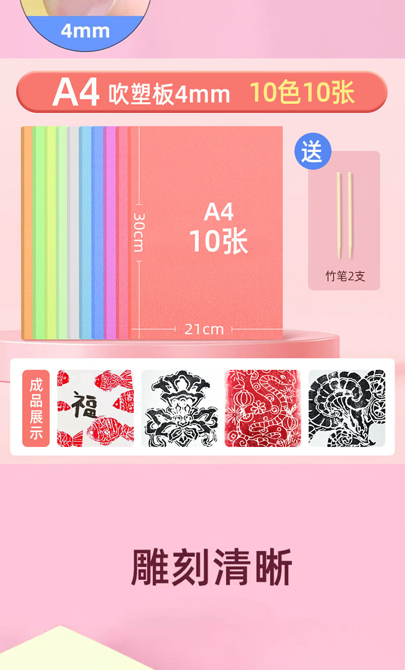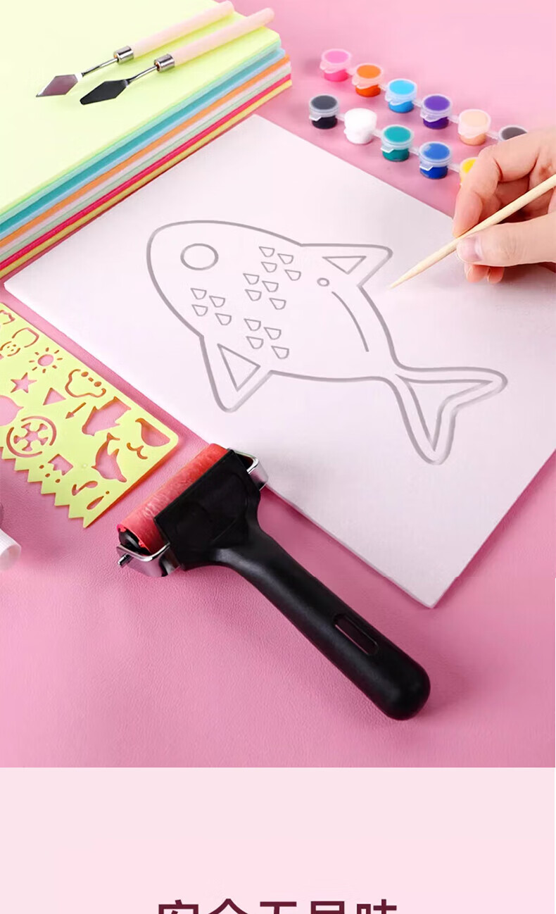 Printmaking tool set A4 color thickened blow molding paper entry-level wooden mushroom roller Malian three-piece set ink children's junior high school and primary school students' art printmaking special rubbing material special water-based ink for printmaking red 60ml 1 bottle